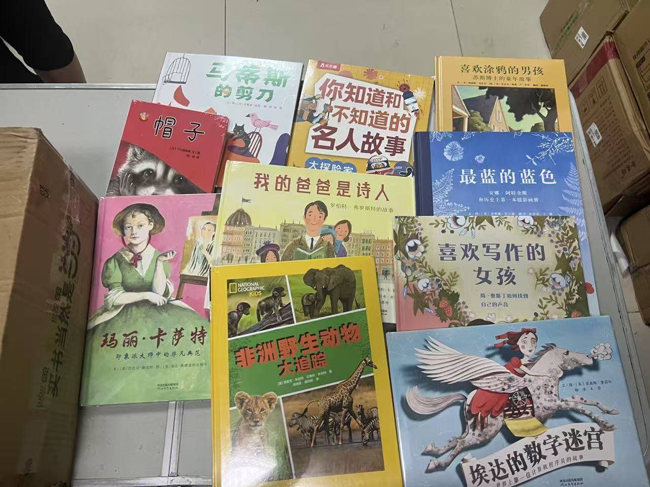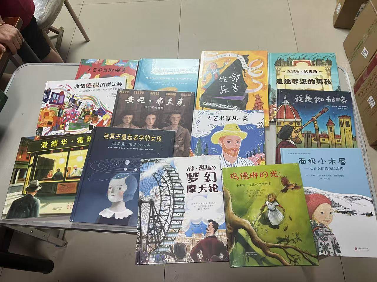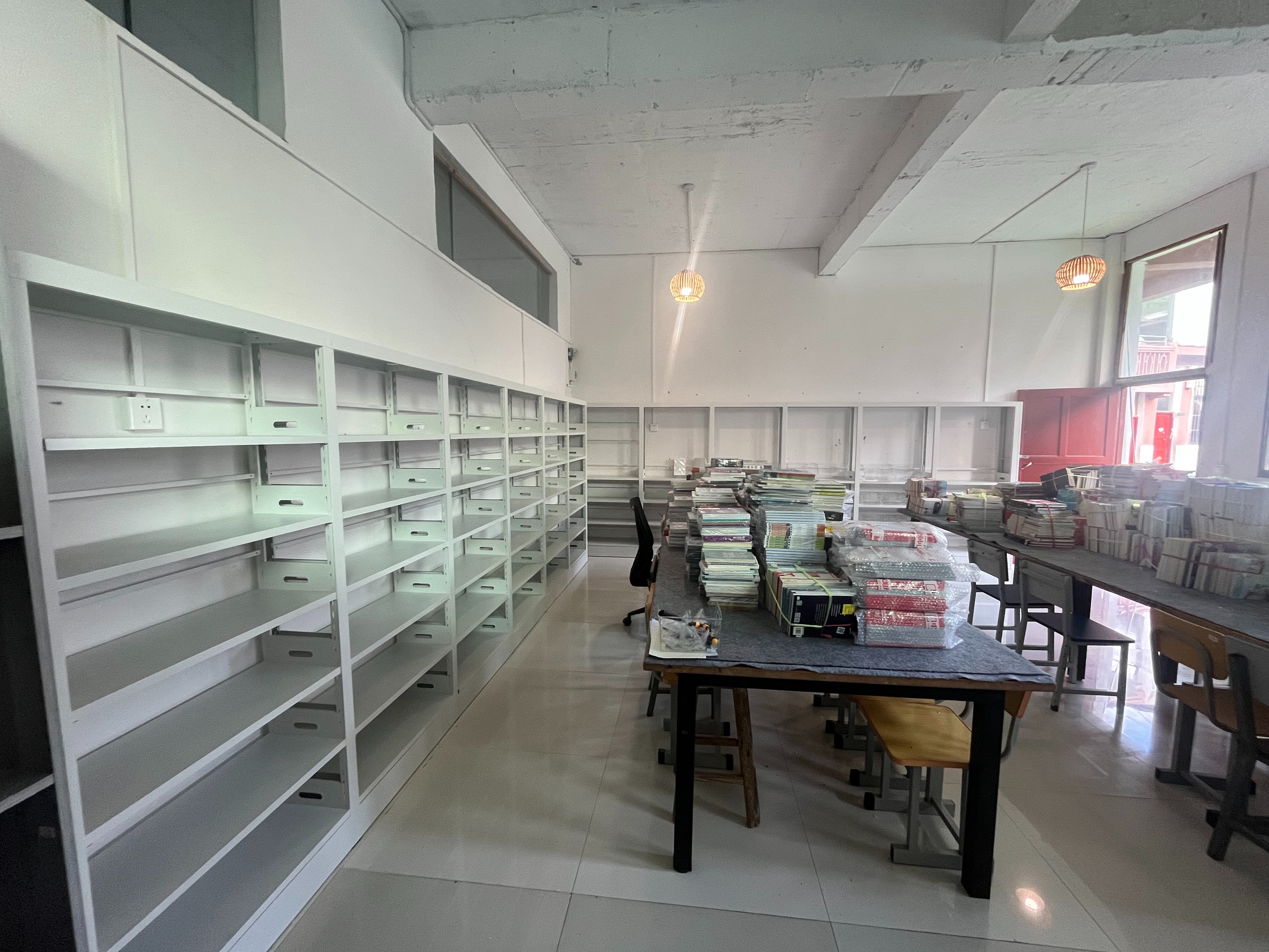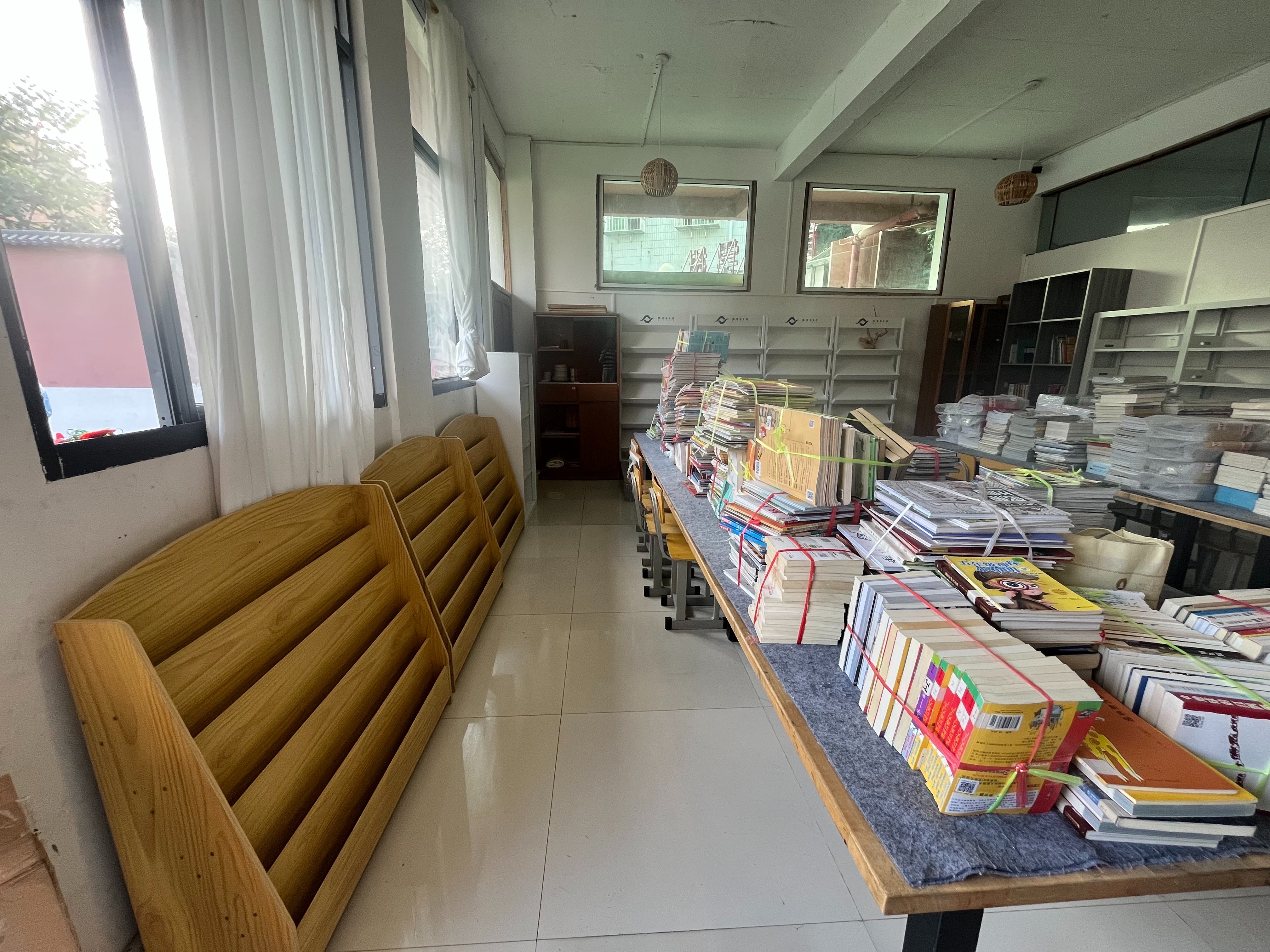 学校已经把书架安装好,新书和上海2馆寄来的复本图书全都拆箱,分别码在了桌上。