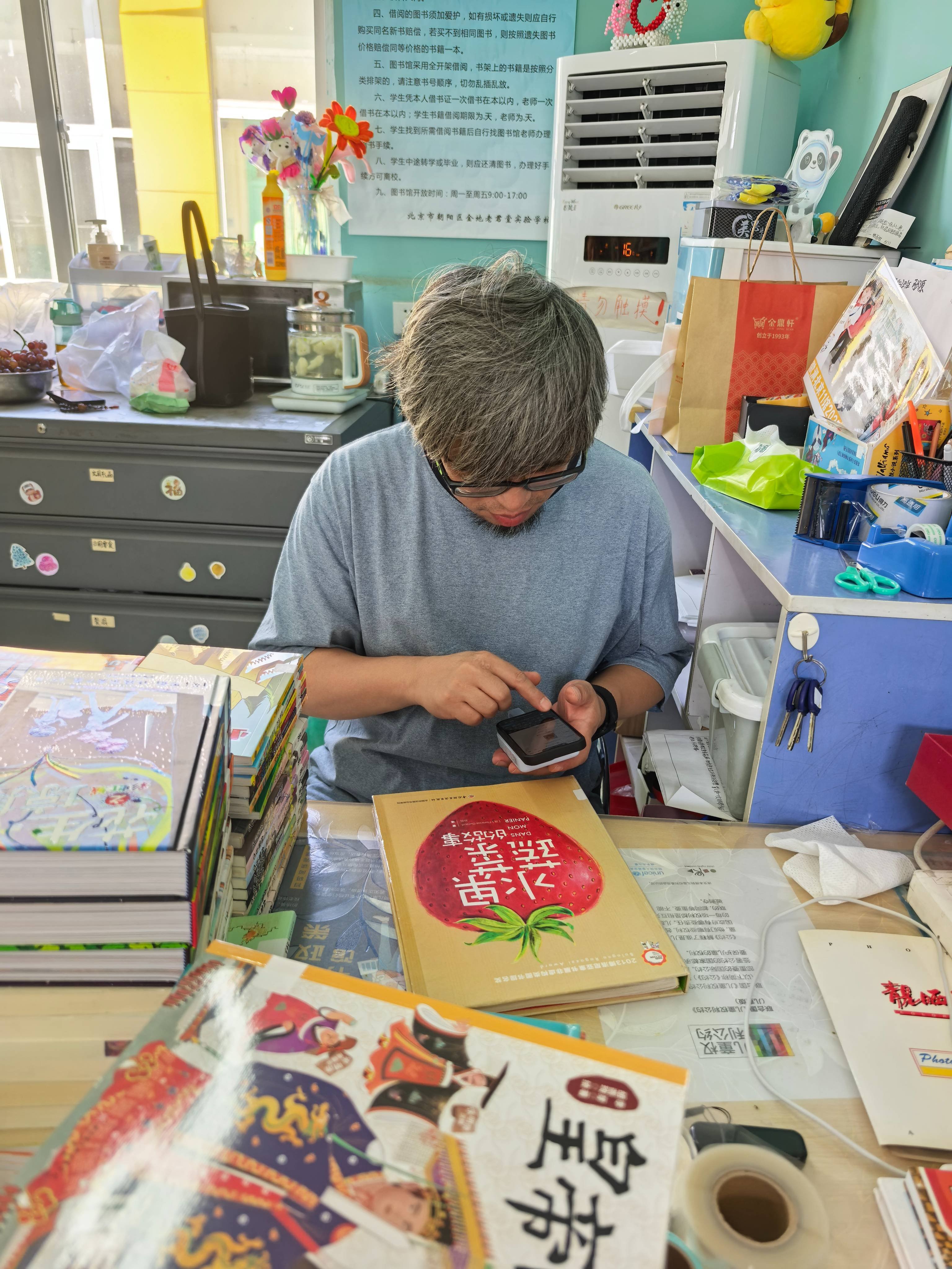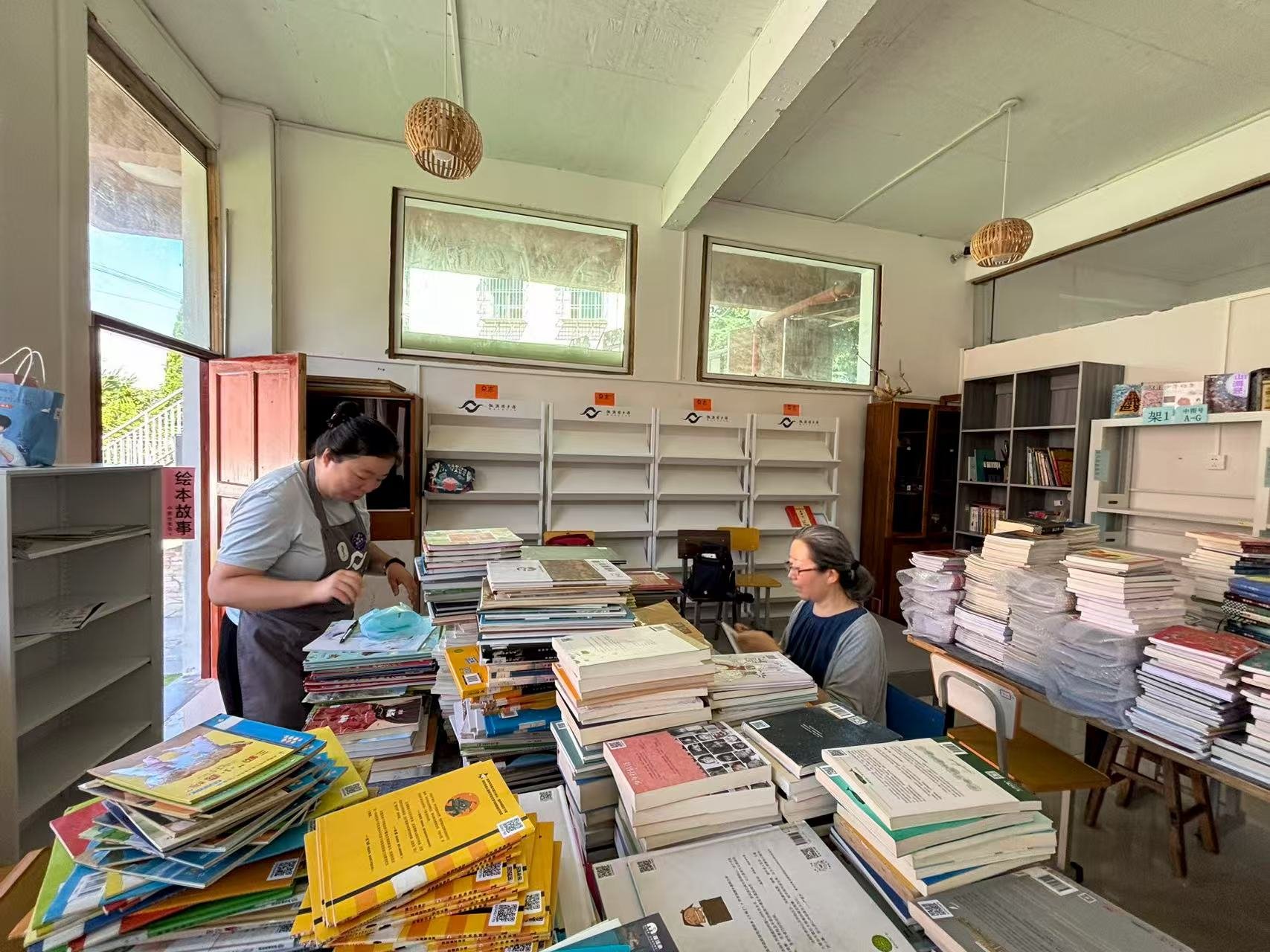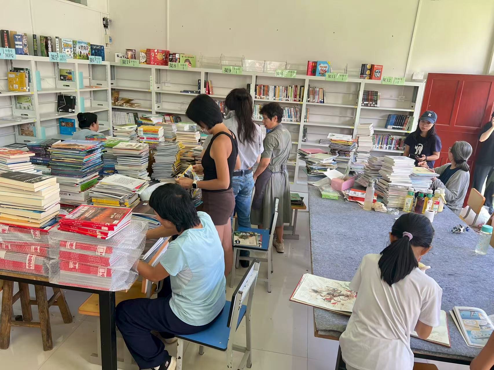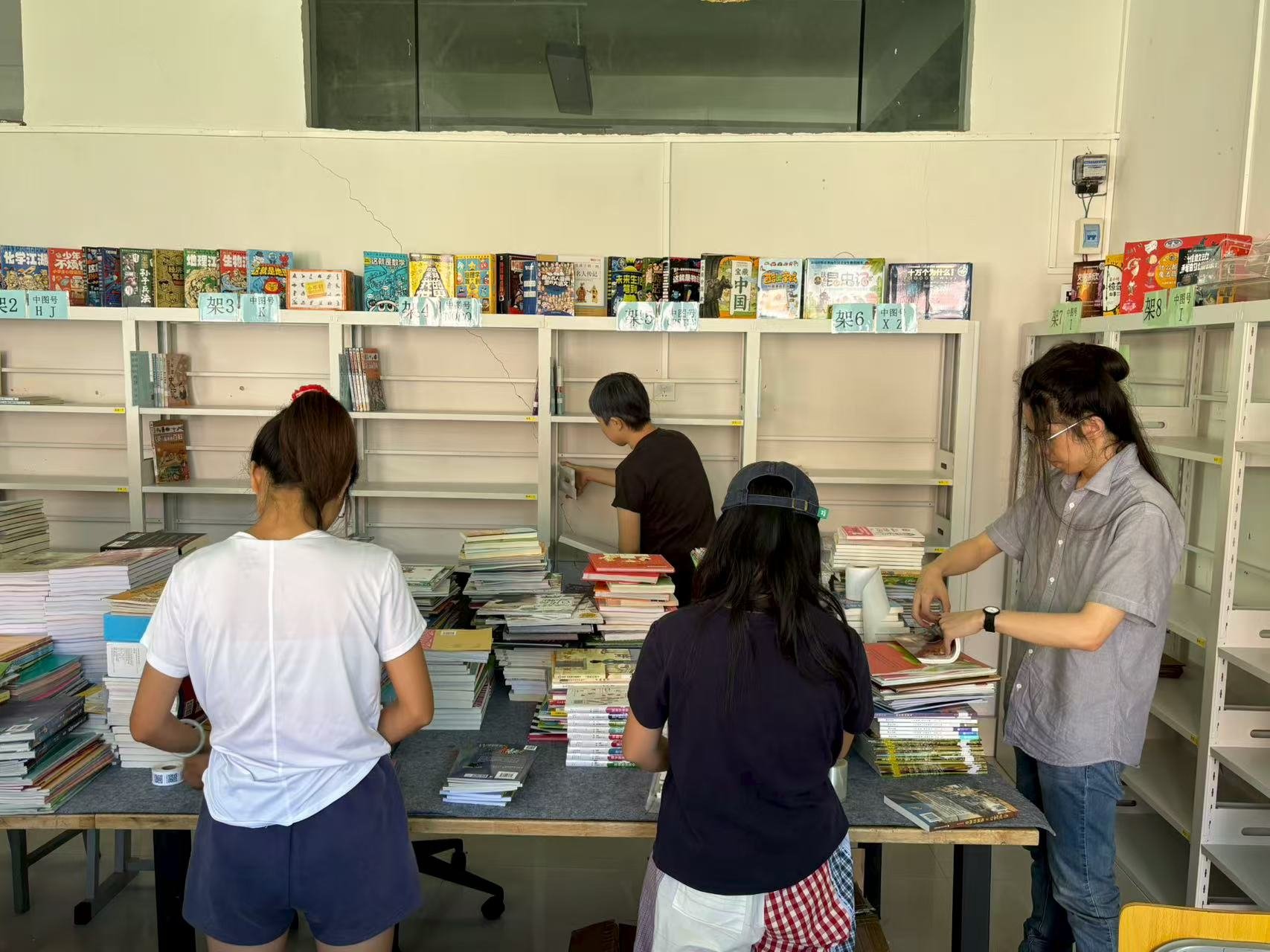 学校两位老师一起加入。完成的工作:新书拍照、撕膜、撕鱼贴,书架贴架签,上海的书做馆际调配、顺手修改完善图书信息。
