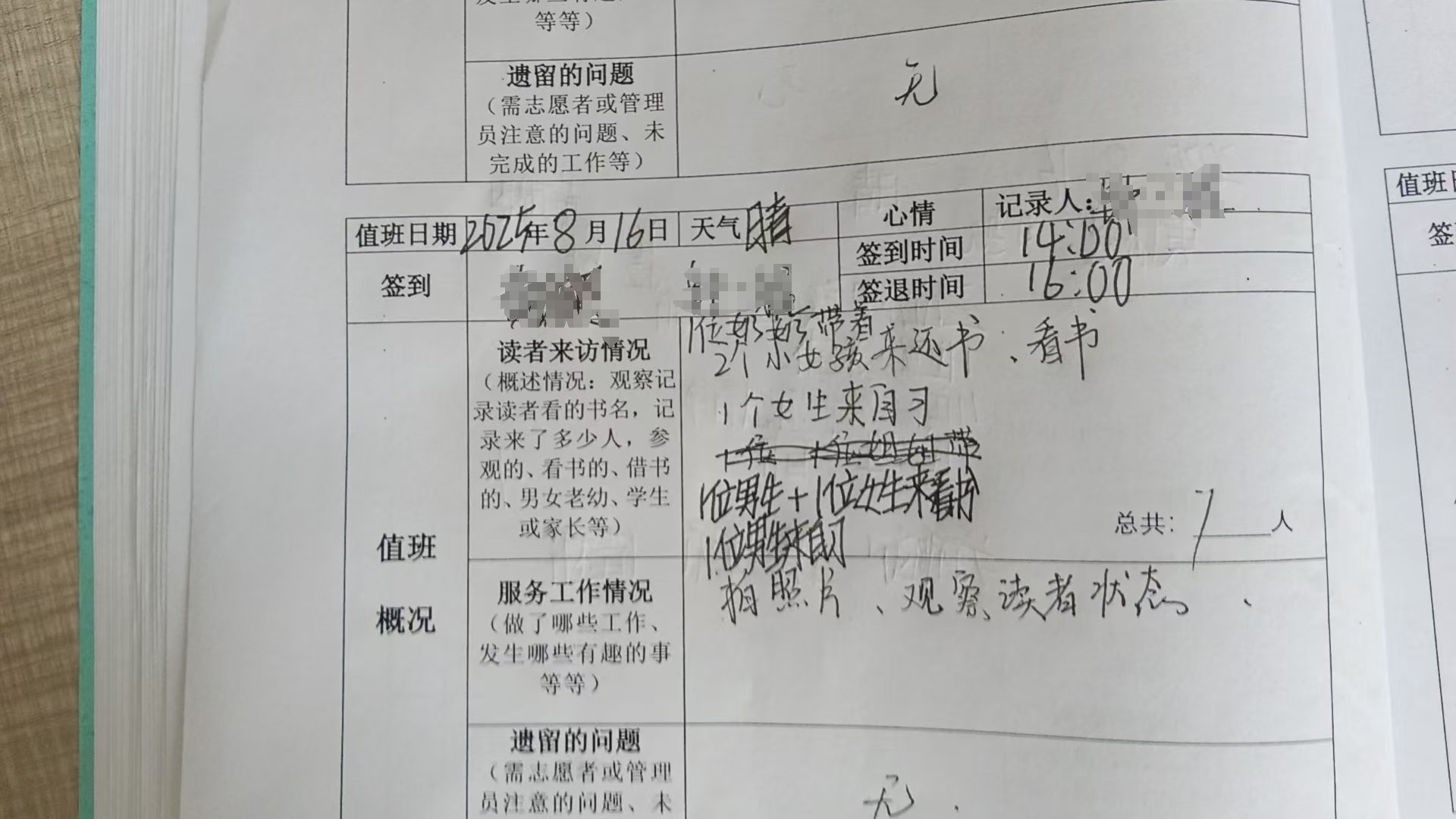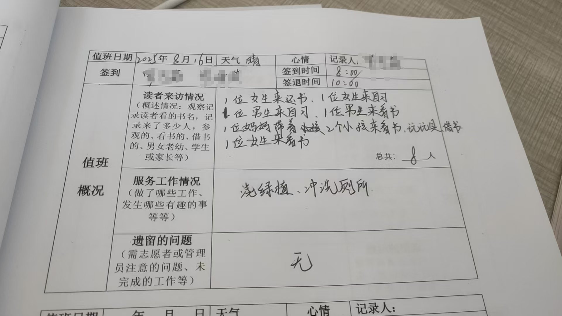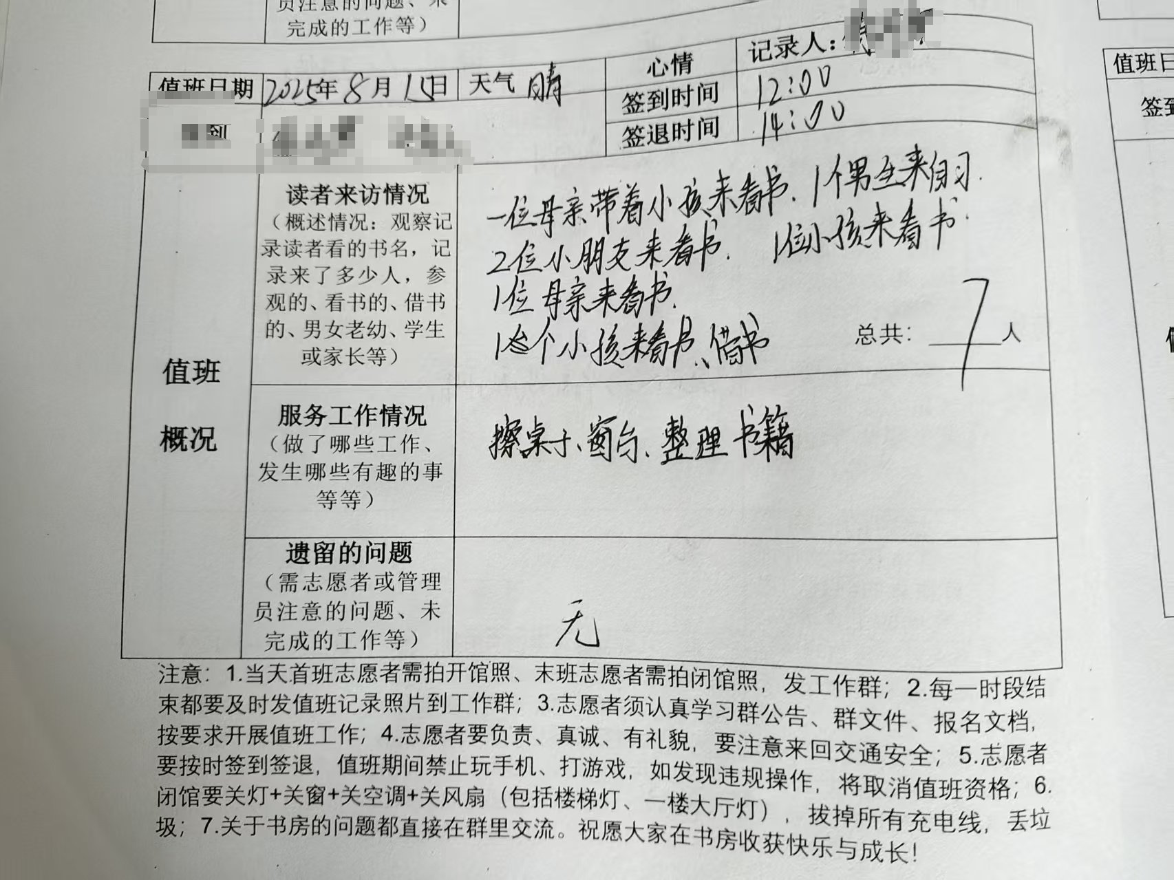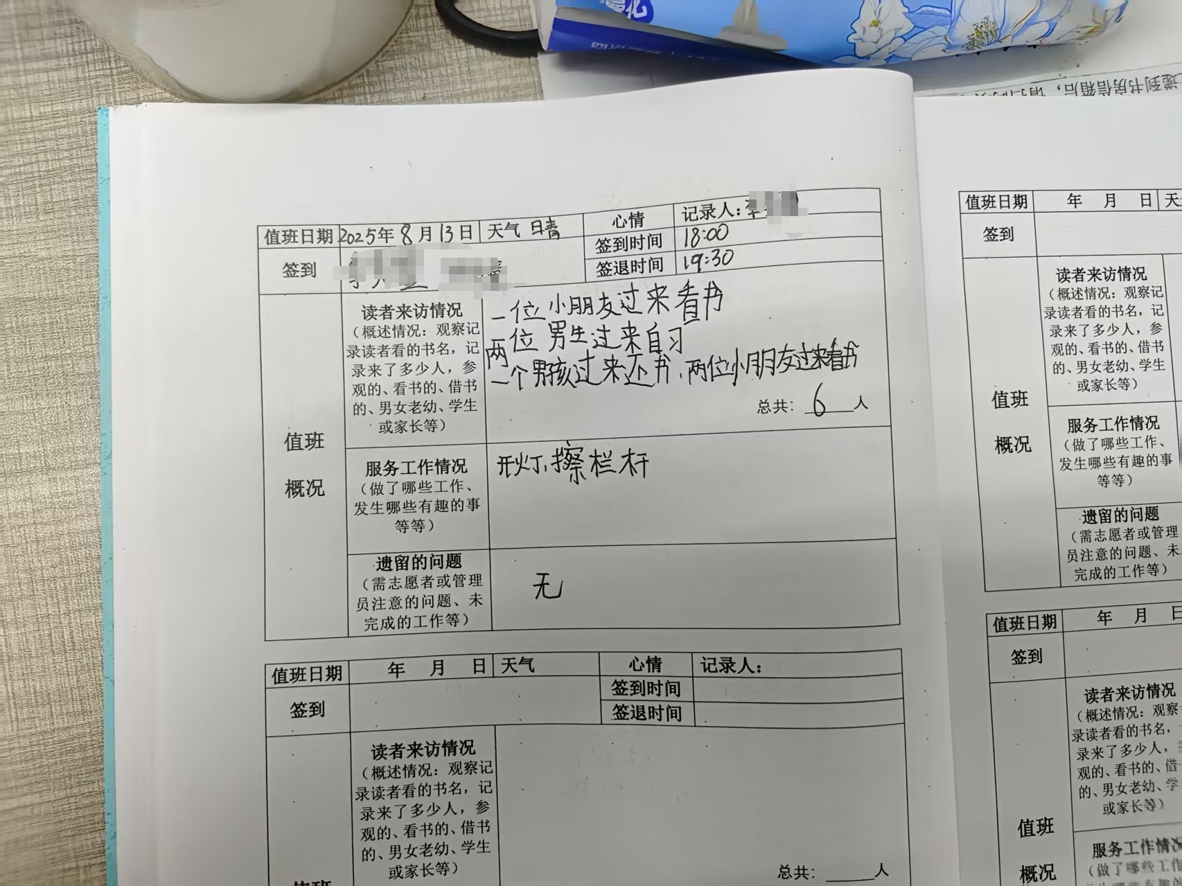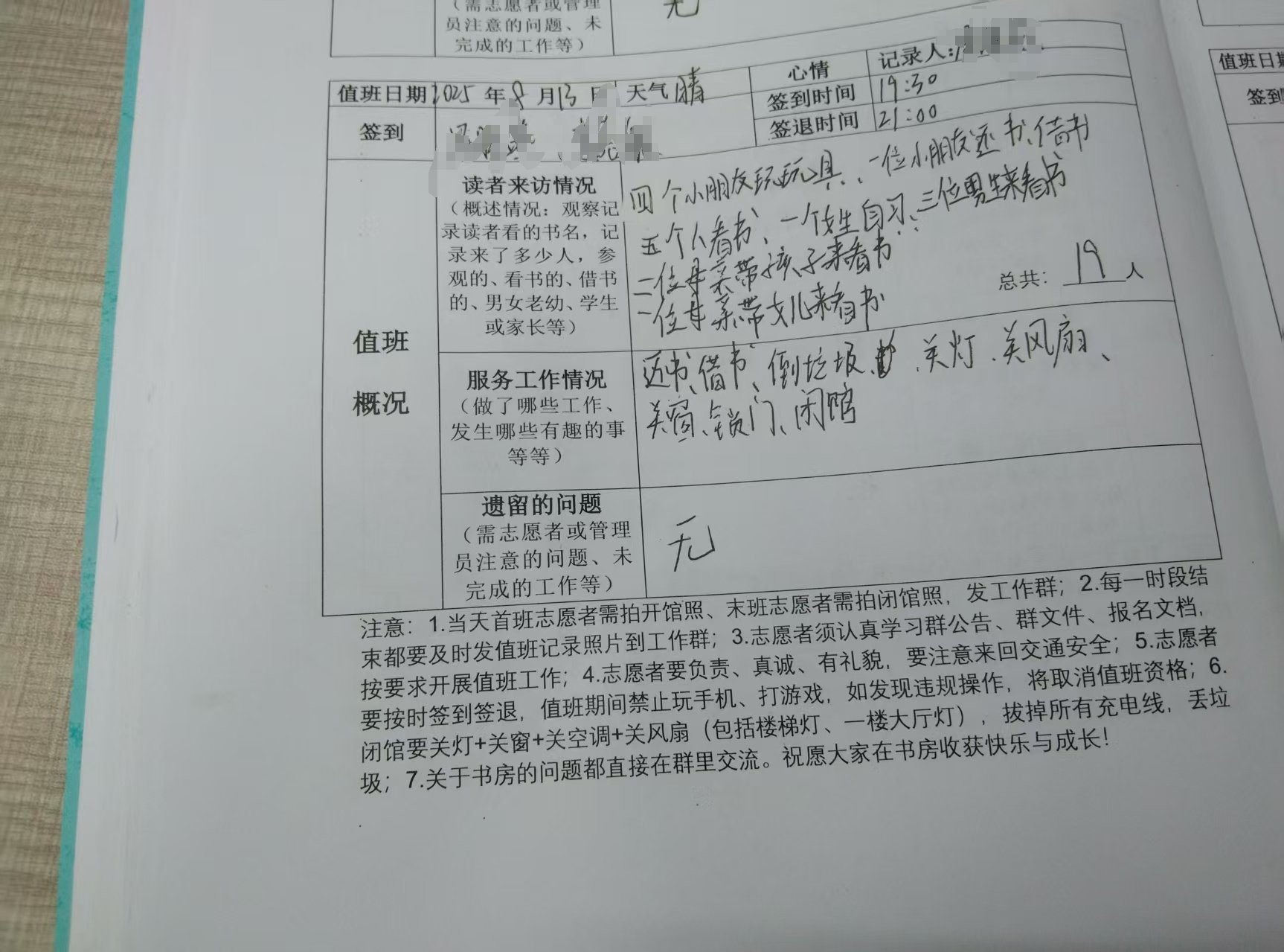 今天陆续来了不少志愿者,有学校老师、自然教育班的学生家长和贵州志愿者。老师和家长们连连赞叹书好、项目好。趁机推送公众号,感觉有希望吸引到馆东和值班志愿者。