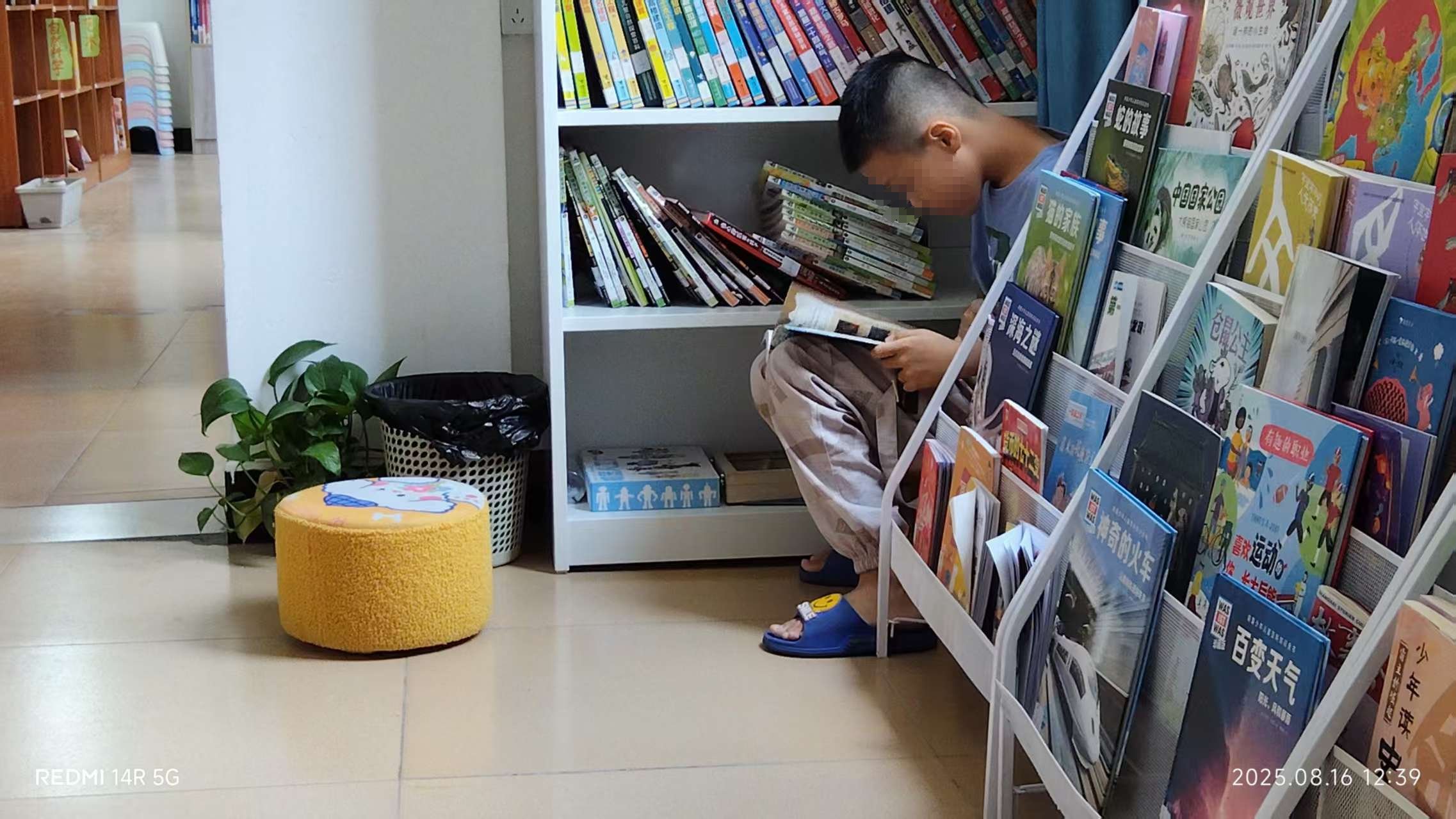 读者也有一岁三个月的,幼儿园,小学生,初中生,高中生,大学生,更有爸爸妈妈们……图书馆给了大家一个不分年龄的温暖的空间。继续努力!