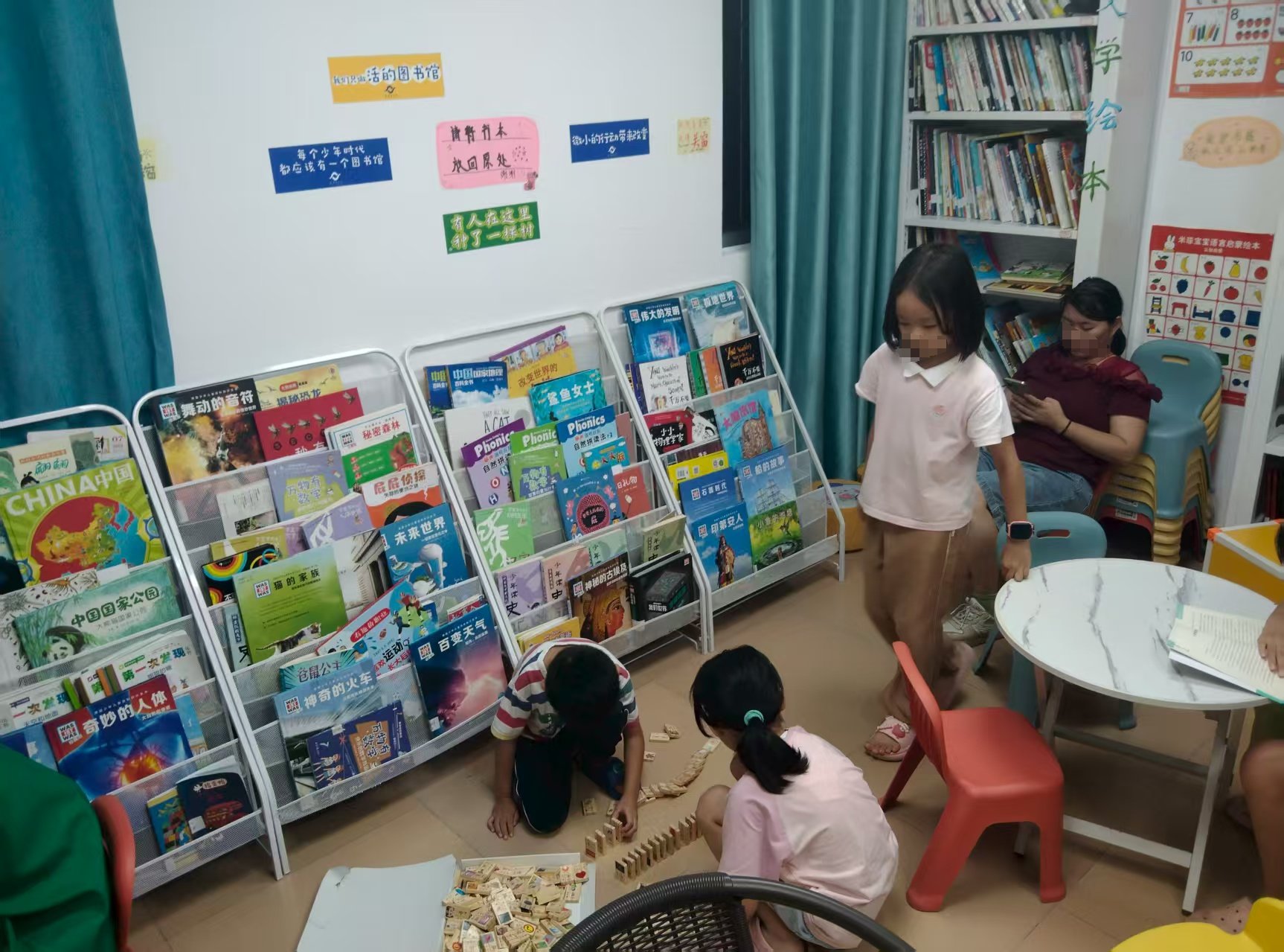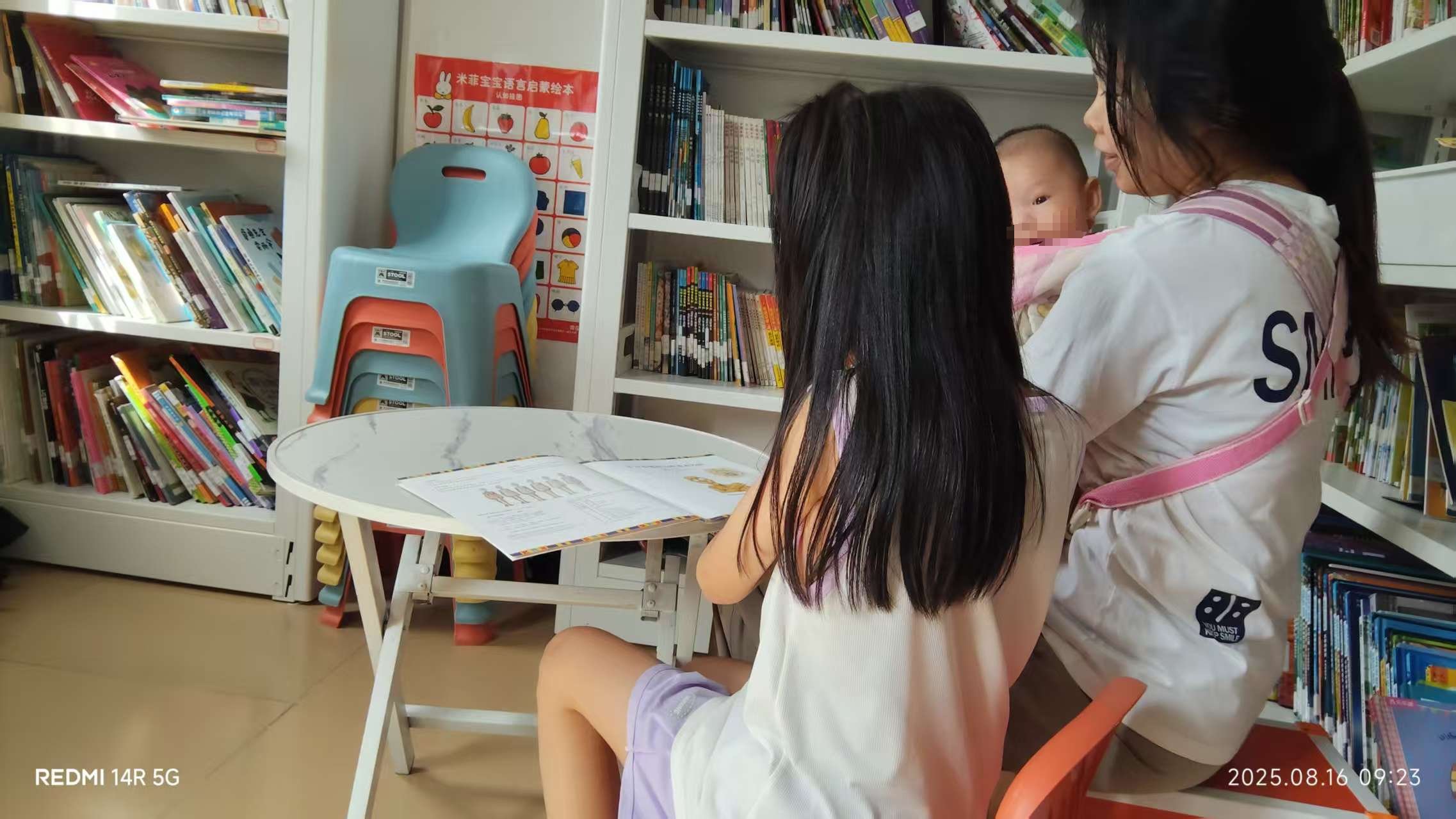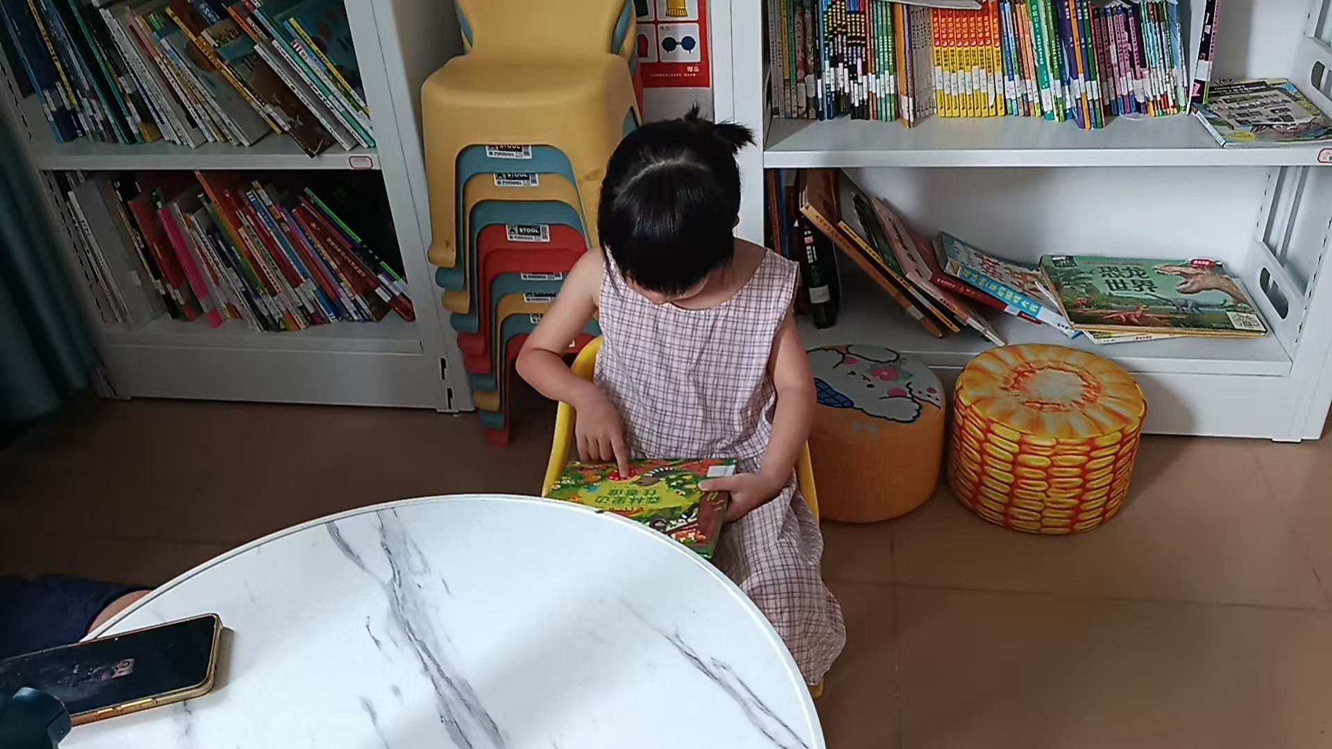 取了快递,到馆,路上依旧和mm家打了招呼,姐姐gg“尾随”而至,直到开铁门才跳出来,其实脚步声早已经识别;说mm不来。但到馆开门的时候,mm已经骑着自行车在后面了,下午的两个半小时,人不多,mm一家三个,刚从老家回来的lx,zx和姐姐xb,安静的玩耍或者看书,偶尔有借阅的,所以今天和mm的互动,从计时拼图、讲故事、给各种玩具,一一互动过了,后来才去痛快的玩啥。
