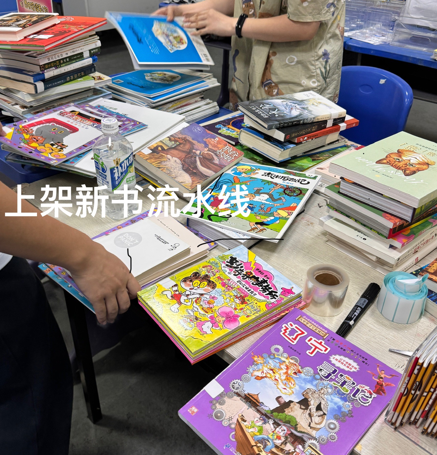 周六下午,很开心与微澜小伙伴一起做开馆前的准备工作,毅桦和丸子在,大家干活心里有底,图书盘点,整理书架,录入图书,我盘点了两个书架,韩老师在旁边观战,据他说,没有他在,我们就没电了,抹黑咋干活。每个志愿者一人一个书架有条不紊的扫码,人多力量大,11位志愿者齐动手,盘点工作顺利完成。接着咪咪给新书包边,我录入,张蕾贴标,裹上透明盔甲的新绘本,雄赳赳气昂昂的就像阅兵式里东风61,准备迎接新学期18馆小朋友的检阅……☺☺
