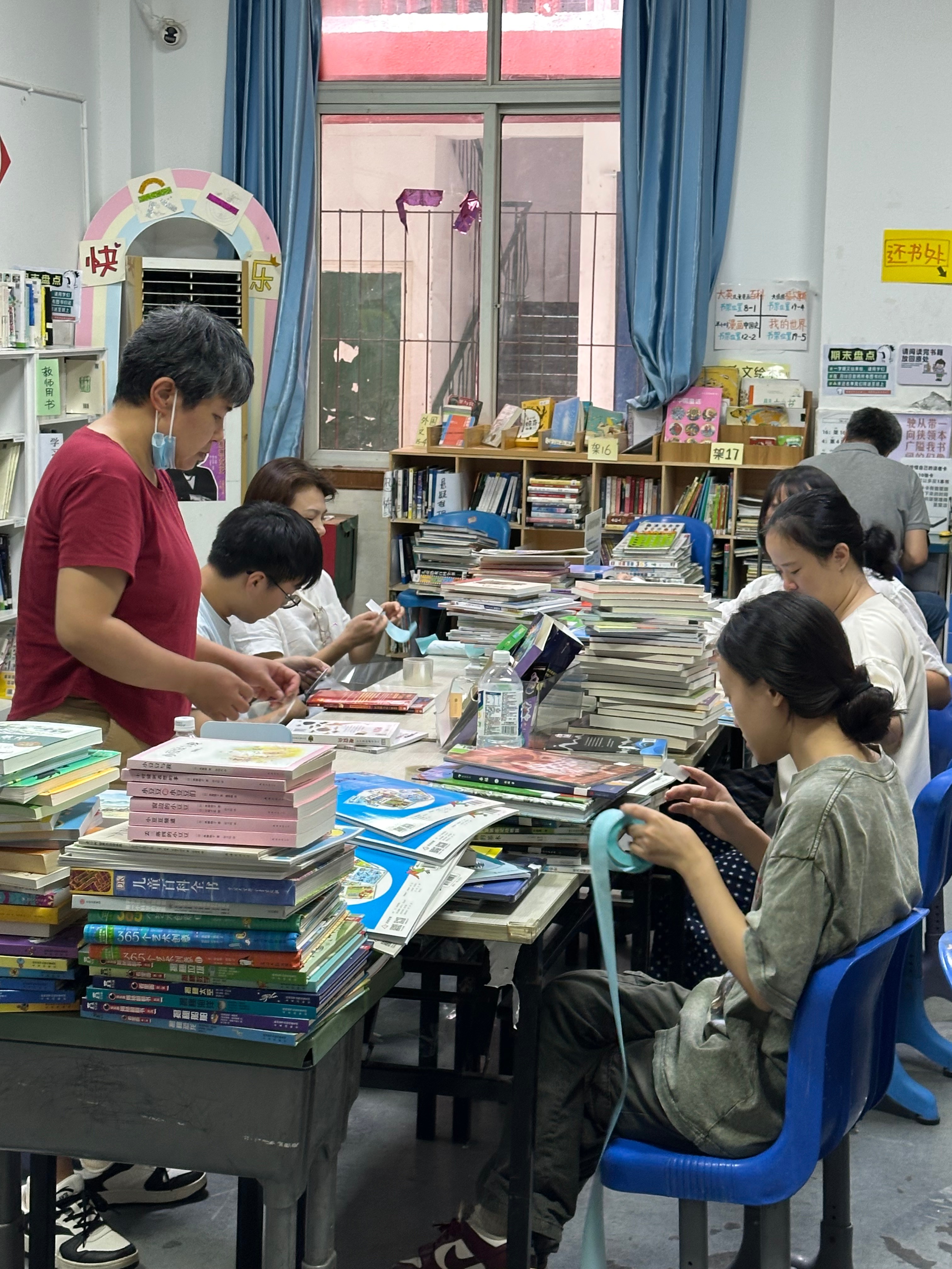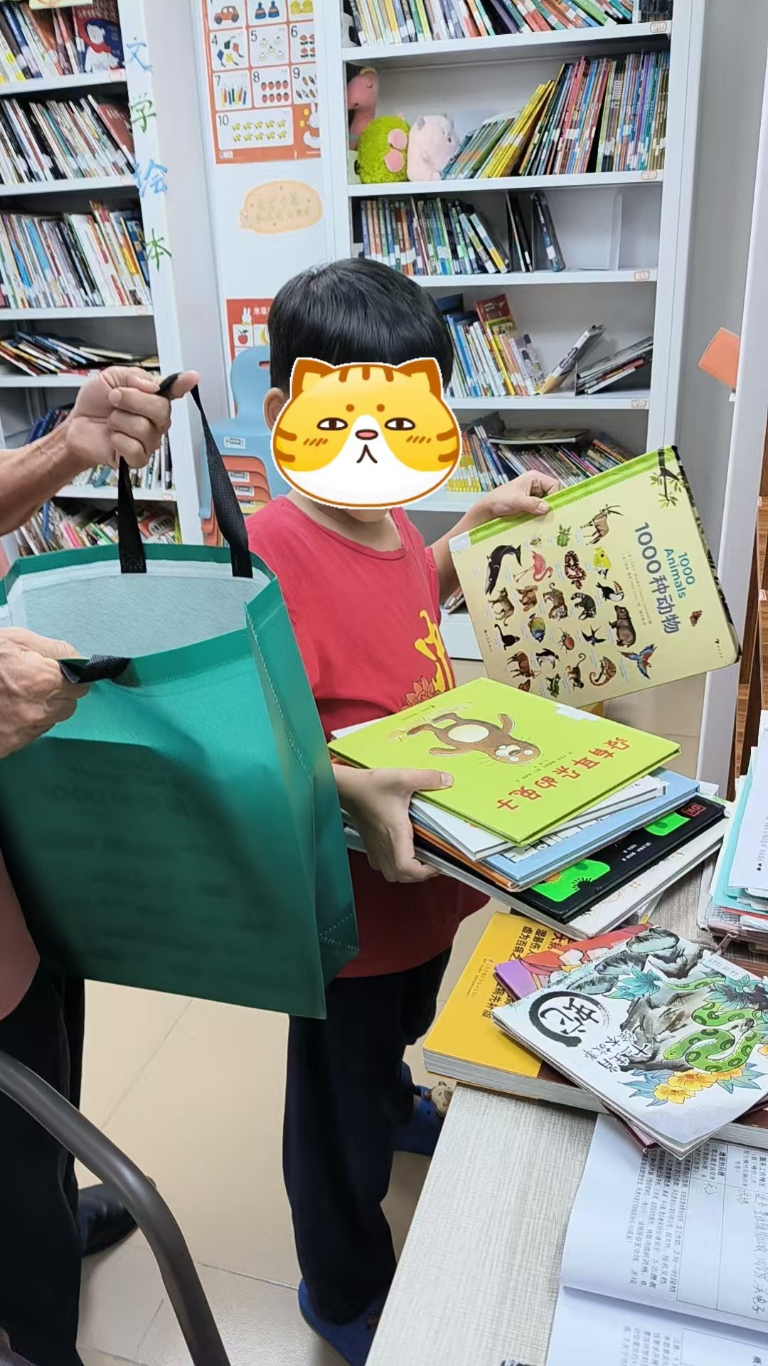 今天大家很厉害,拆了好多新书又搬了好多捐赠的书!还有一个小朋友默默的吭哧吭哧干,忙到最后大脑宕机,都忘记合影😂 期待开学和孩子们见面啦