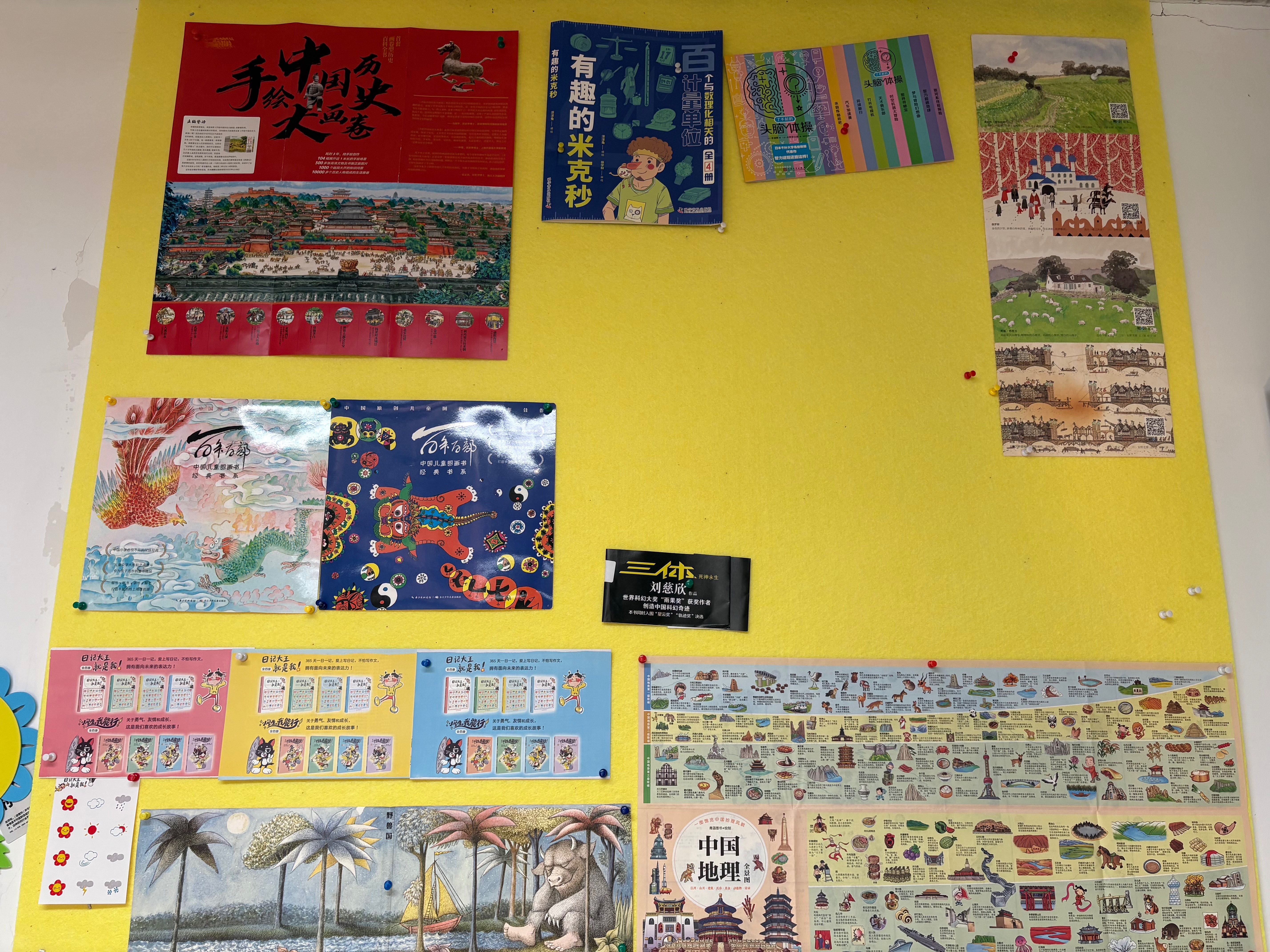 学校还没有开学,记错了时间,提前到馆半小时😅给孩子们带了一个汉语拼音卡片,找毅桦要了一个简易挂钩,在馆中挂起来😄今日主要任务:图书盘点。大家到齐一起干,时间还是飞快的,不知不觉就到点了,圆满收工。