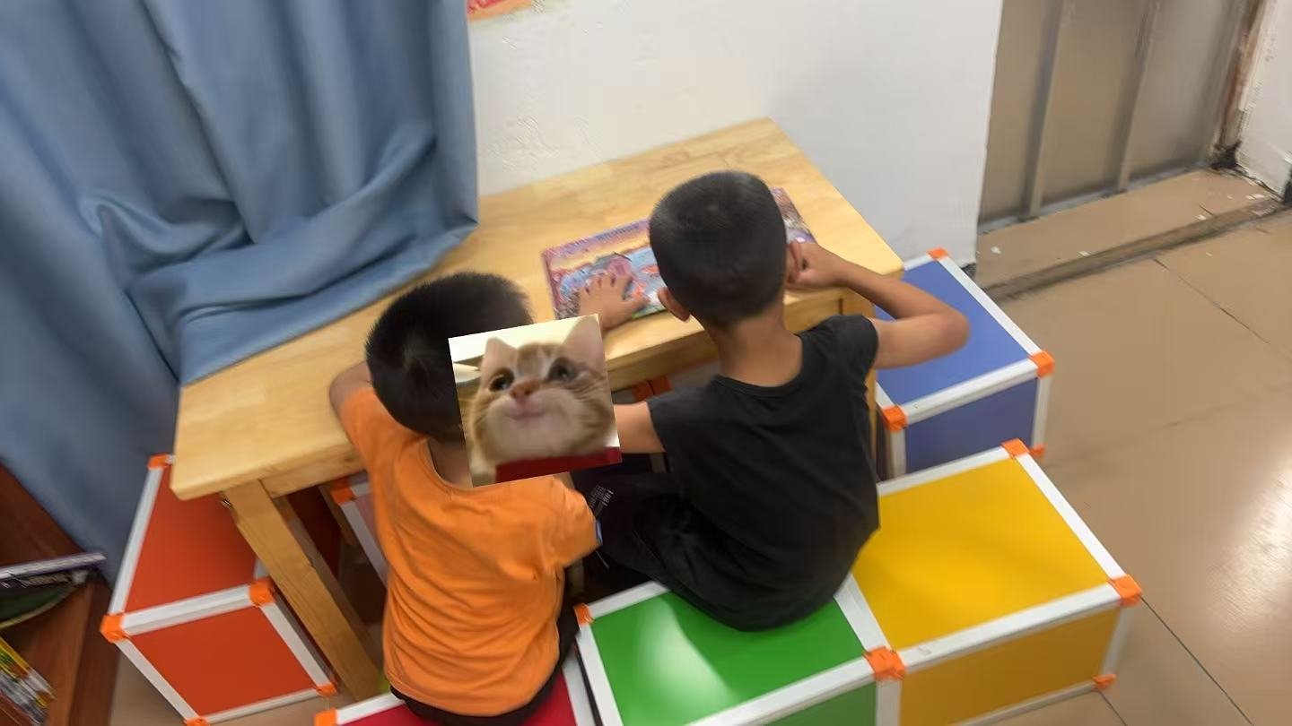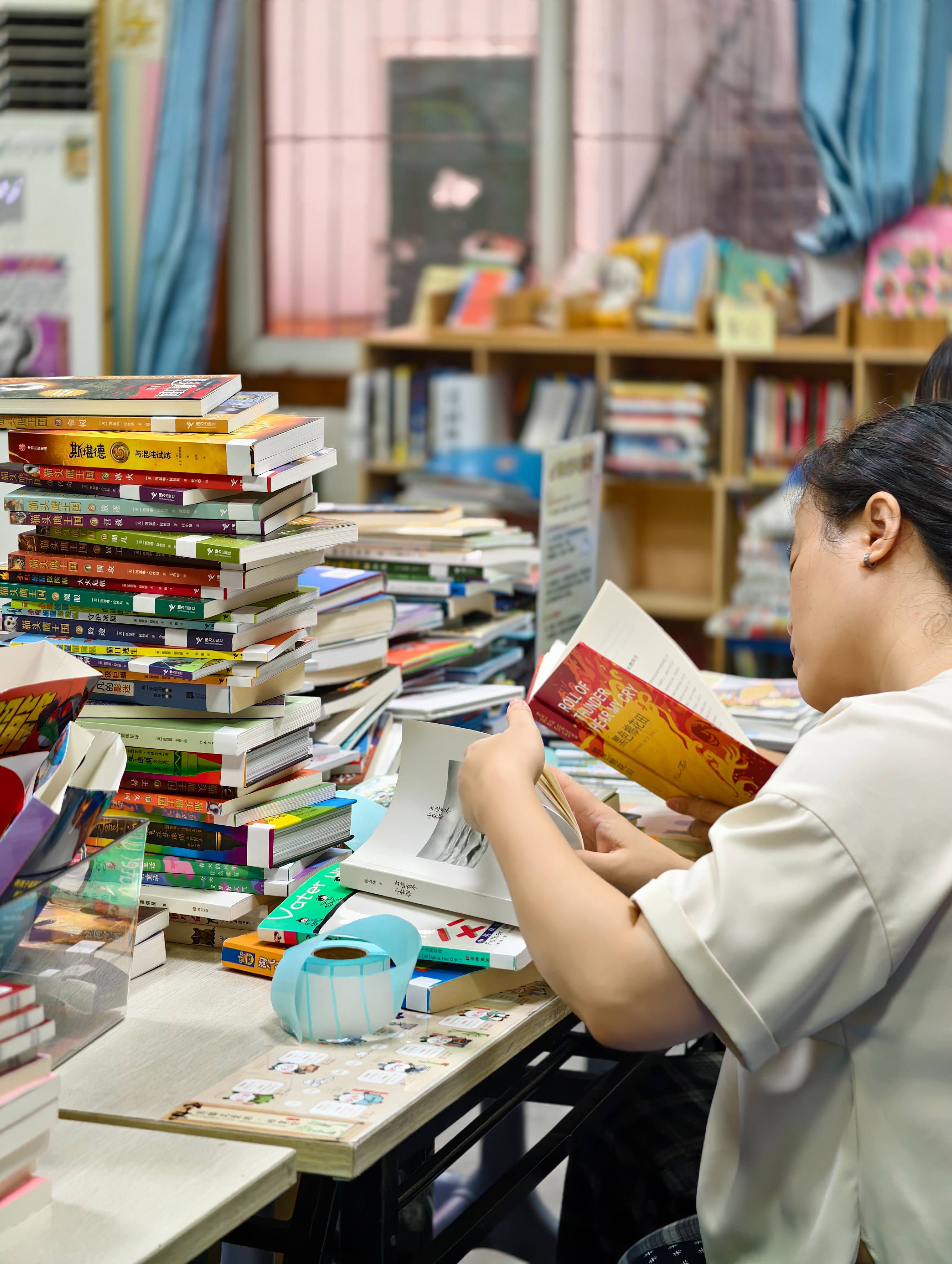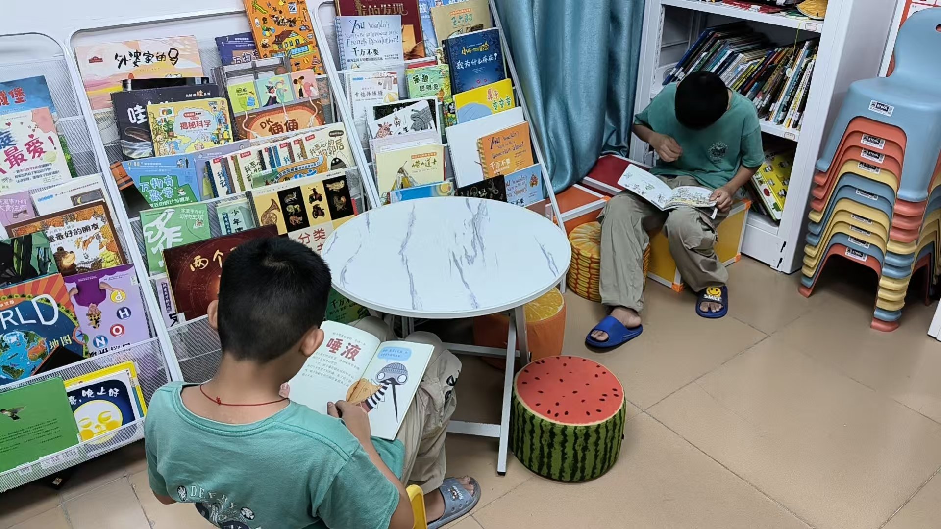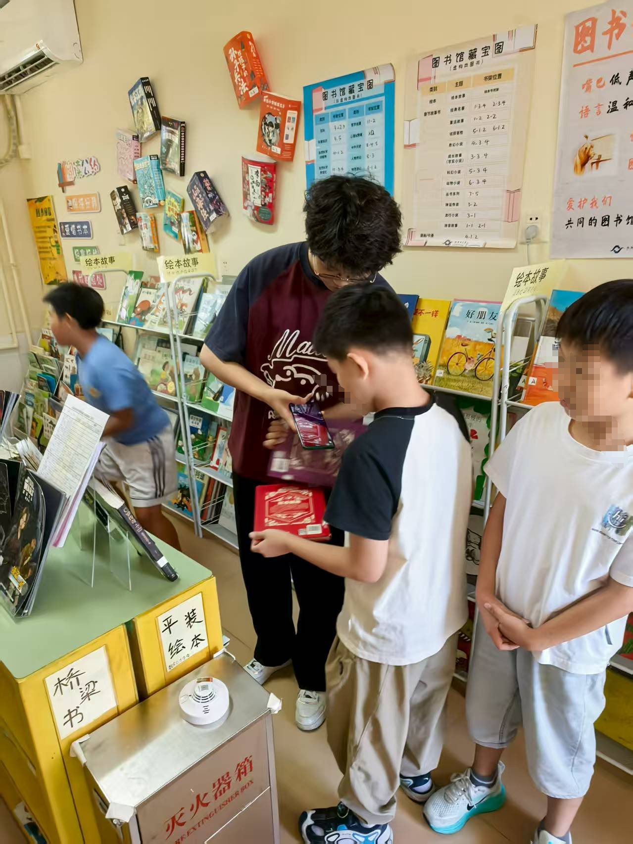 我在外面跑一圈之后回到馆里,经常看到cy正被一大群孩子围着借还书,忙得不亦乐乎。