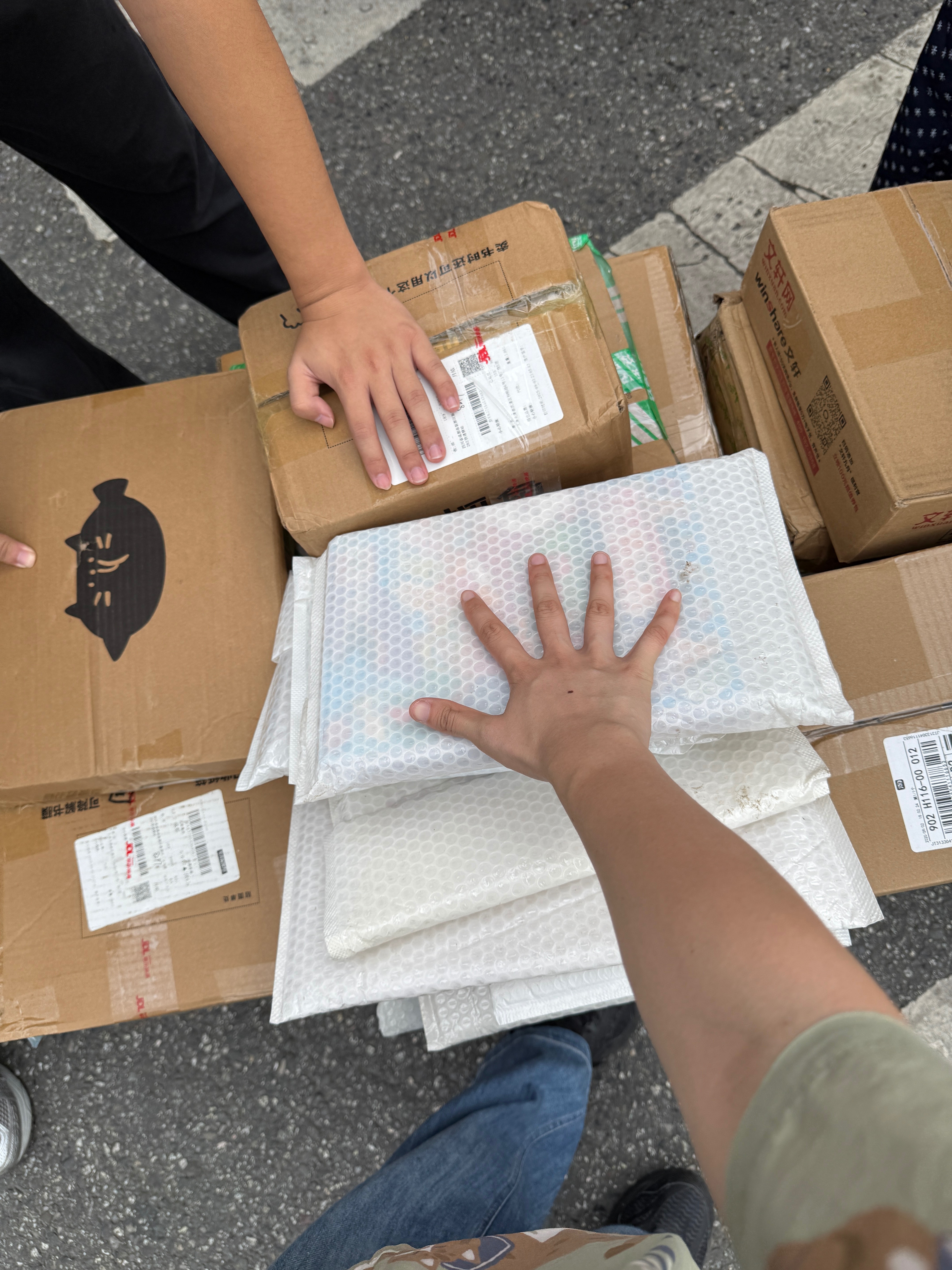 流水线作业似的做上架前准备,大家很快就有了默契,感谢四九给我们喷花露水和准备垃圾箱。