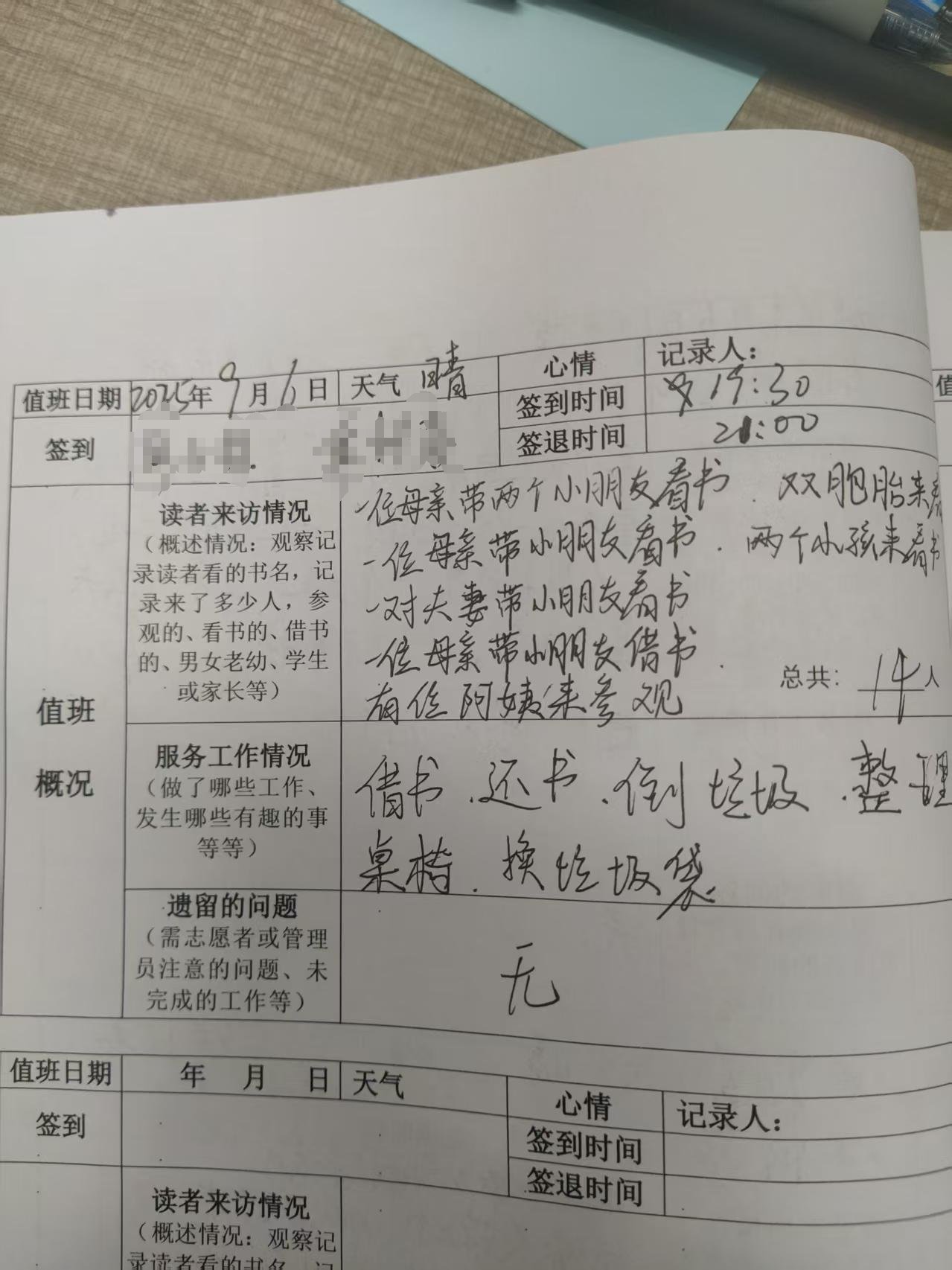 其他时间我负责处理借还书事务,走前清空墩布桶,一次值班复习了各种馆内操作。