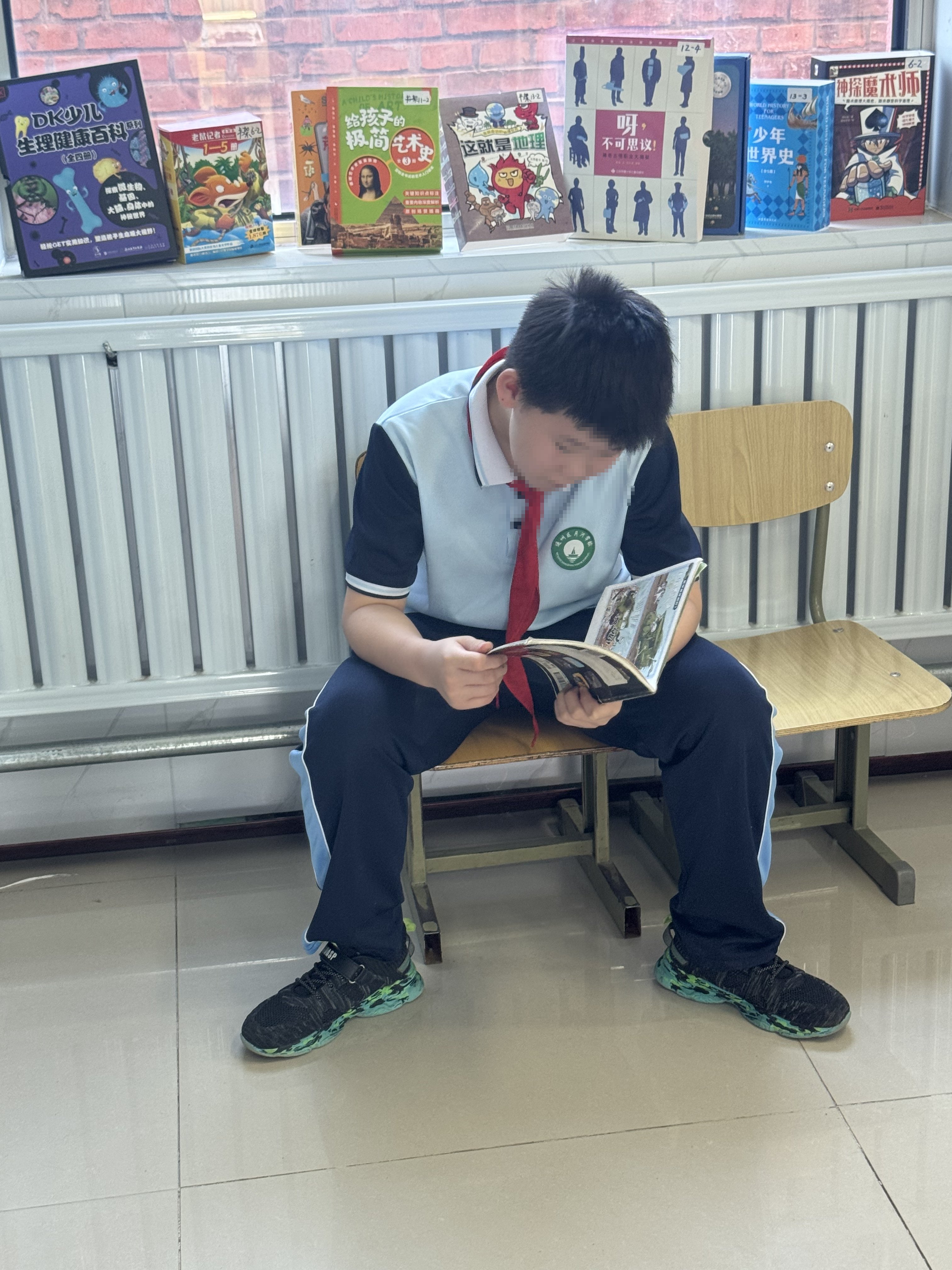 已经搬去三楼的五2班,有些爱看书的孩子照例会随时来借书,四1班的XMZ也是随时就来,坐在书架边的地上心无旁骛地看书。
