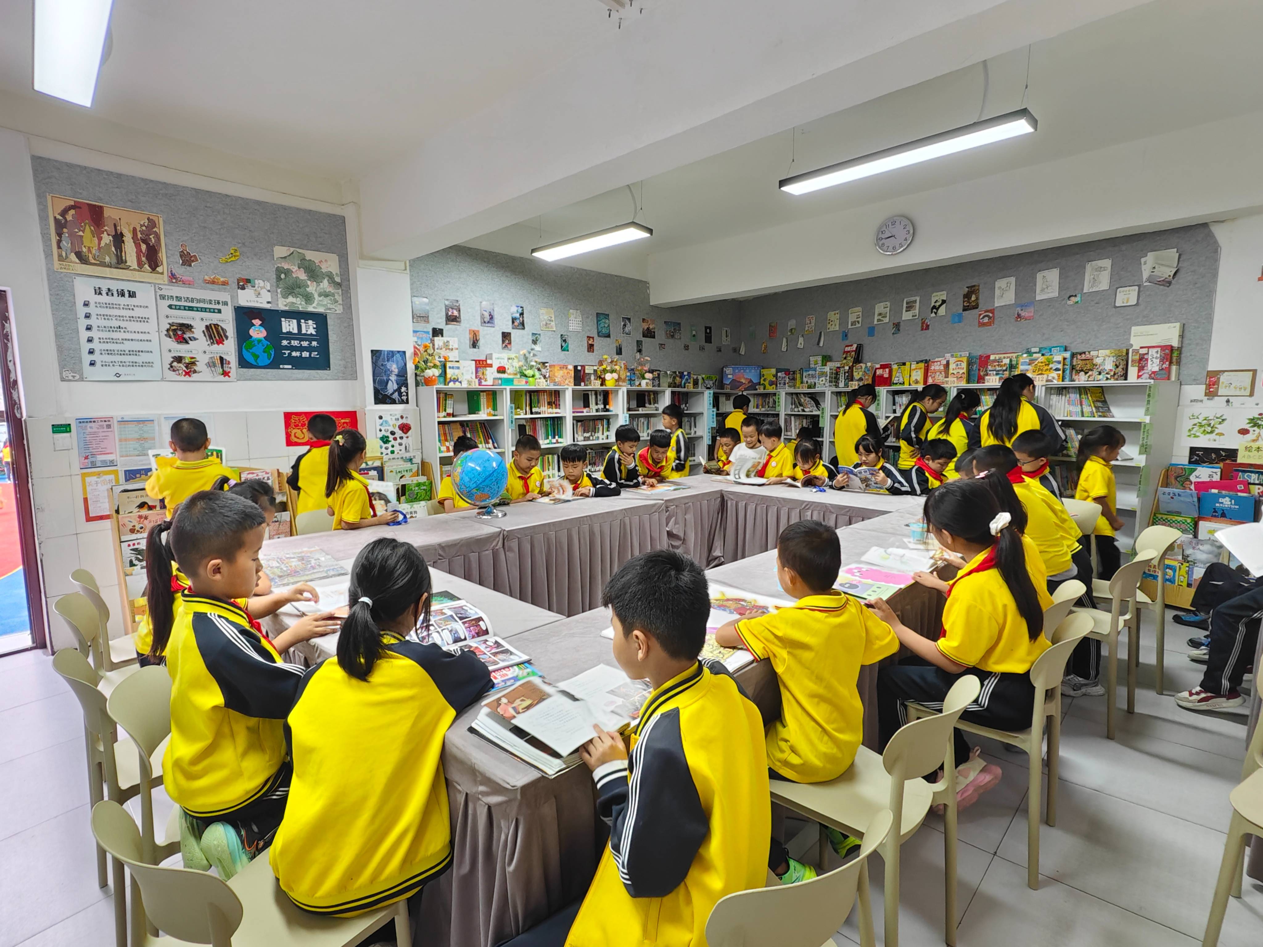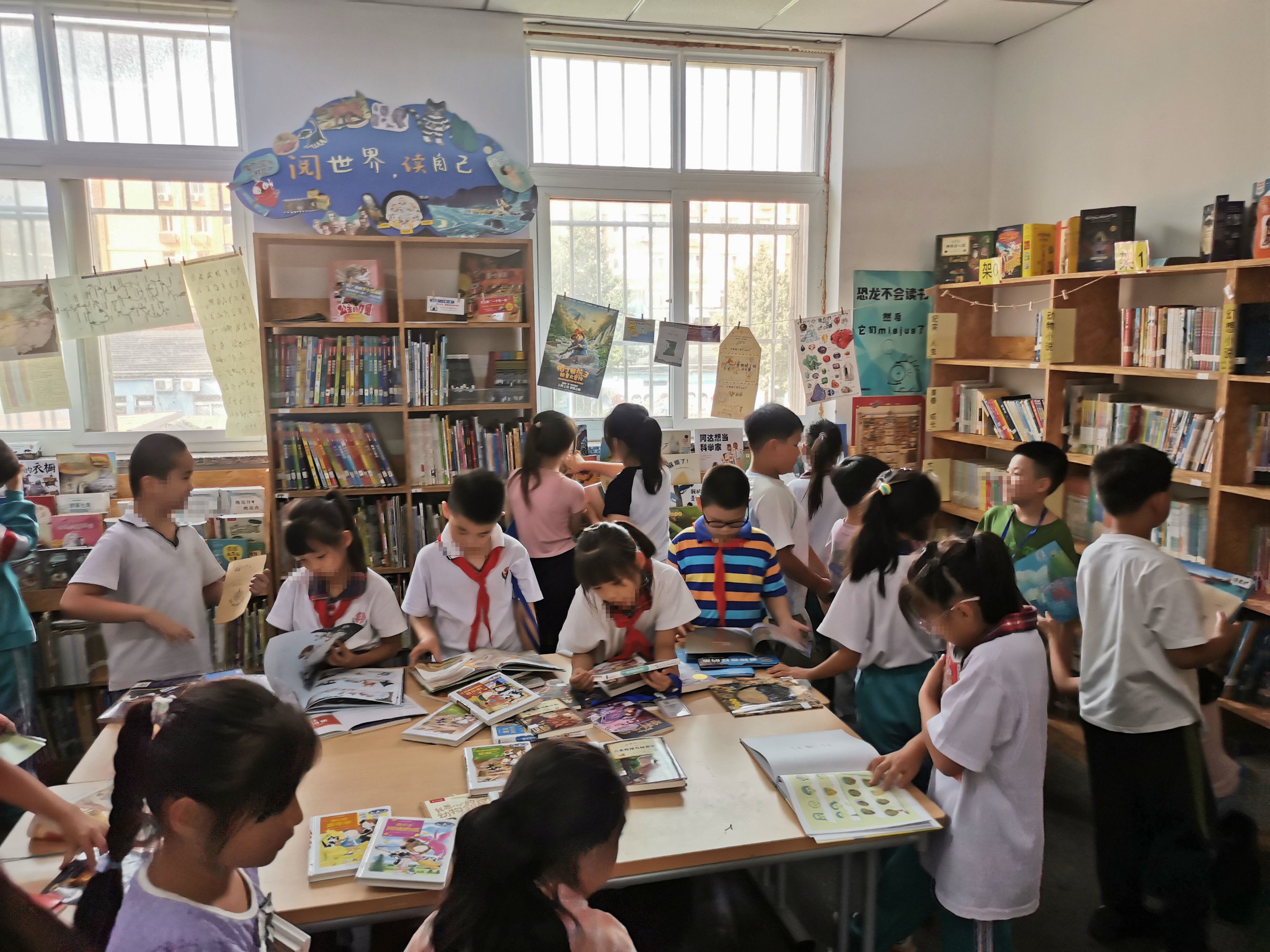 小朋友们借书的热情很高,每次课间休息图书馆里都很热闹~