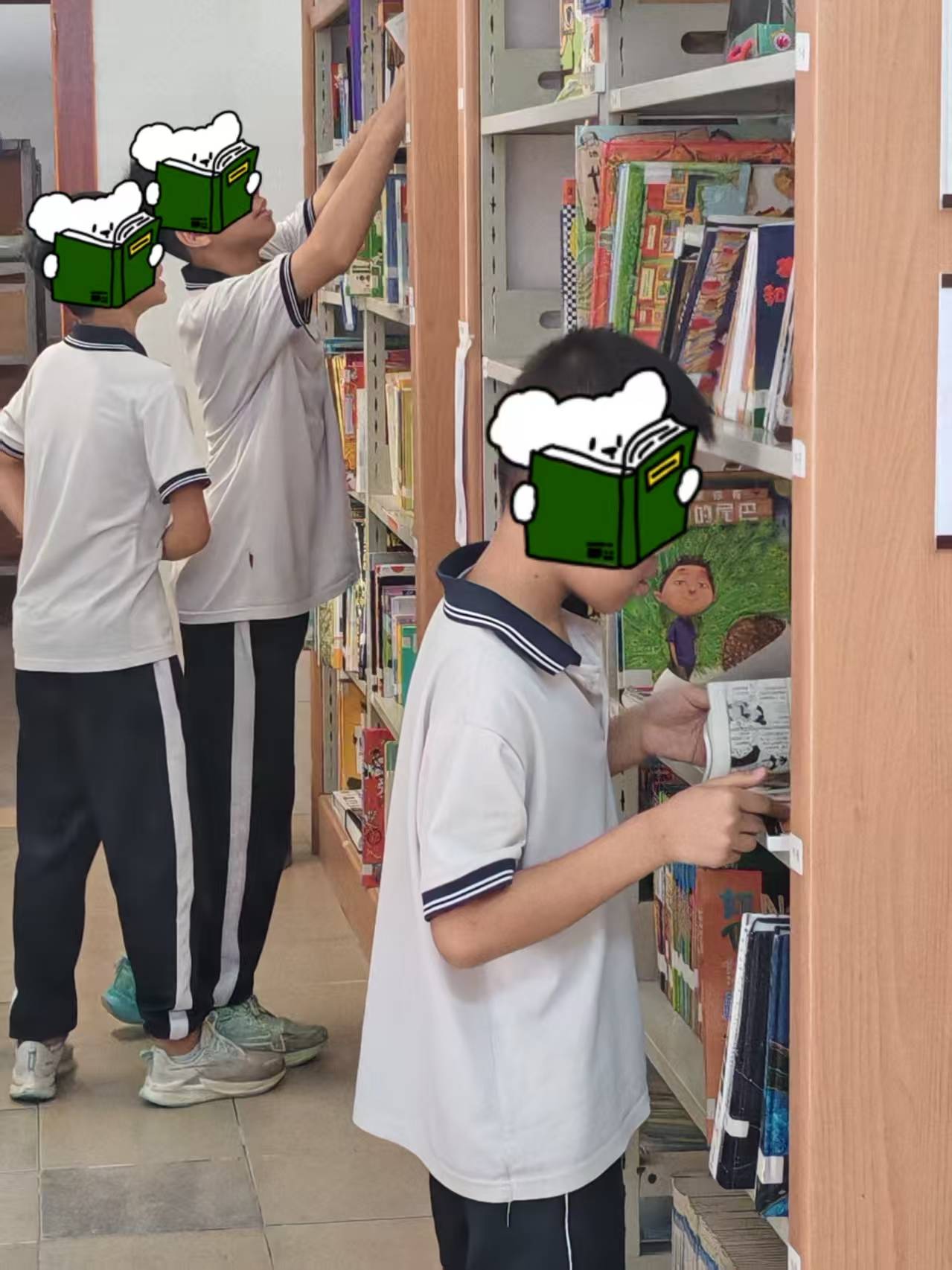 35馆确实小,午间一点多满满当当塞了一屋子。借好书的同学赶紧劝他们回班里吧,着实容不下这么多人呀~