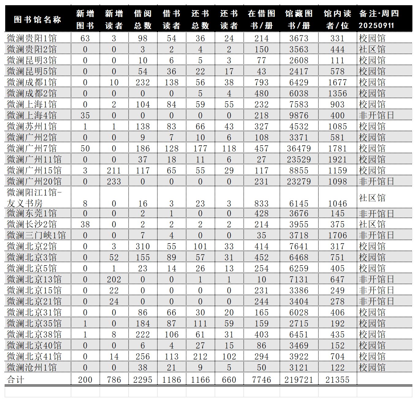 各馆数据日报202500911/周四: