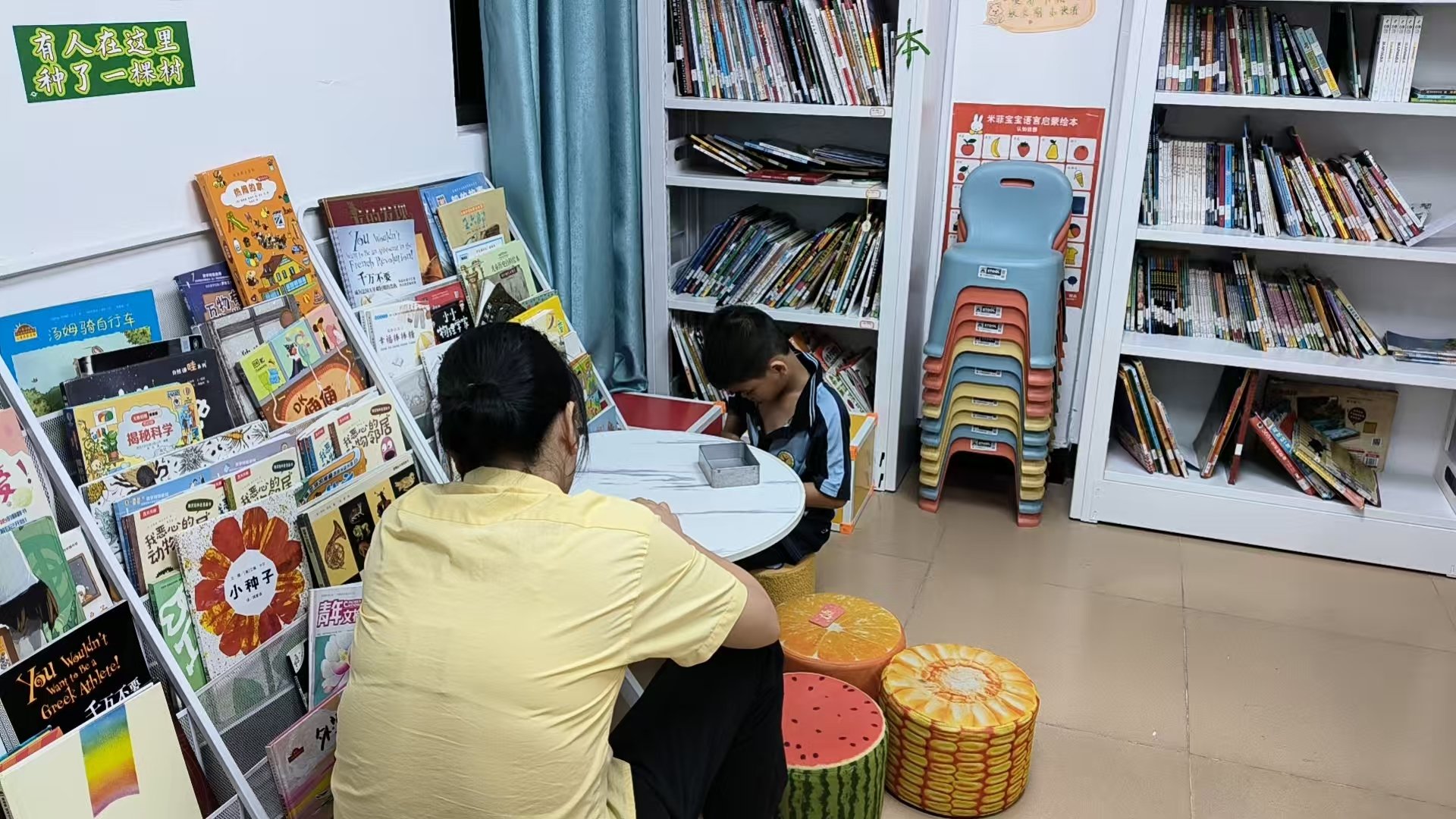 - 第一次进行志愿者工作,主要负责书本借阅归还、整理书架、观摩绘本课及协助课堂秩序,丸子老师和罗晖老师非常热情耐心引导,让我上手很快,很高兴加入这个集体。