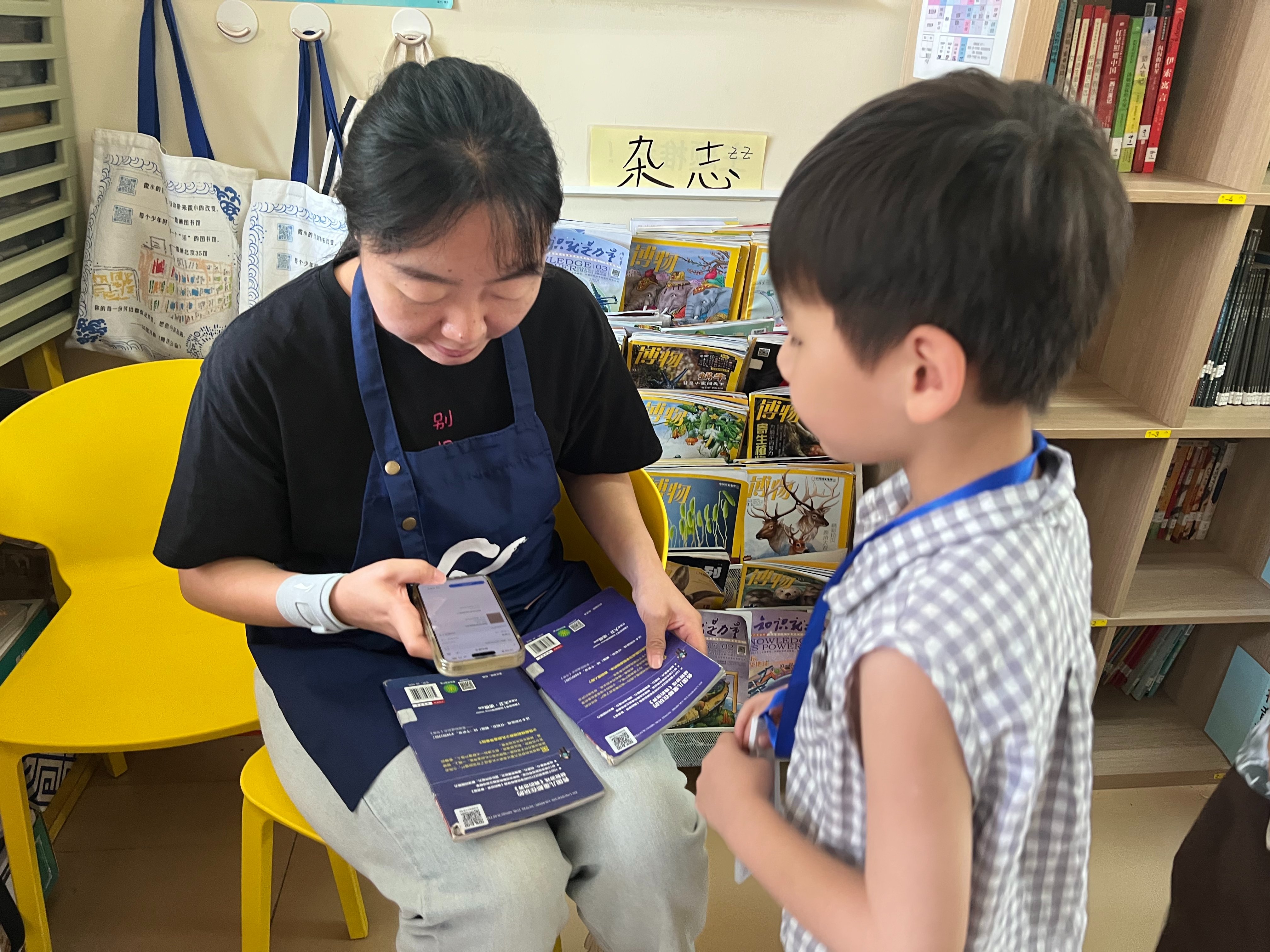 第一次去图书馆值班,不仅看到了很多爱读书的小朋友,还认识了一起值班的小伙伴们,非常开心。小朋友们很喜欢看书,每到课间馆内人都爆满,听到一个小读者成功借书后高兴地噢耶,感觉自己也被感染到了,真好!