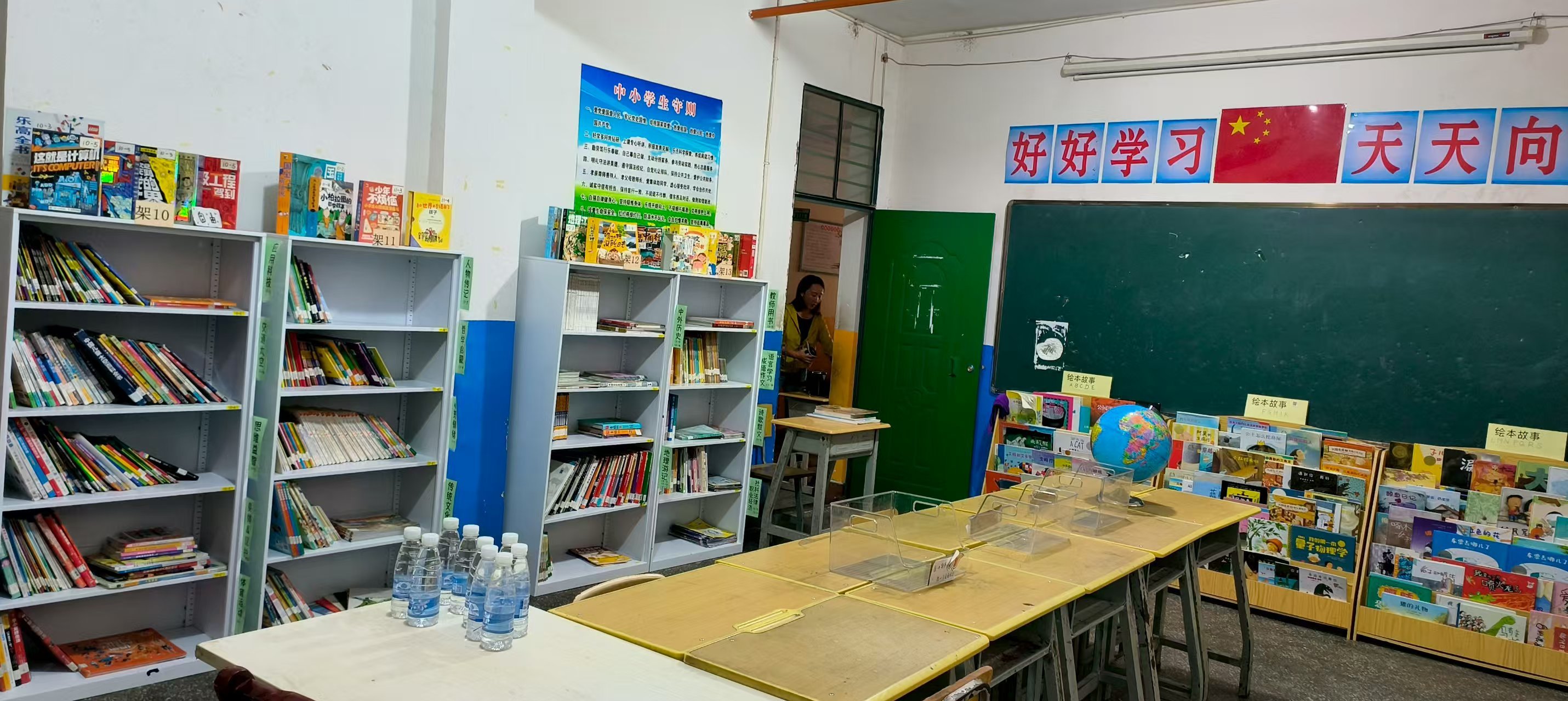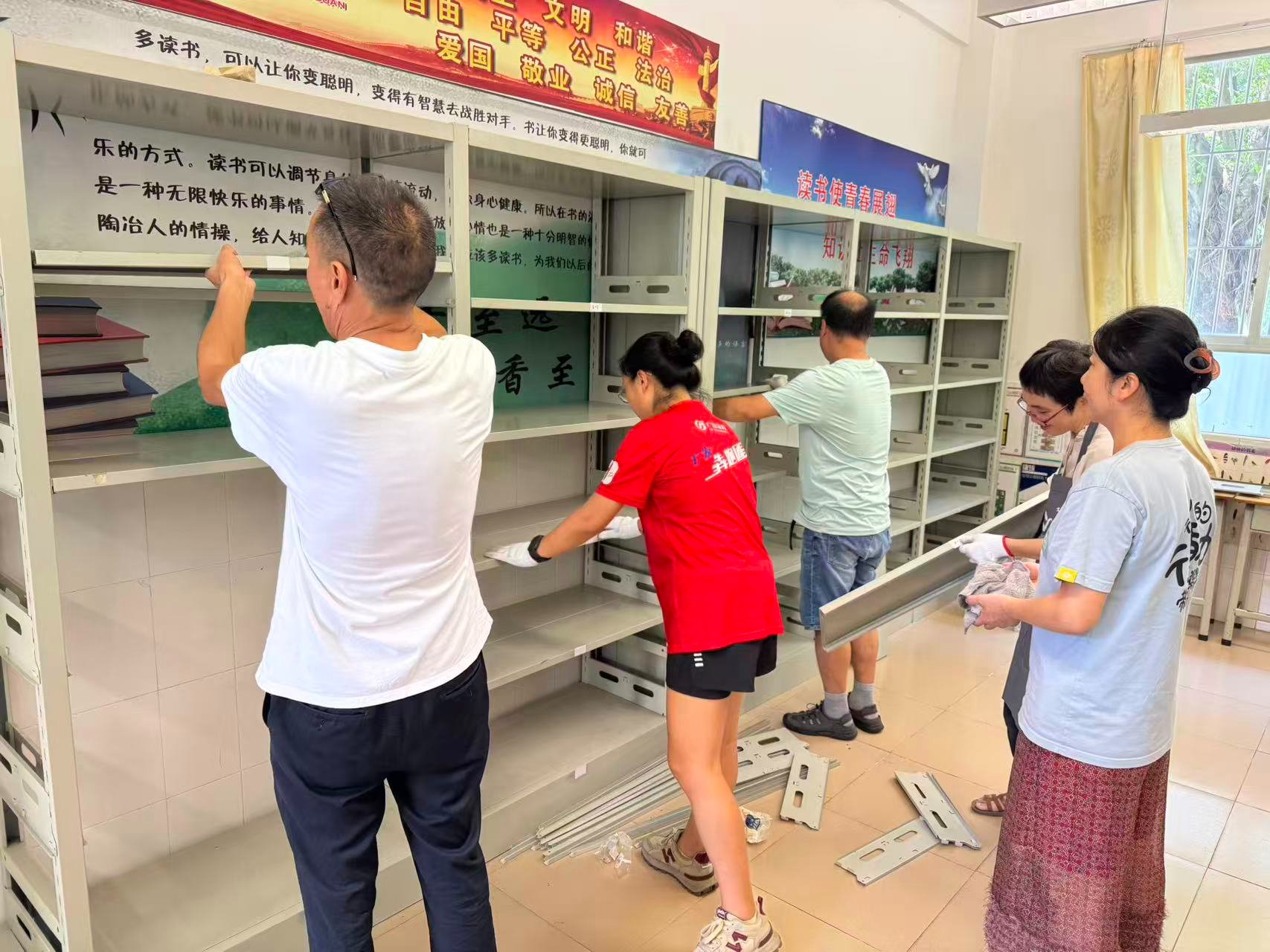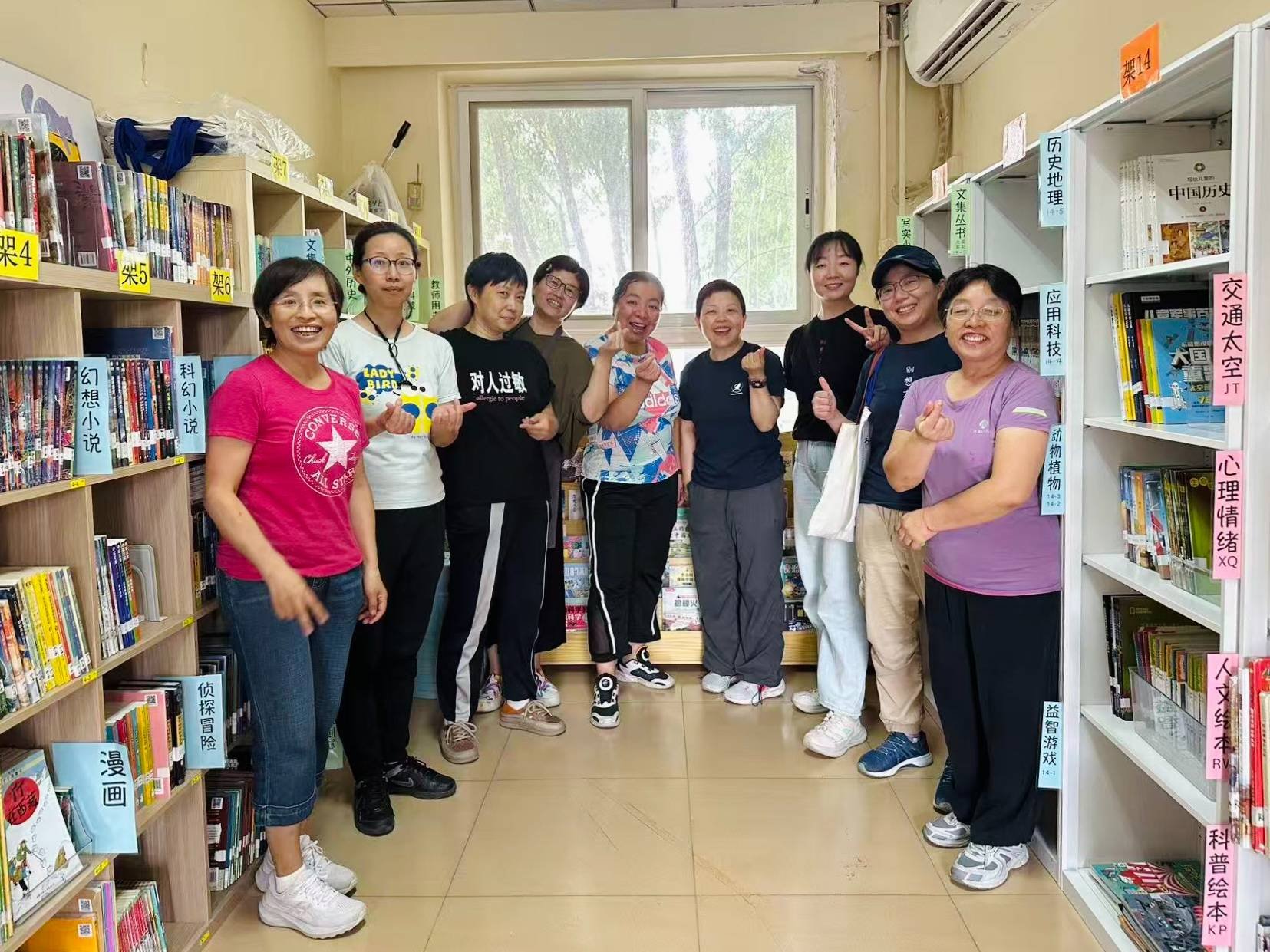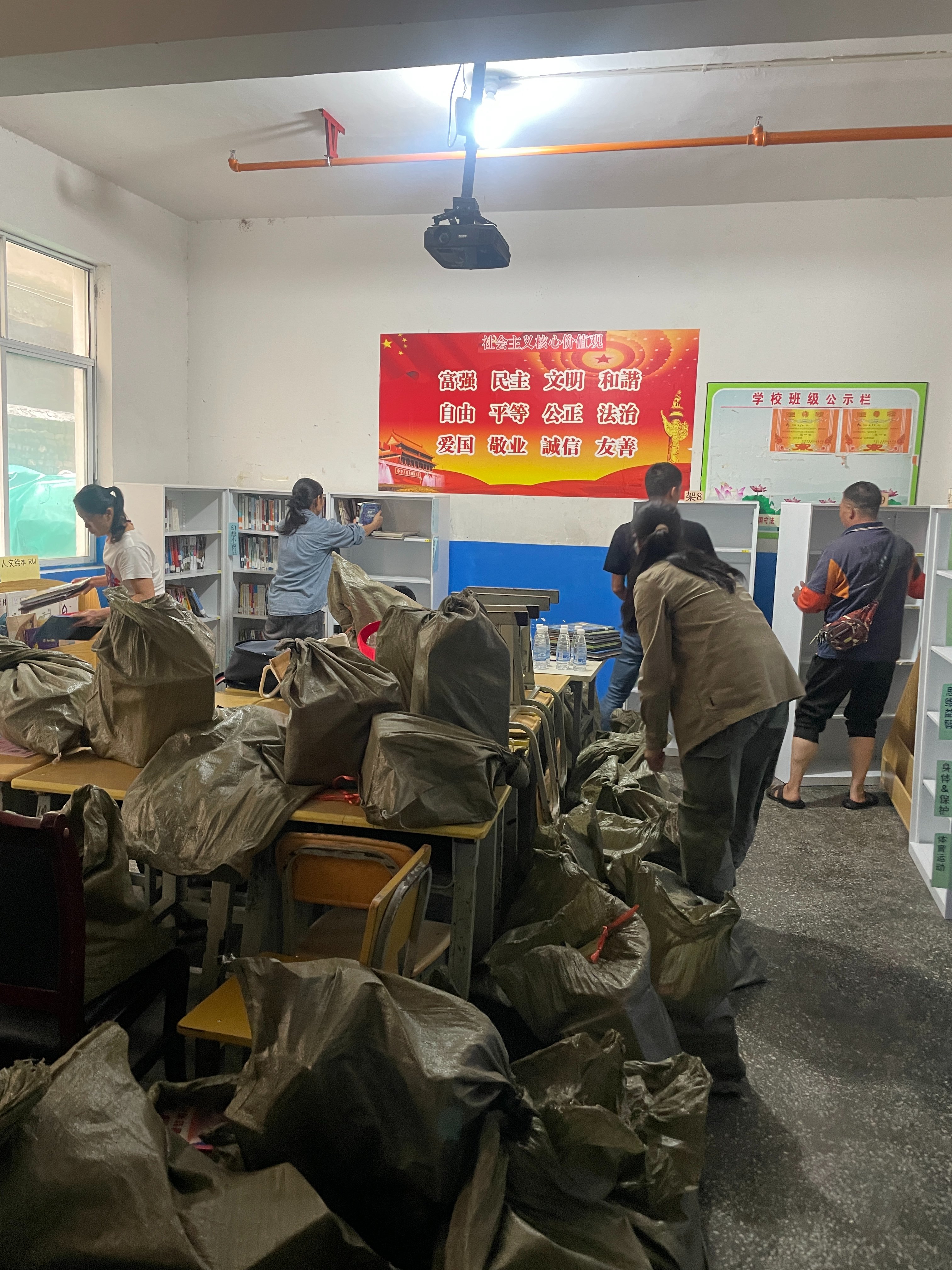 大家开开心心吃完午餐后准备收尾结束当天战斗时,又发现了2箱未拆包装的书,七八个人流水线工序又忙乎了半天。最后咪咪姐扫地,罗老师擦地把楼道和图书馆擦干净了,毅桦给挂钟安了家,我扔了两趟垃圾还有晓蕾,丸子姐,丸子哥等人一起收了尾,14:50到15:00左右大家离开了学校。