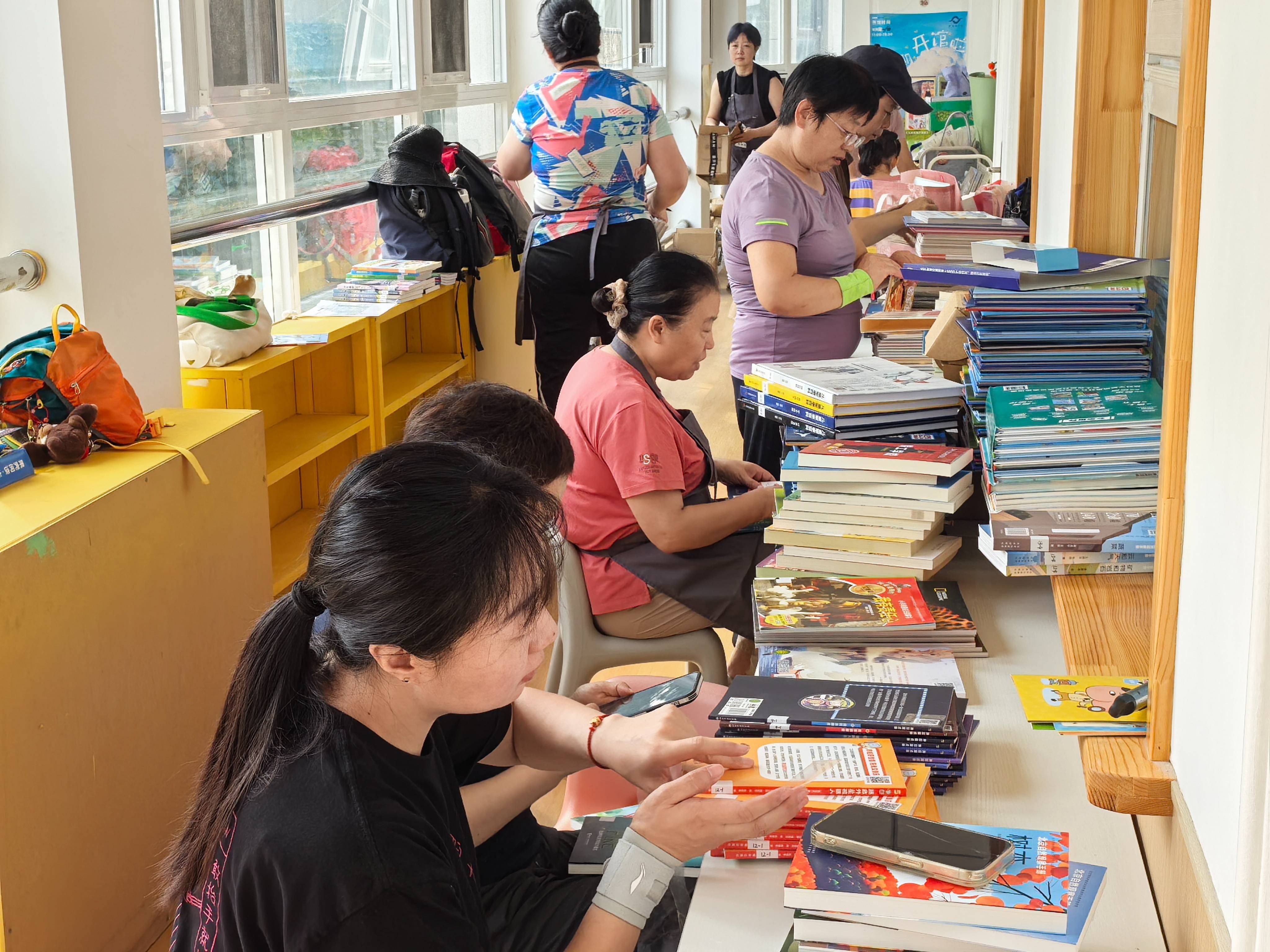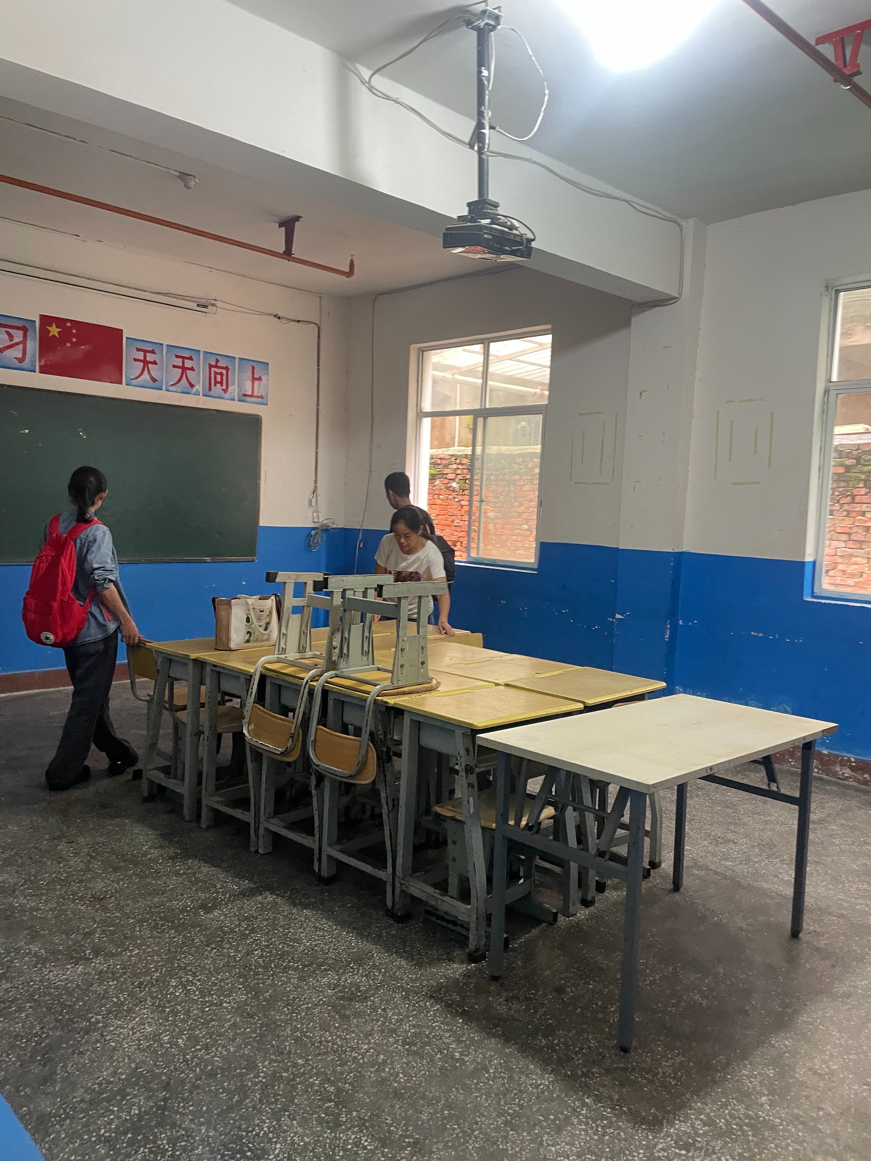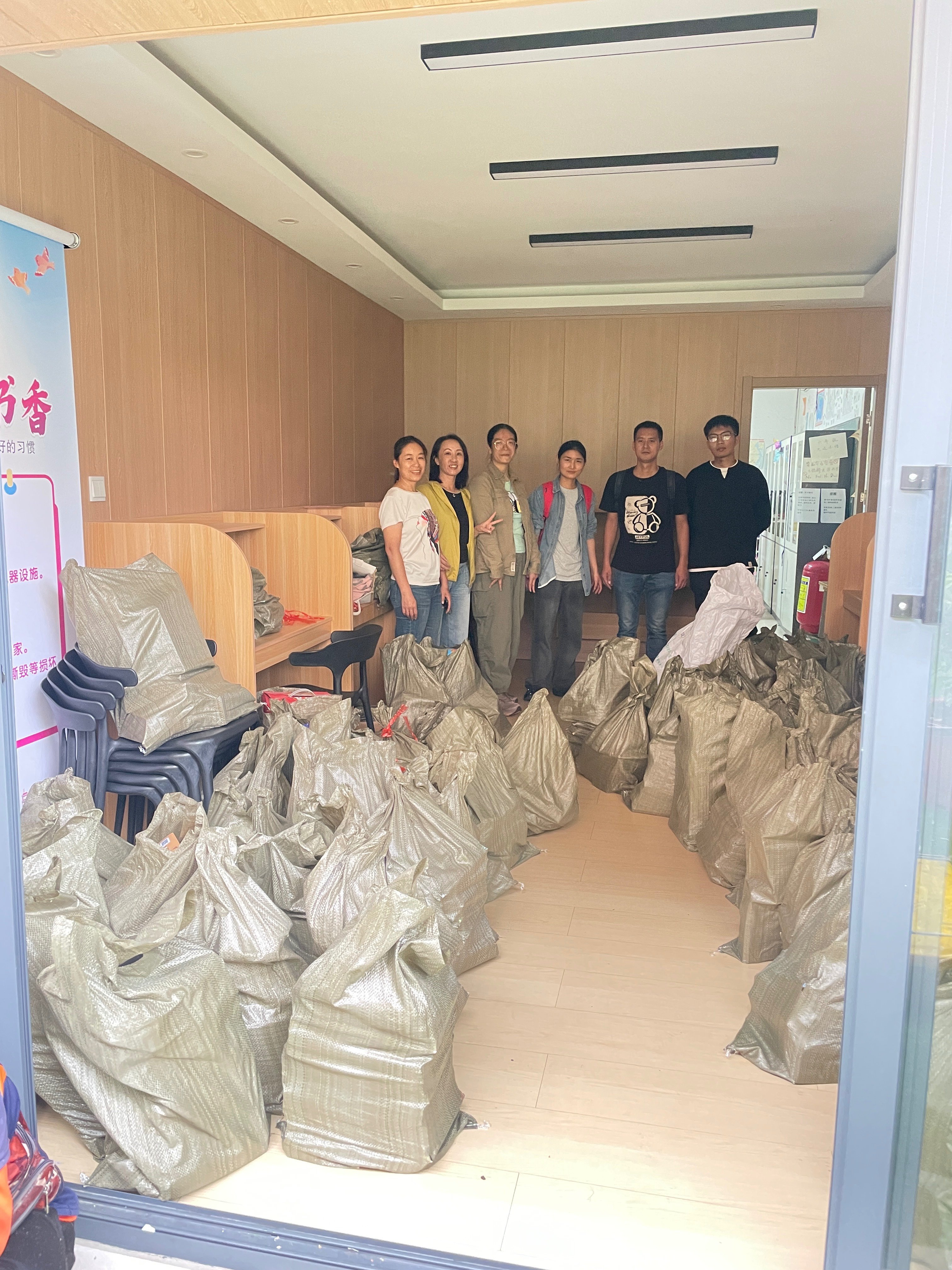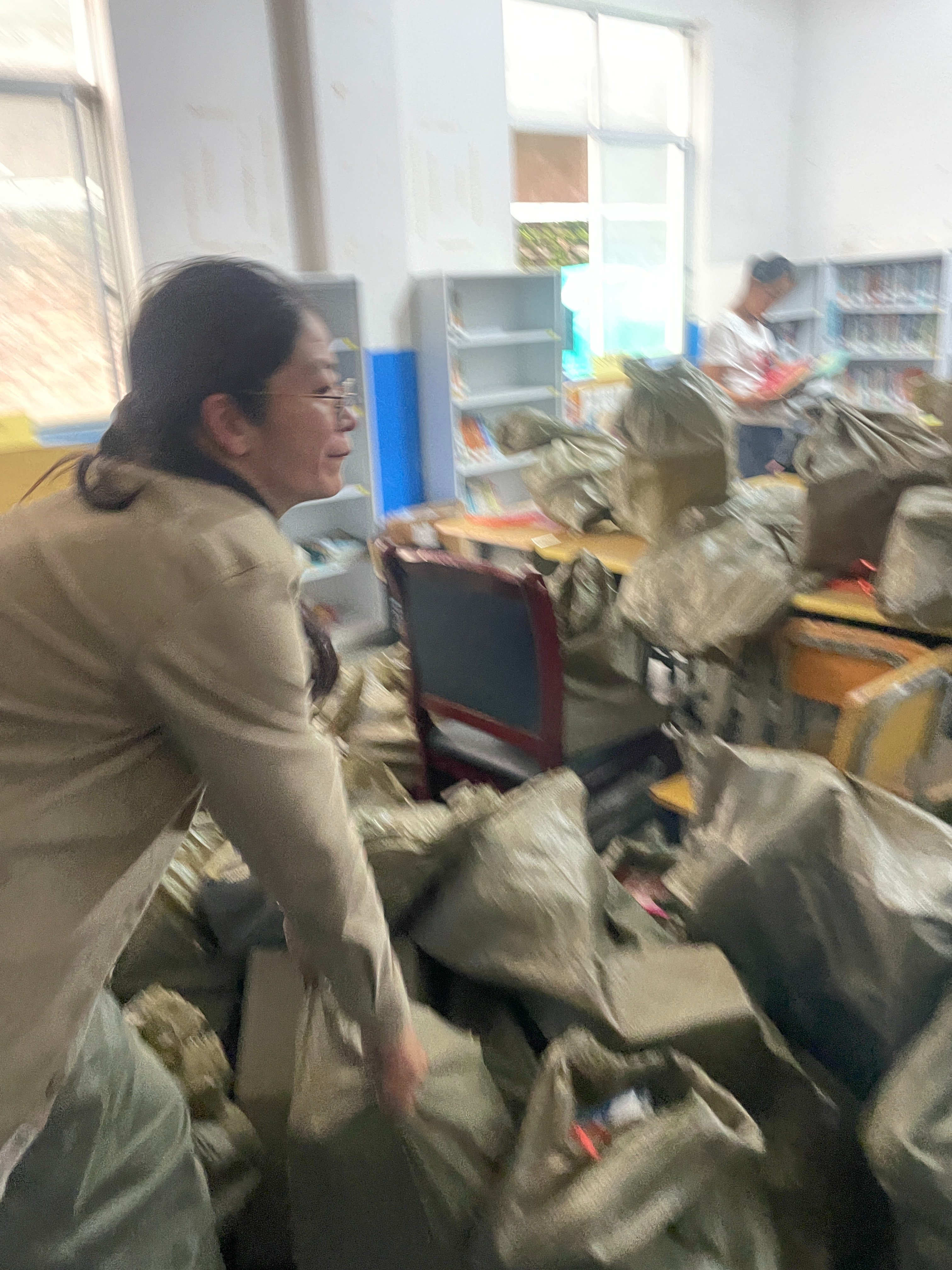 大家开开心心吃完午餐后准备收尾结束当天战斗时,又发现了2箱未拆包装的书,七八个人流水线工序又忙乎了半天。最后咪咪姐扫地,罗老师擦地把楼道和图书馆擦干净了,毅桦给挂钟安了家,我扔了两趟垃圾还有晓蕾,丸子姐,丸子哥等人一起收了尾,14:50到15:00左右大家离开了学校。