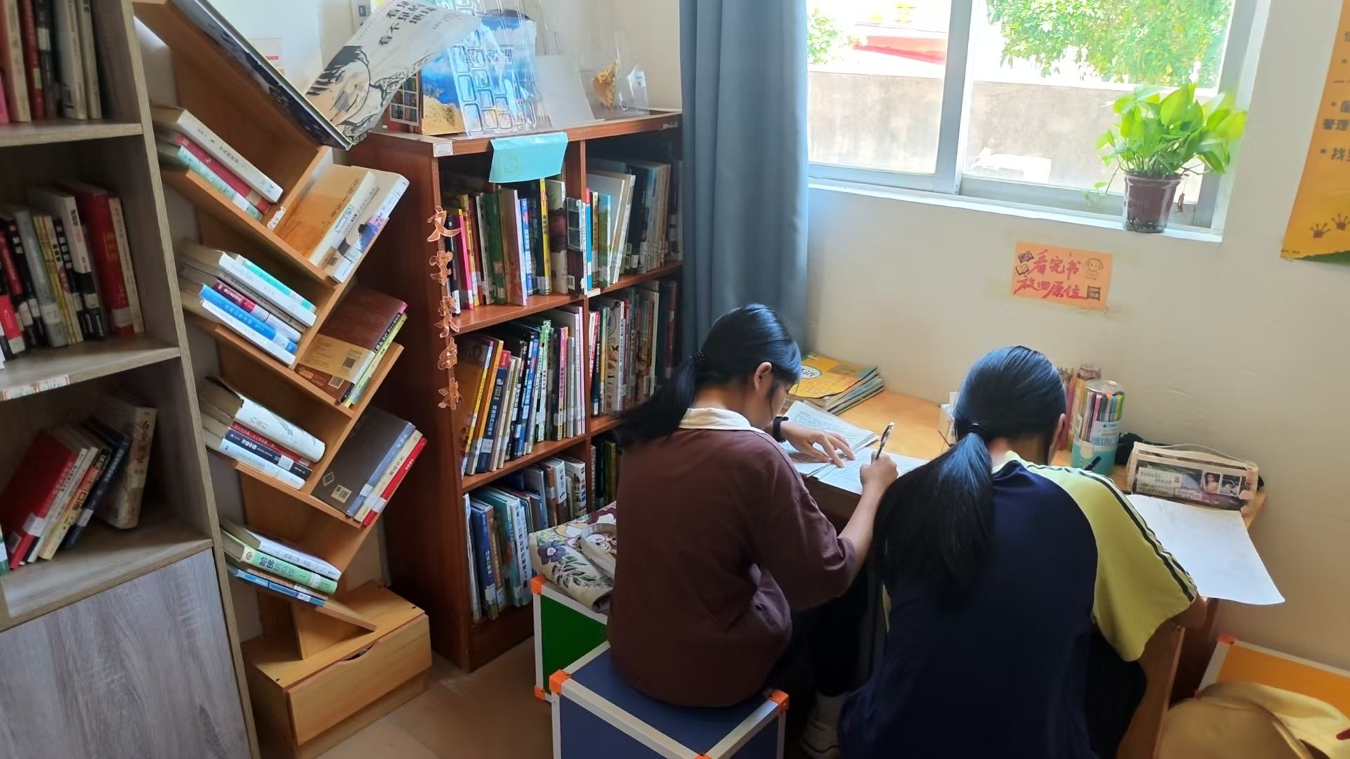 感叹一下改造完的图书馆真是太好看了,从图书室到外面楼梯口满满都是布置,阅读氛围超浓厚。