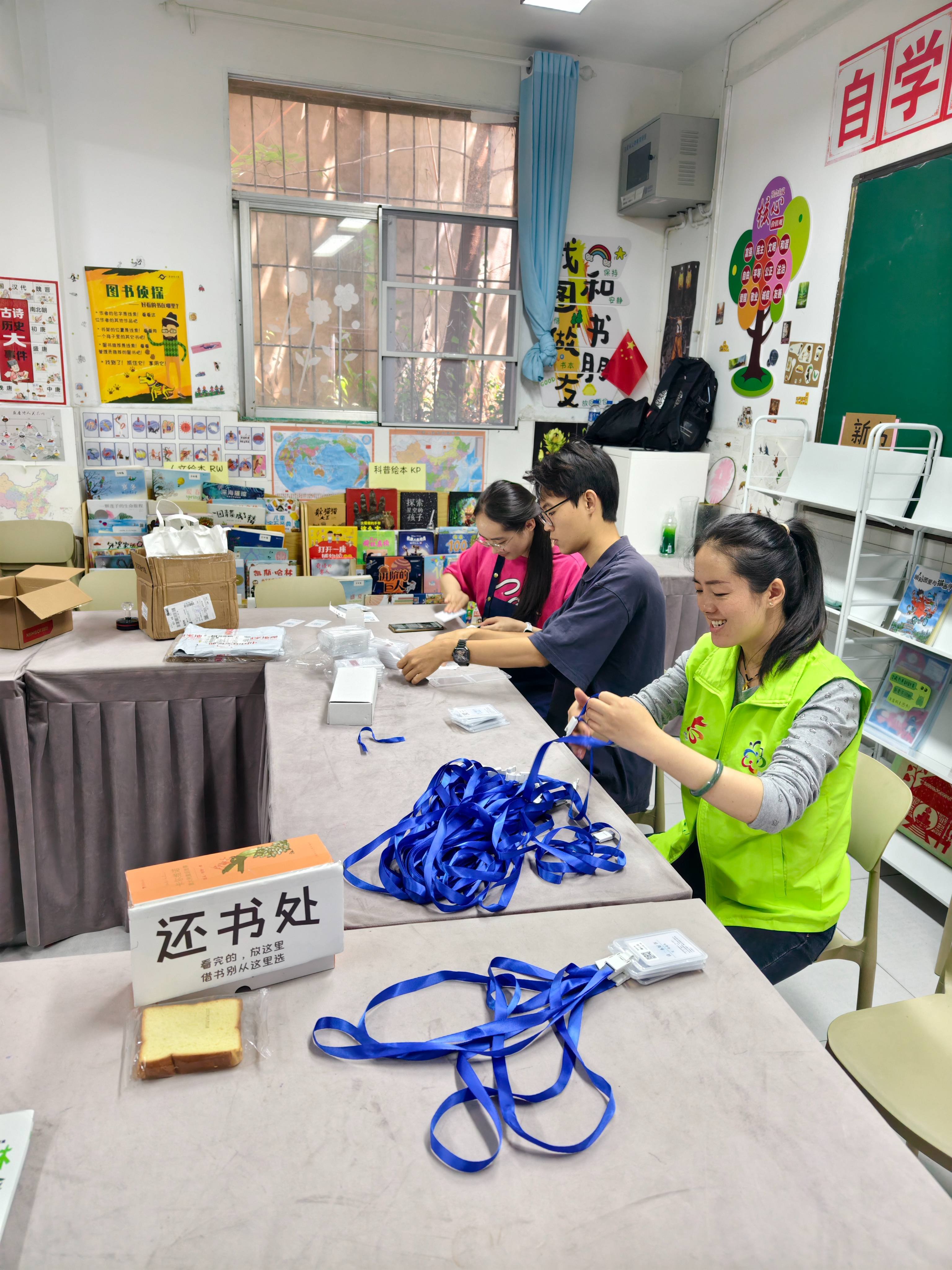 1.制作一年级新生借阅卡。感谢提前进行物资准备的伙伴,剩余的物料已全部放在黑板边桌下纸箱内。