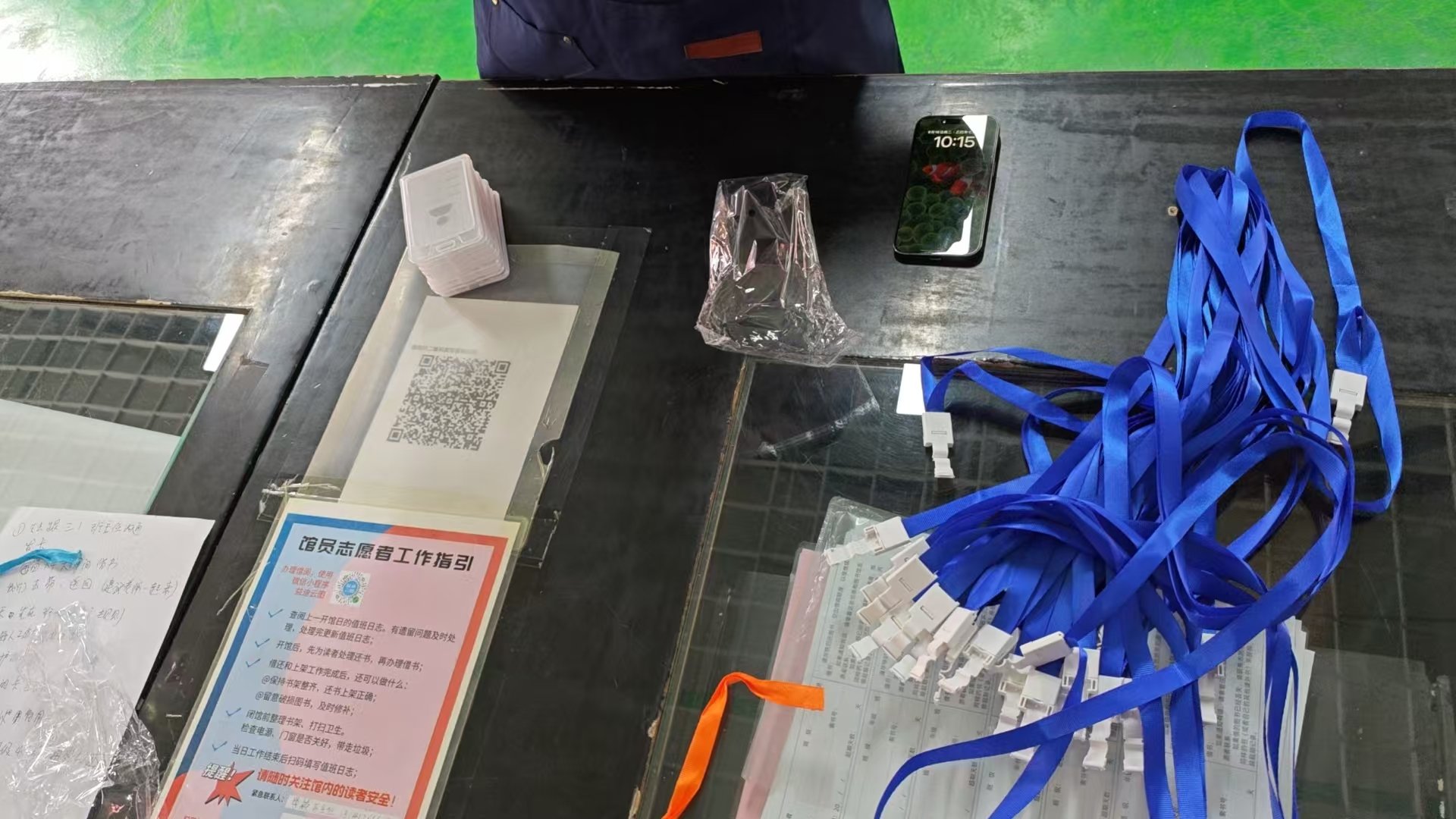 清点了一下馆里的物资,特别是借书卡、卡套、挂绳的数量。框框上架了部分新书,顺便把1馆没办完的新卡也处理了一部分。