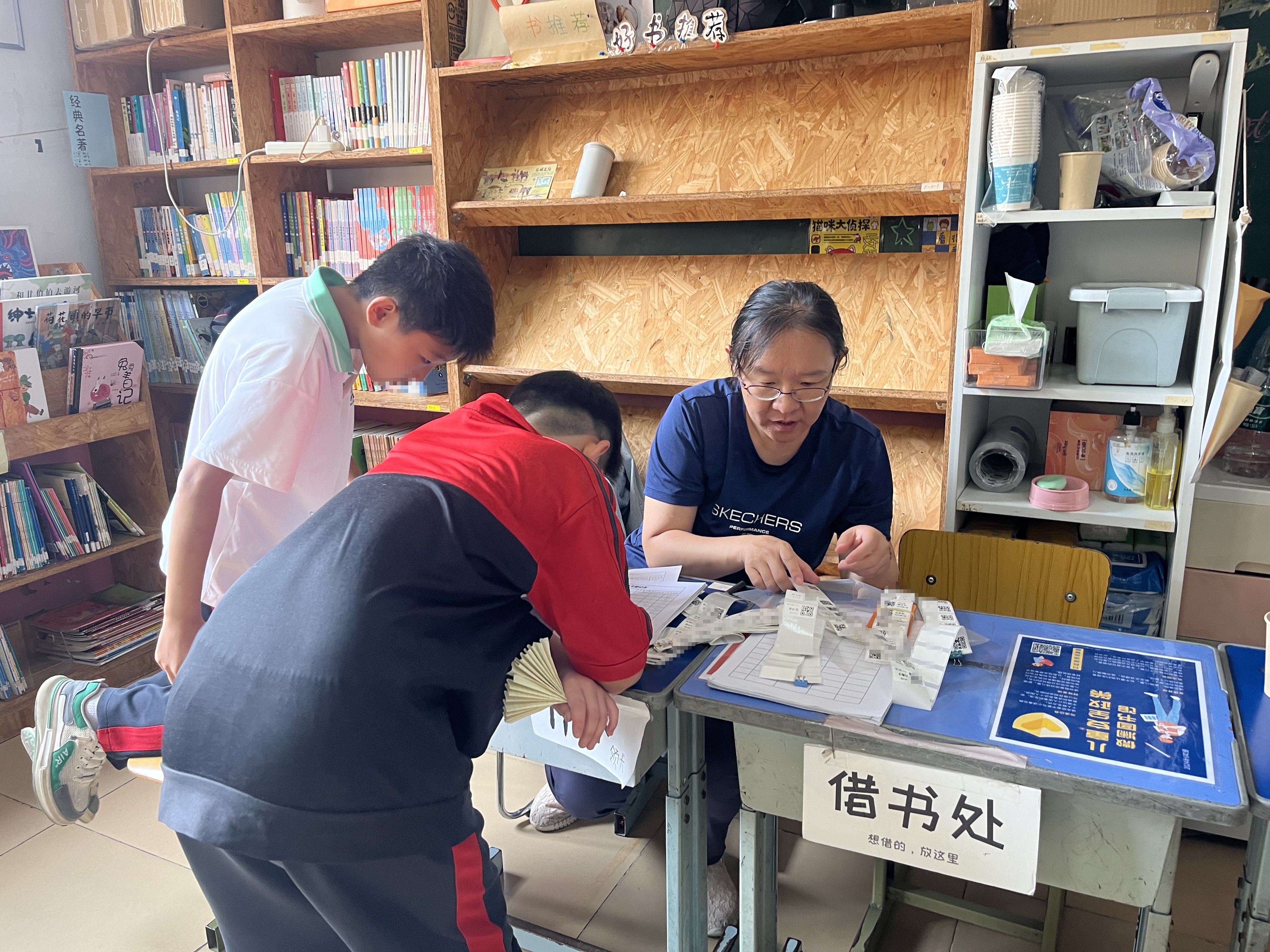 好久没有这么手忙脚乱过了,即使来了5个志愿者,中午高峰段,耳边仍然是四面八方的孩子声:“我要借书”,“我要办卡”,“我要xxx”