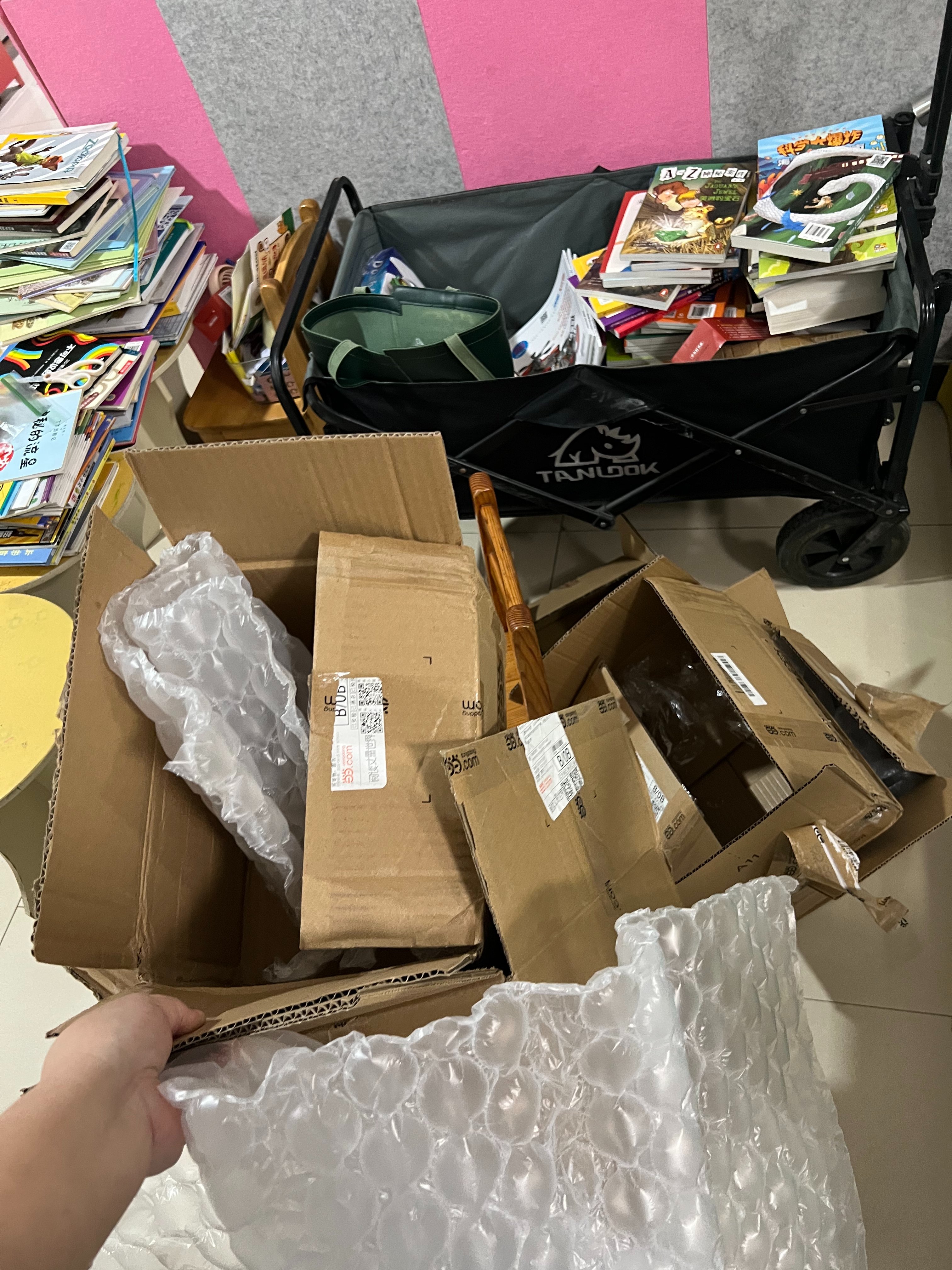 今天提早下楼取快递,谢谢周老师帮忙修好露营车,就敢一次买很多书了。