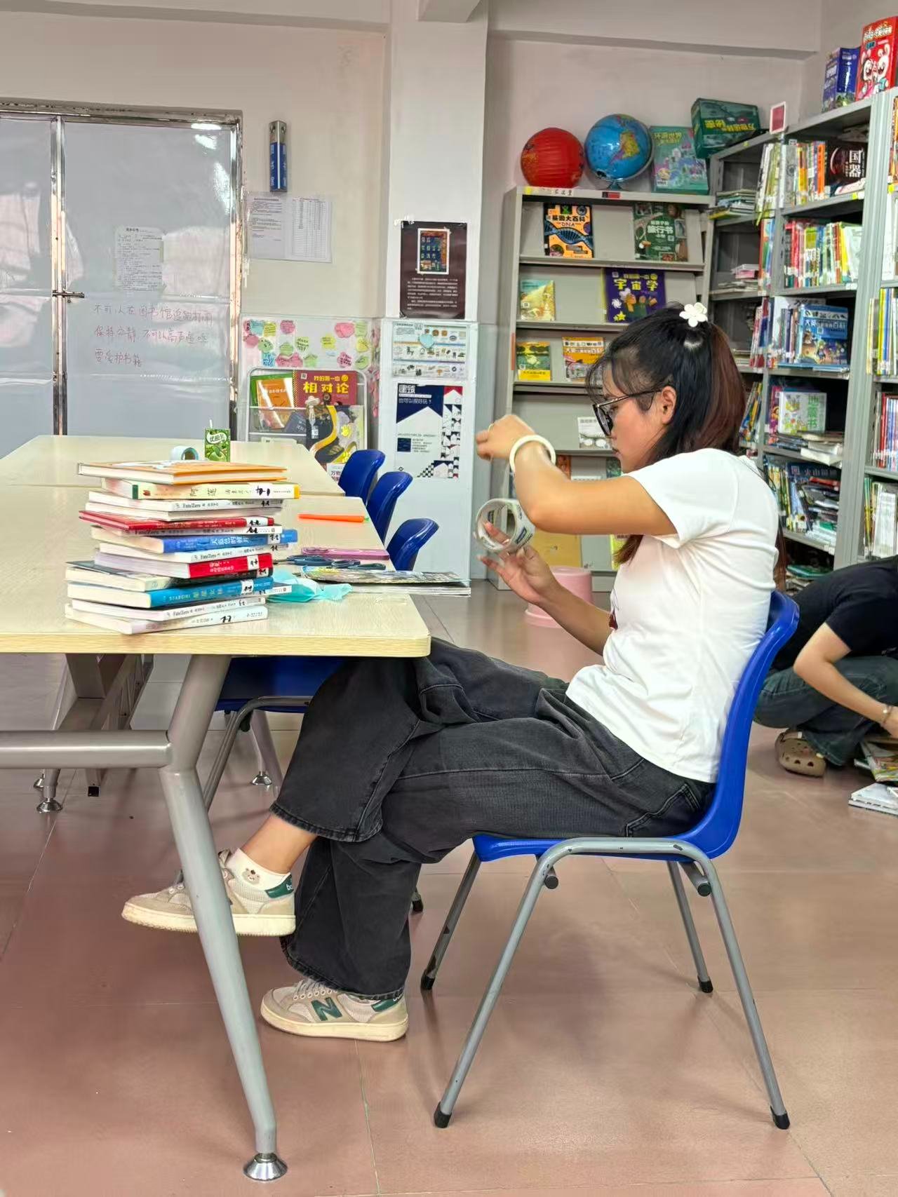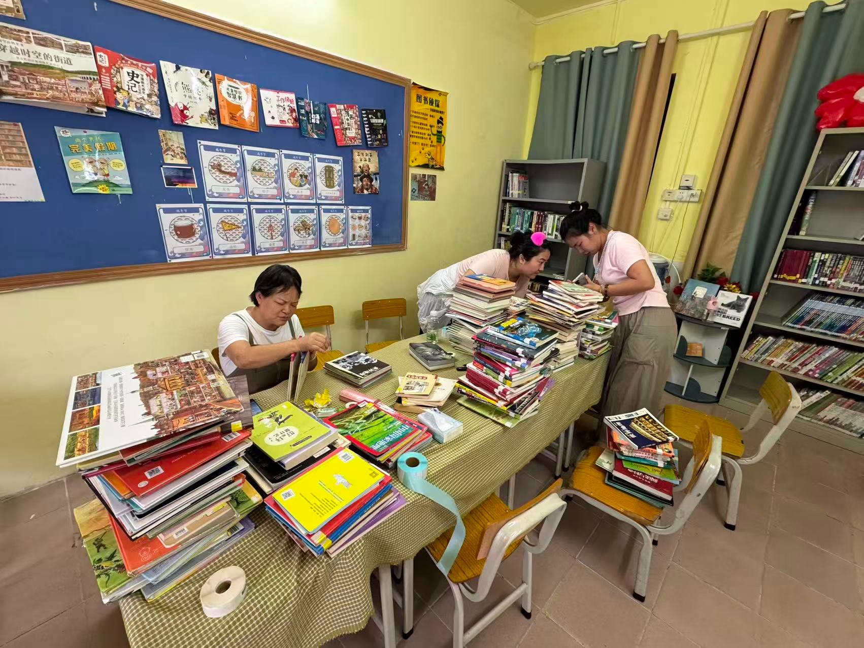 有个家长捐赠了几百本书,我仨审核了一捆,大批量捐书只有留给下次值班的伙伴们啦!