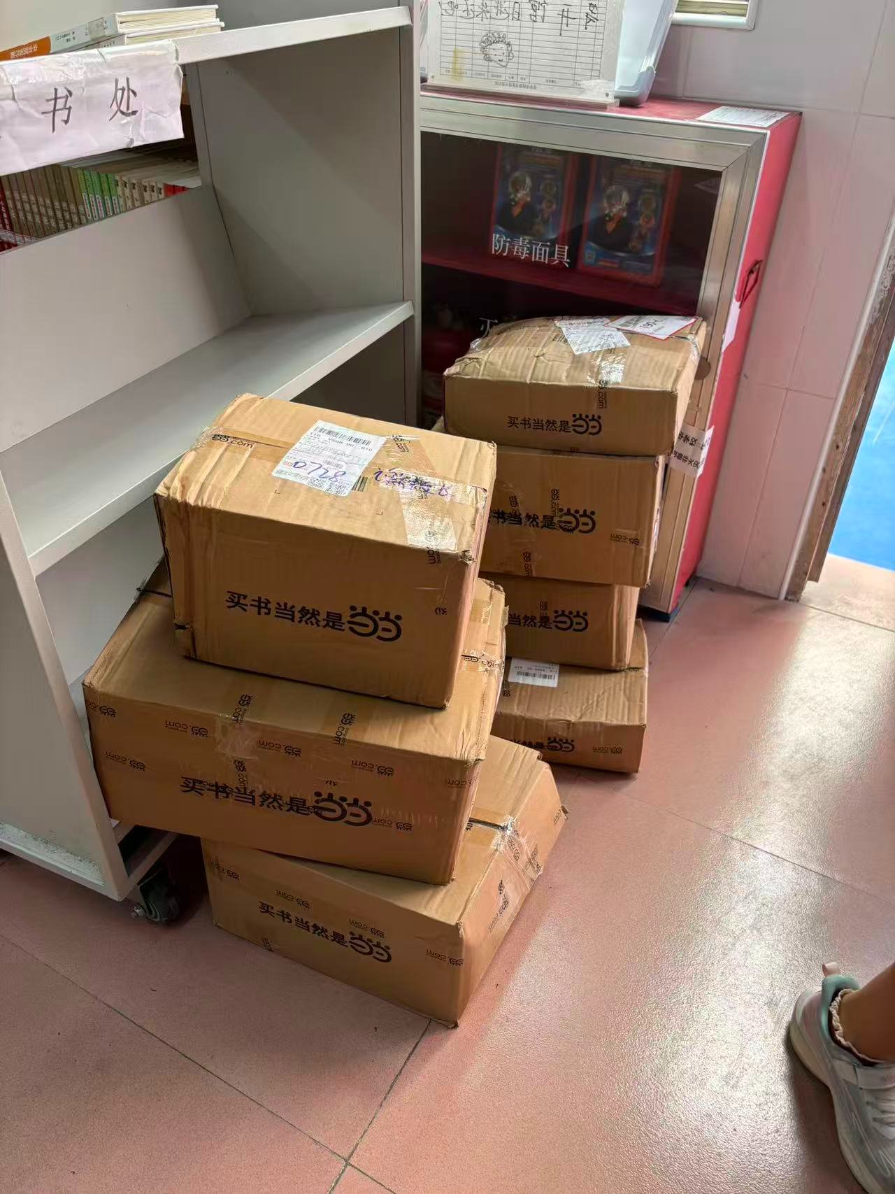 学校送来家长捐赠的书,大概有250本,我们筛选了42本,剔掉6本,上架录入新书36本。捐赠的书放在空调边上的柜子里,剔掉的书也有标记。