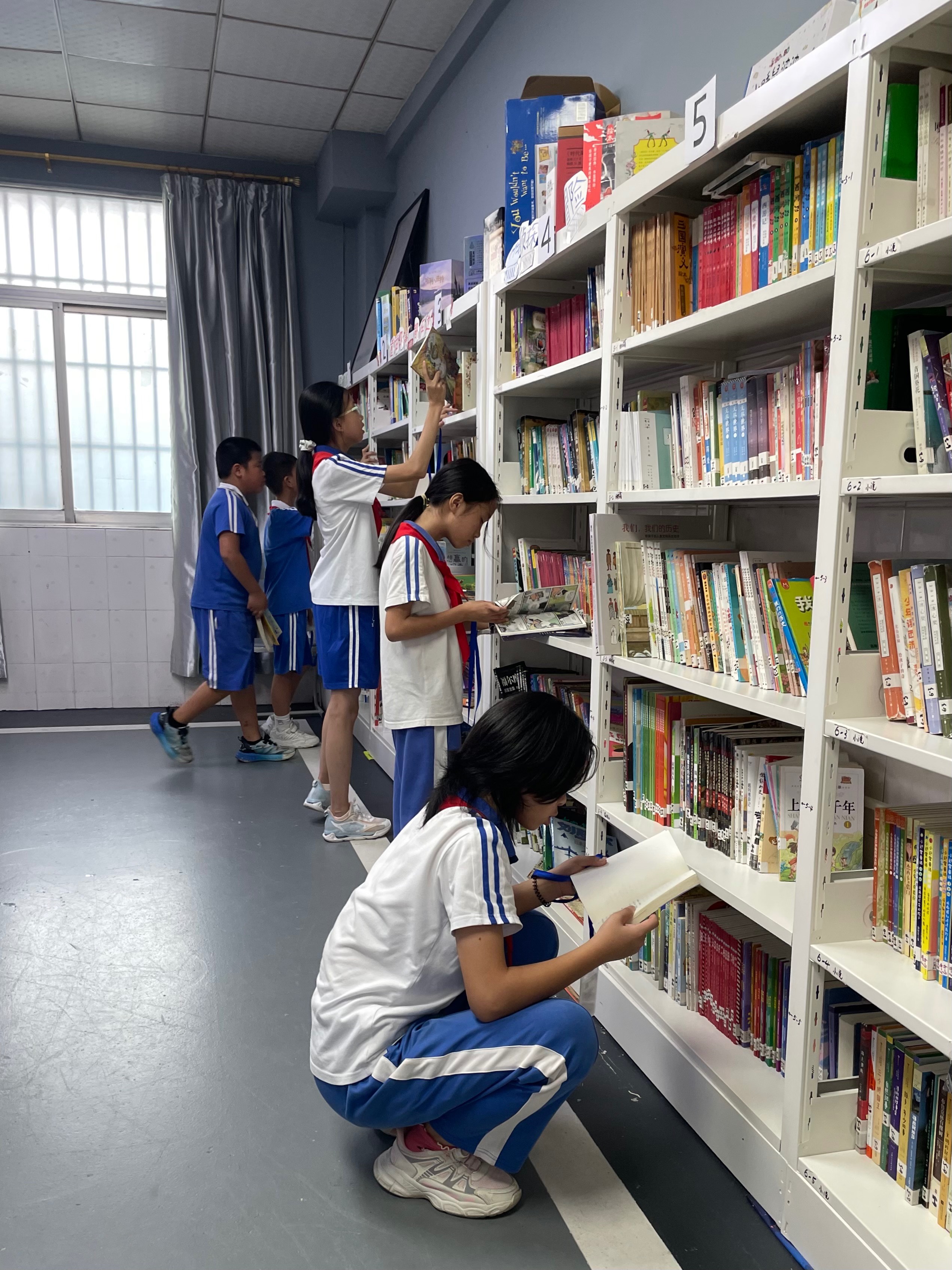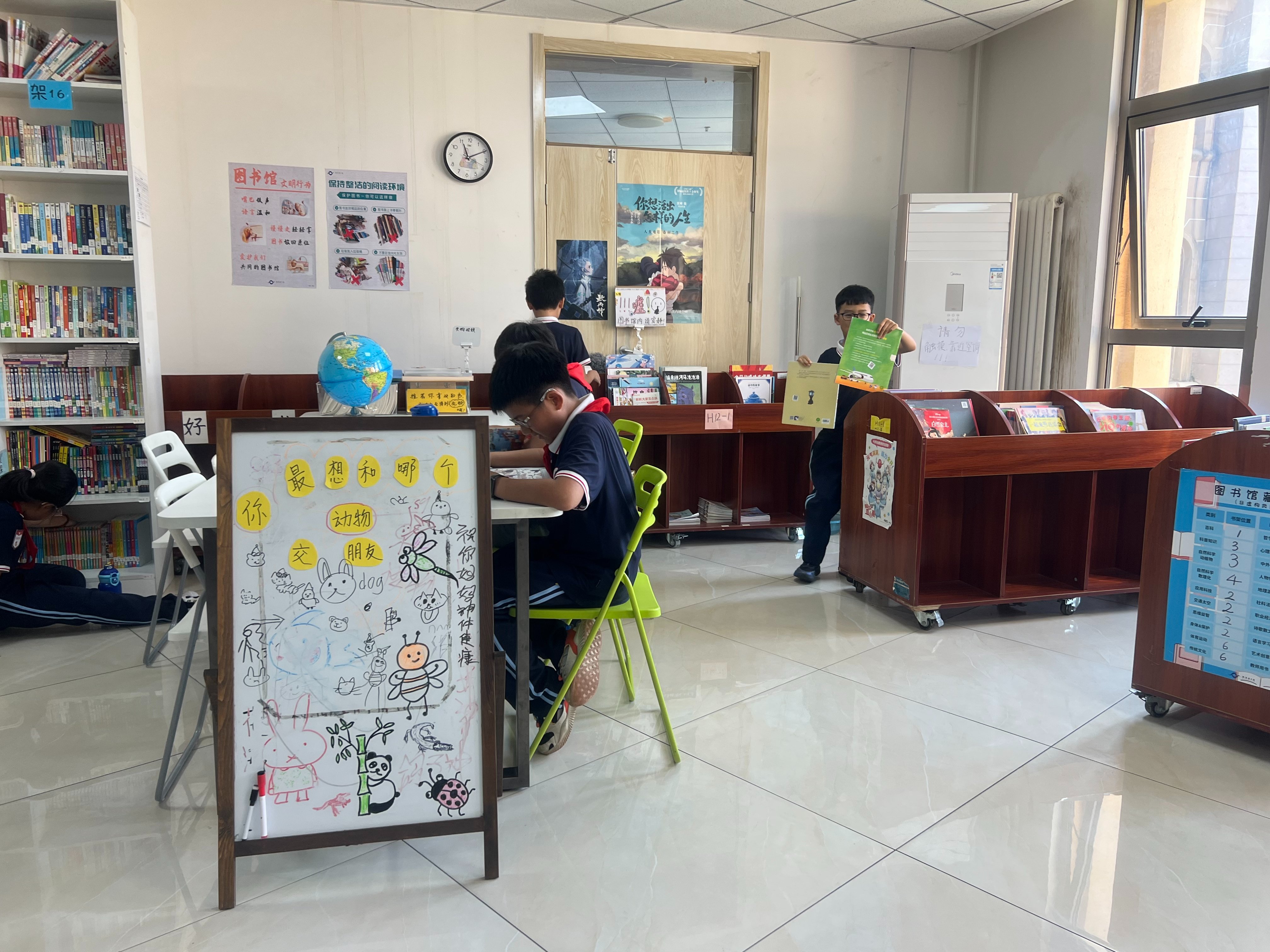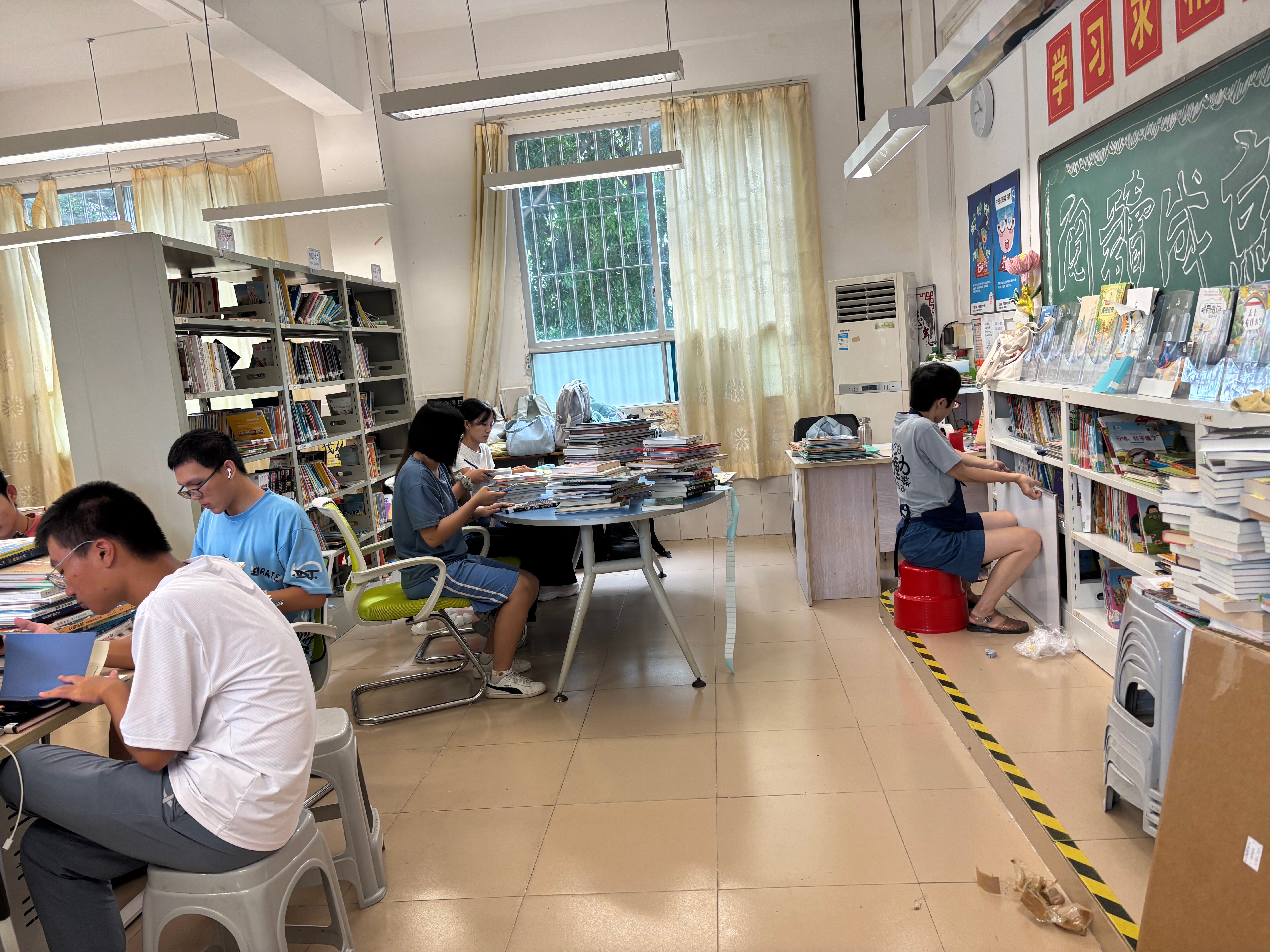 这学期又涌现了几个新的借书积极分子,下课铃声刚落下,他们就能出现在我眼前。把借书区调整到空调旁边之后,再也没有扎堆吹空调的情况出现了。