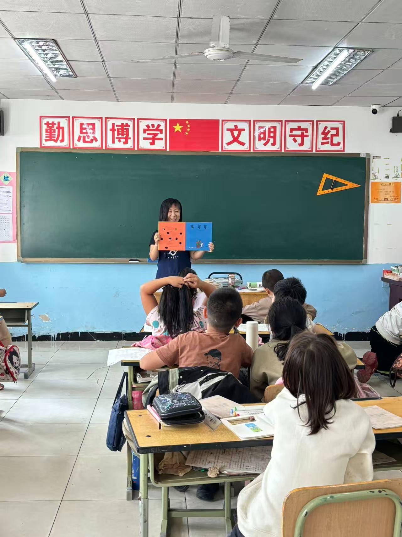 下午给二年级(1)班上绘本课,孩子们积极踊跃互动,配合度很高。讲了4个绘本故事。