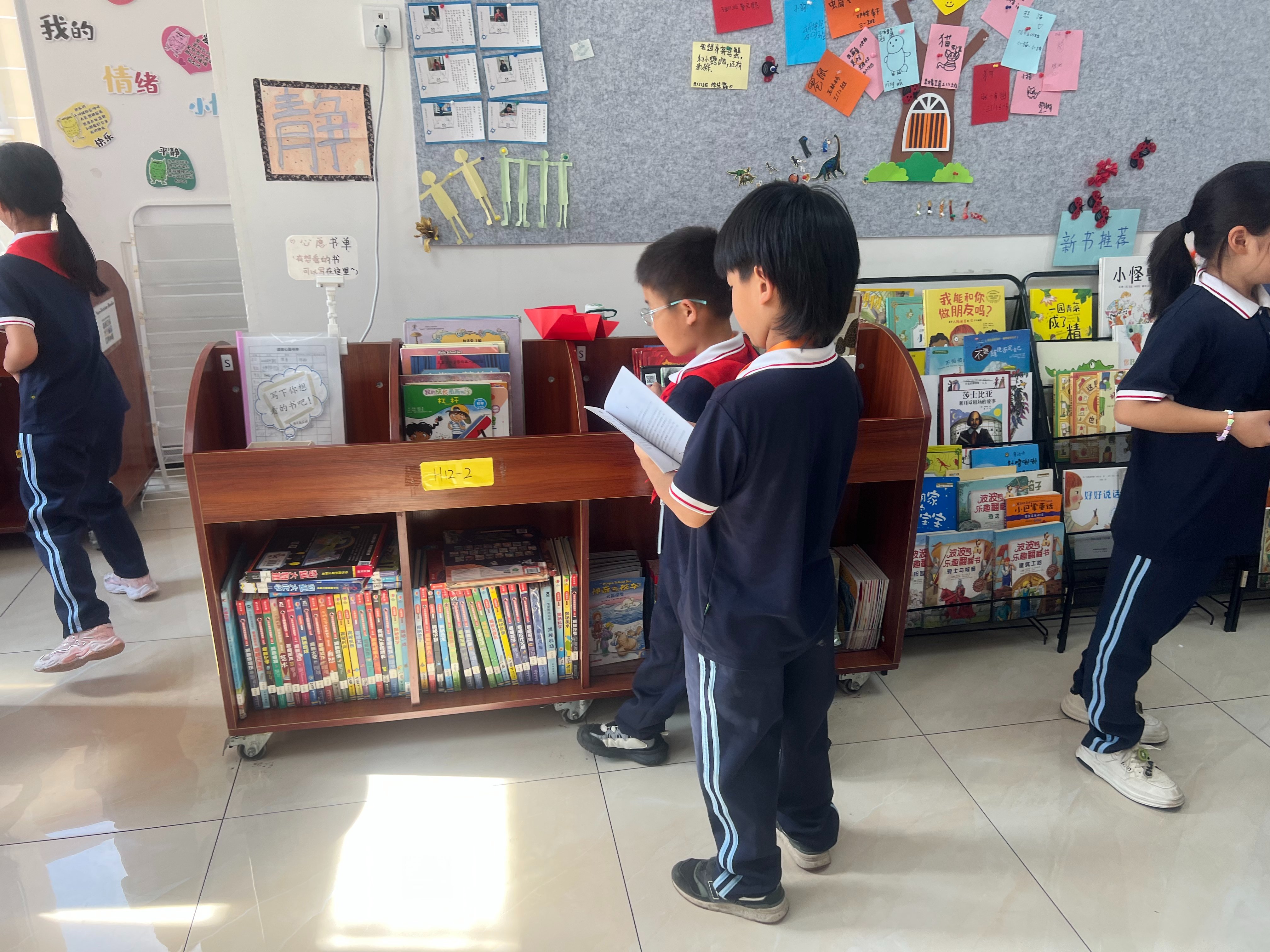 一个特别动人的瞬间是,我给其他孩子找书,本来想找交通主题的,但有些书借出去美有回: