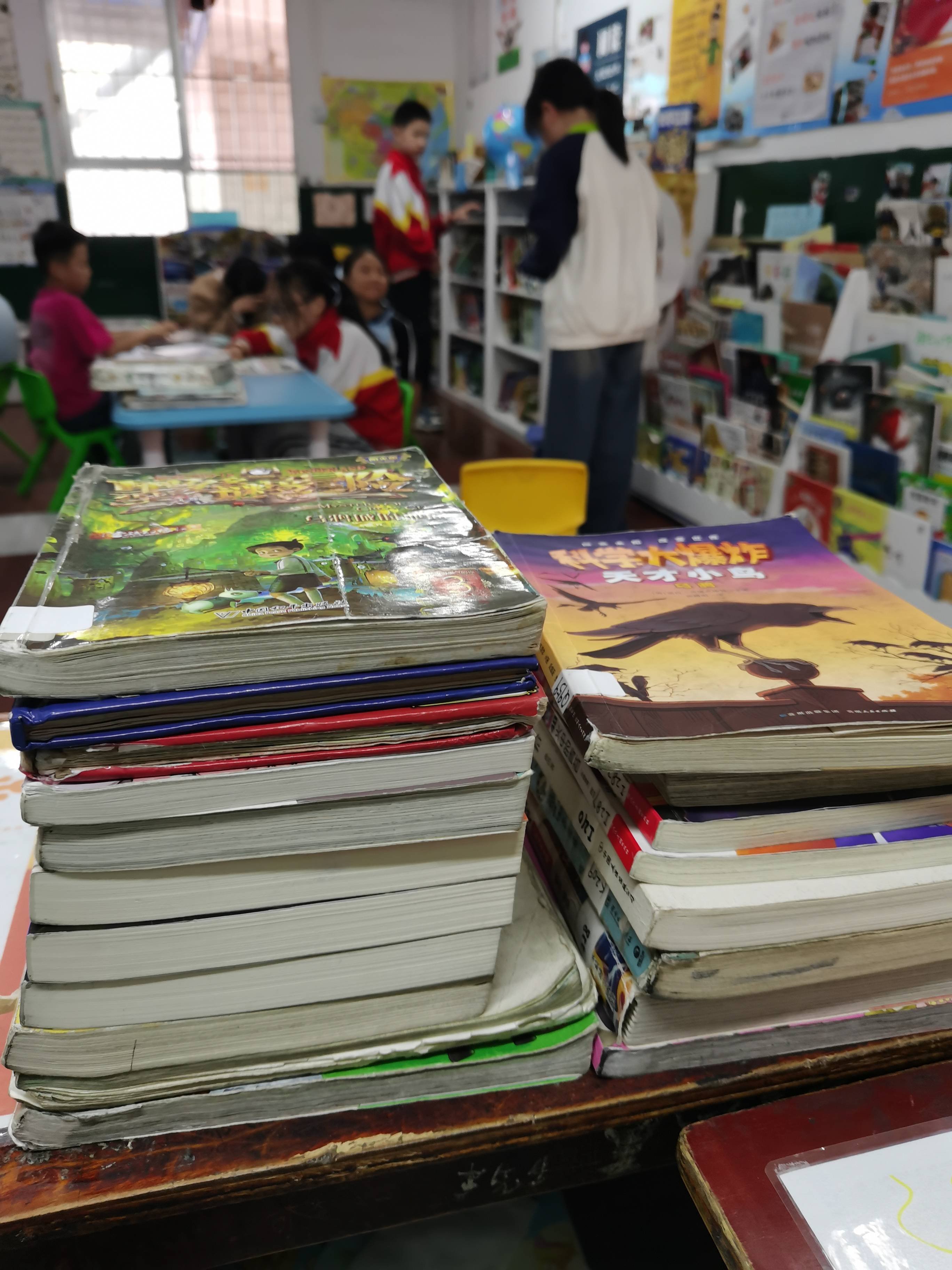 有位四年级的男生,每周五都会来给志愿者老师讲有关战争的话题,而后,这里就会慢慢聚集一班人,有另一波讲小说的,还有听他们说的,这一场景很显然成为我们图书馆的一大亮点!