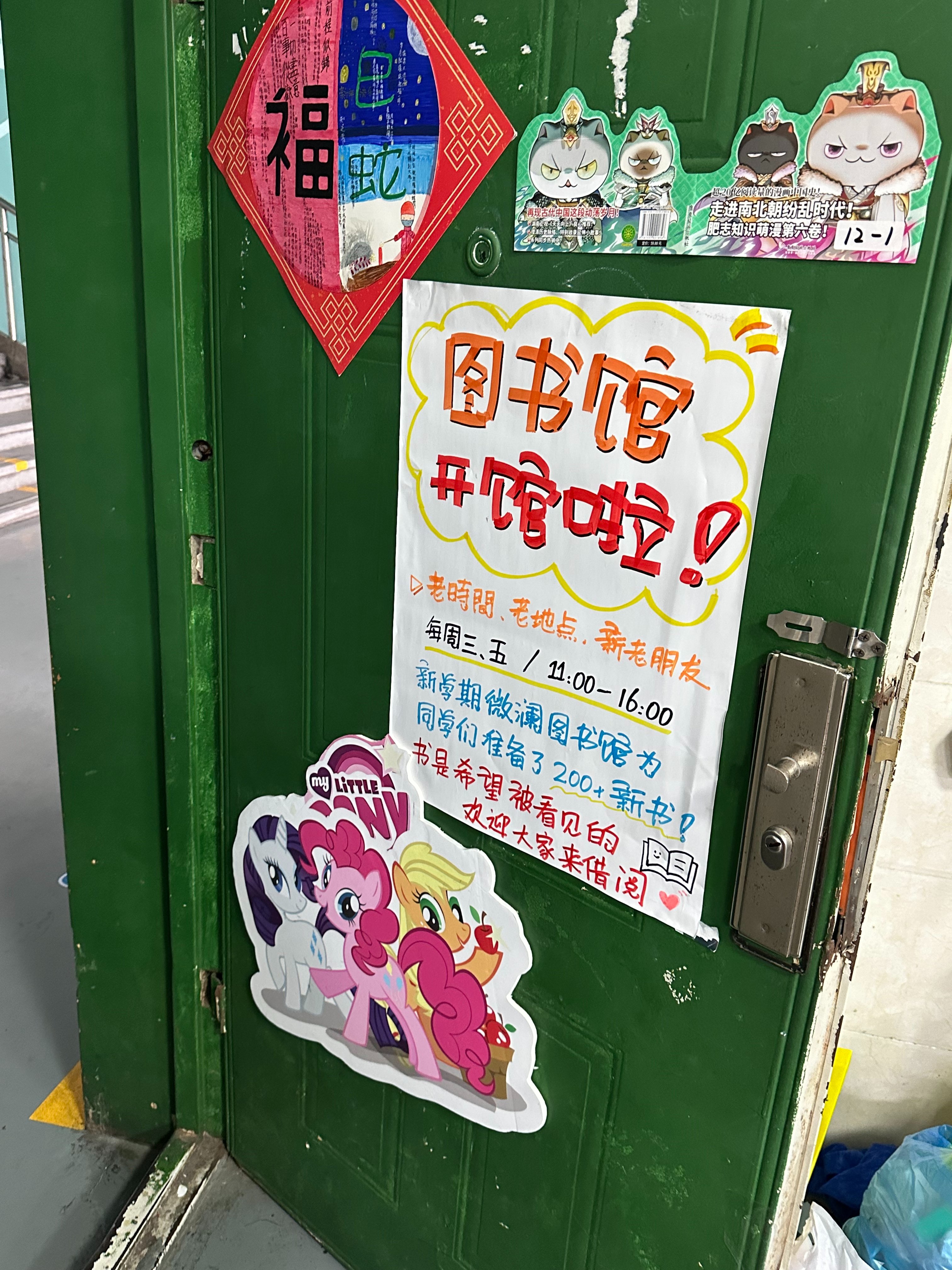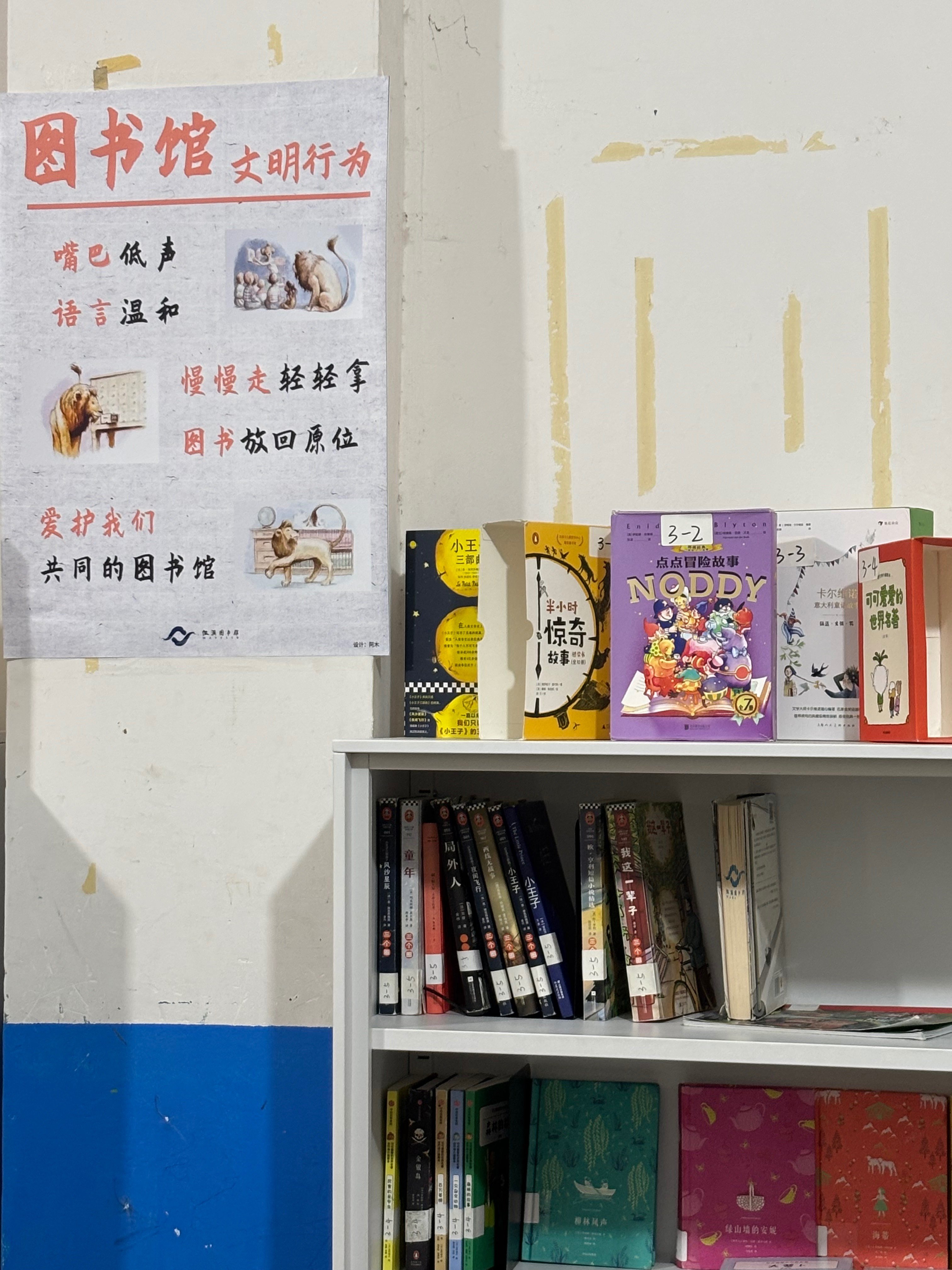 给馆里贴了新的海报和物料,然后开展日常的借还服务。又遇到一年级的老师来馆里借书,还说要带一些给她的女儿看,感觉是很支持我们工作的老师。