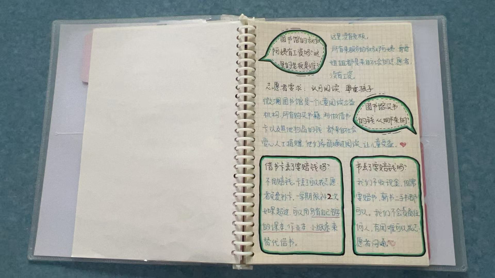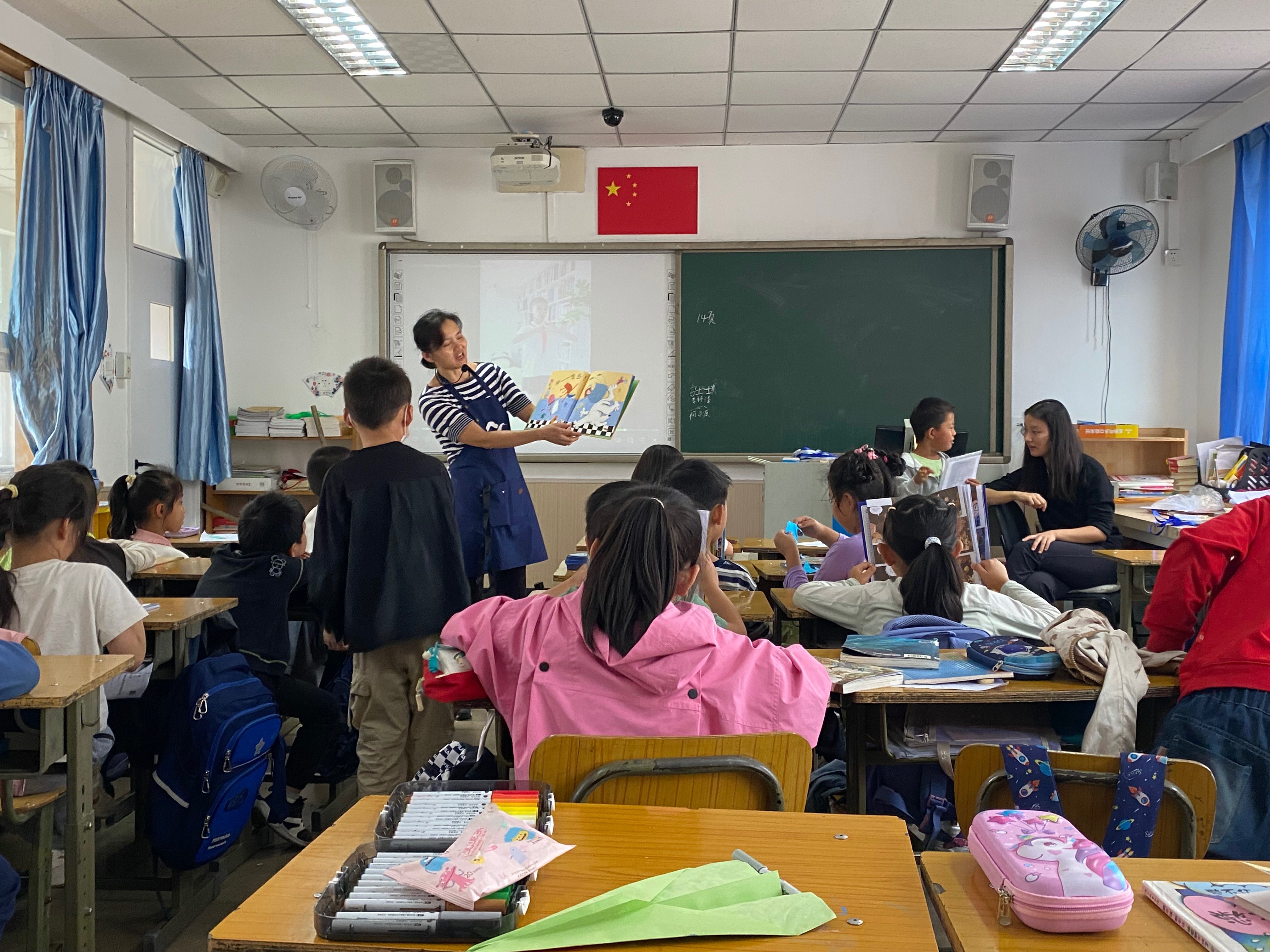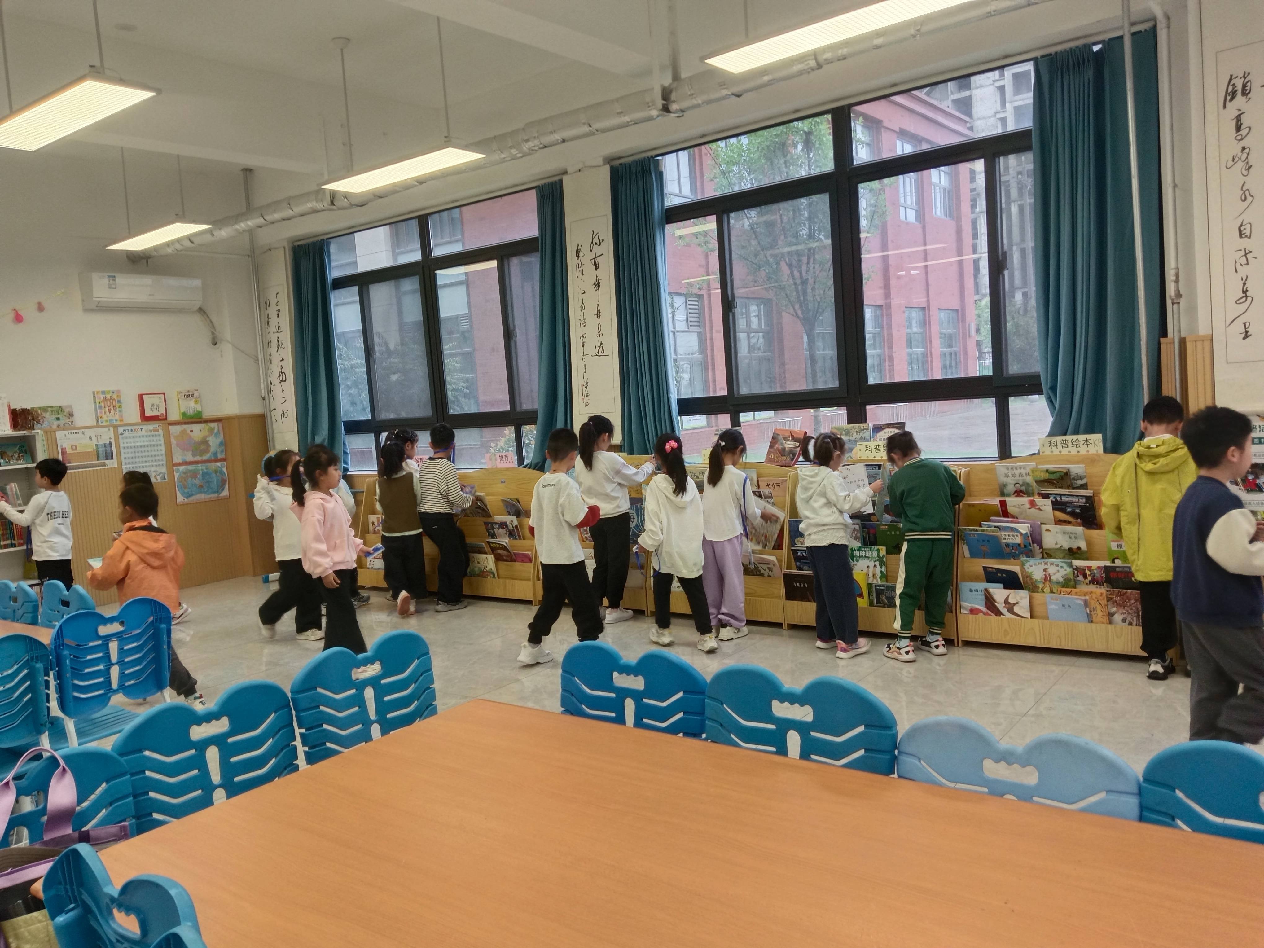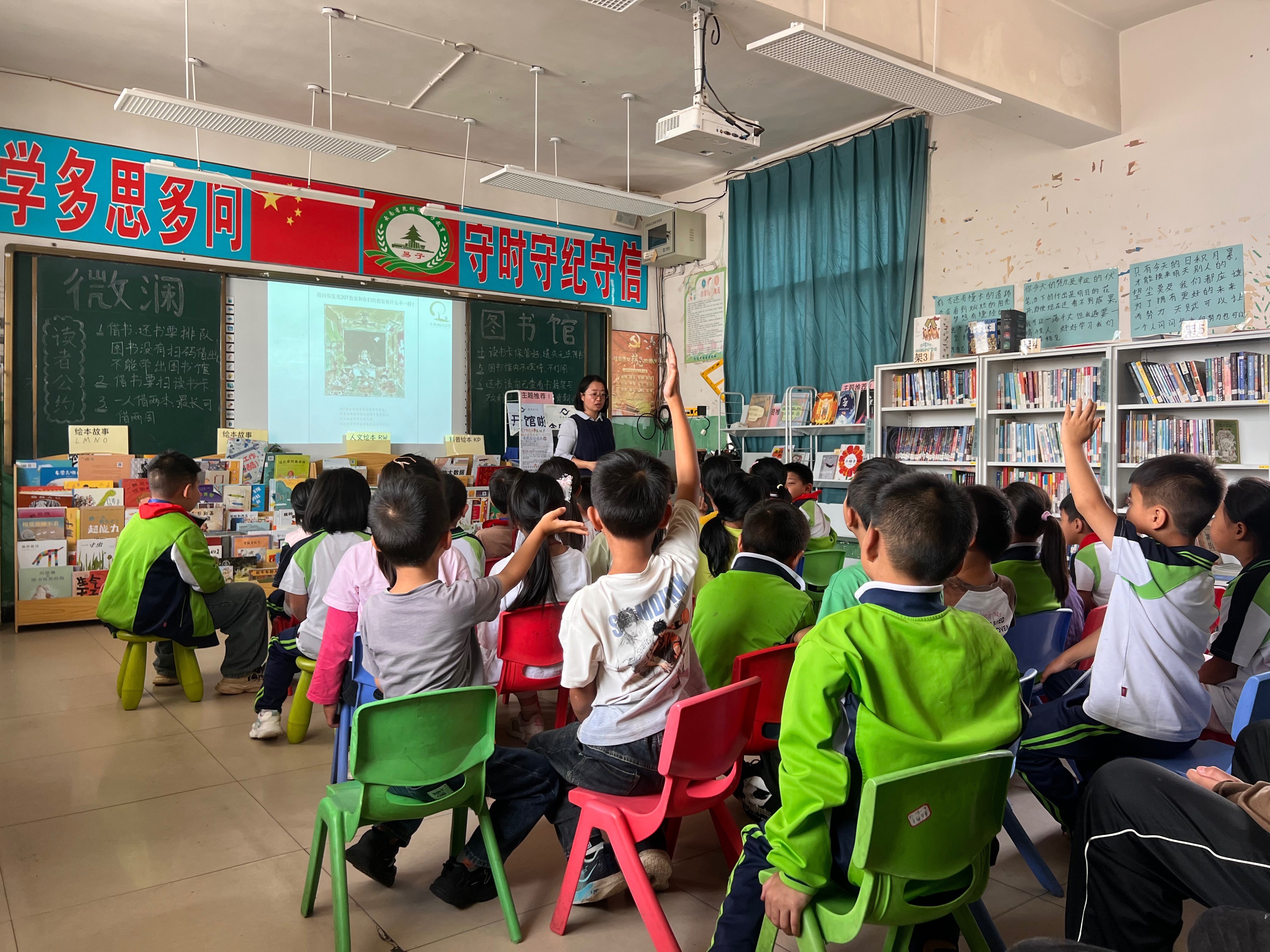 随后又回到馆里日常还书借书。 13:30我们一起去了二年级班里听项老师给孩子们讲绘本。