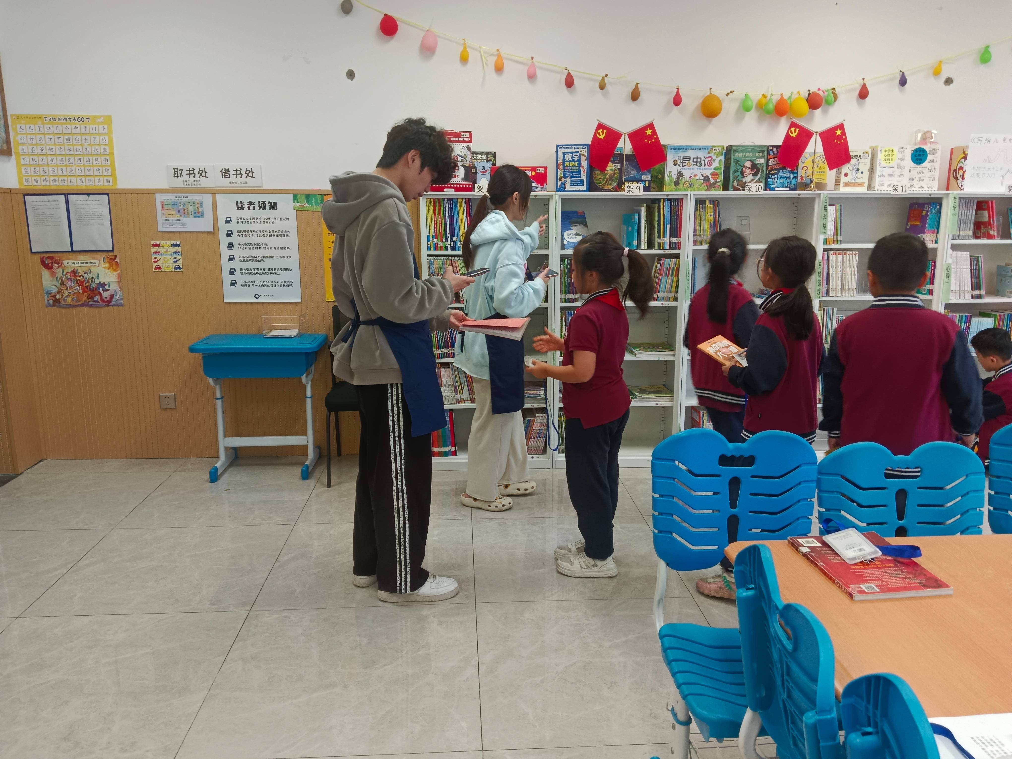 小读者安静有序的借还书本,热情洋溢。作为志愿者我们很开心能服务小读者们。