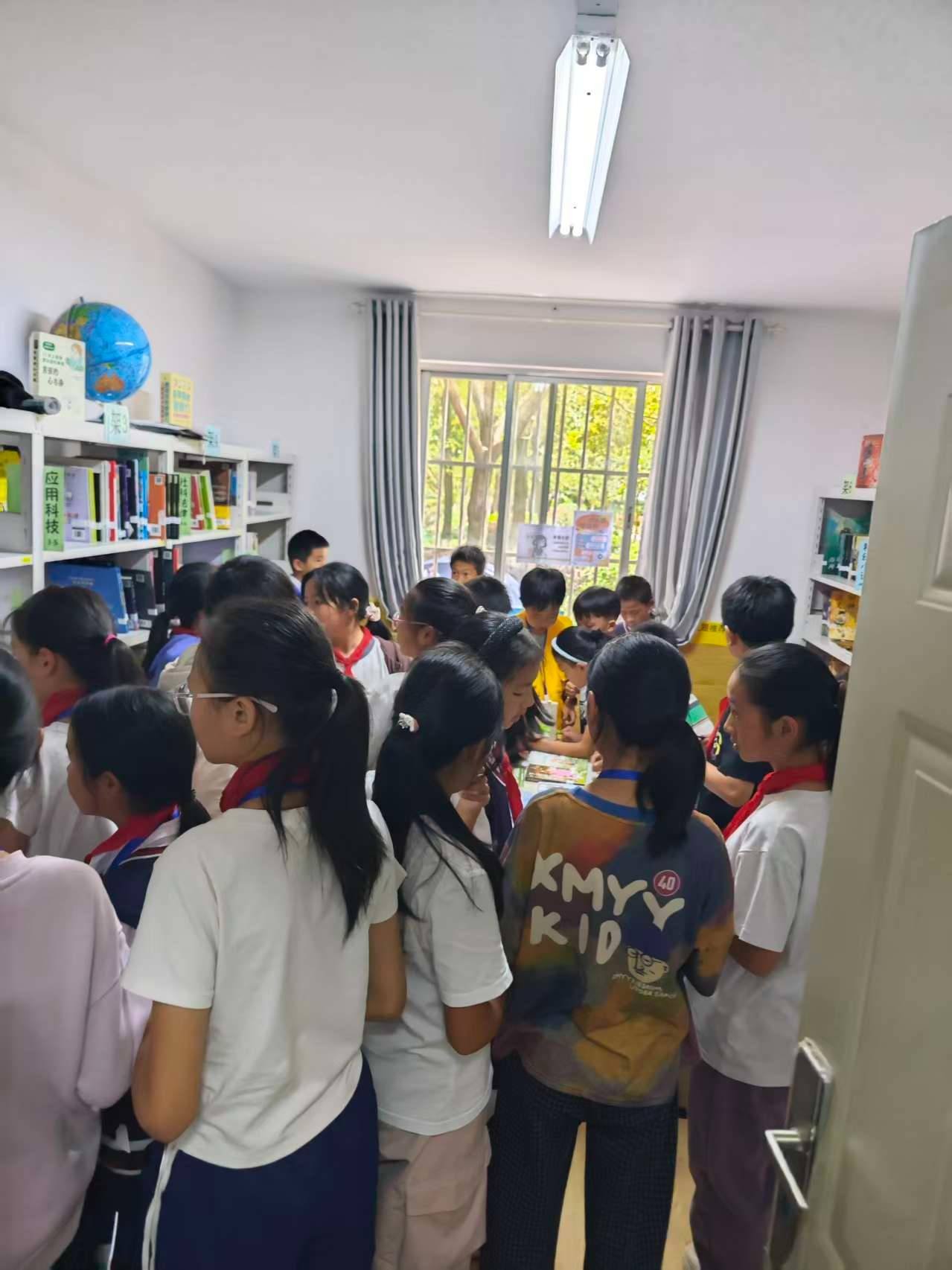 —年级的小朋友太热情了,跑过来抢着给翻“开馆啦!〞的牌子。上课铃响了孩子们没听见,不知是铃声小还是孩子们分贝太高(我们也没听见)。