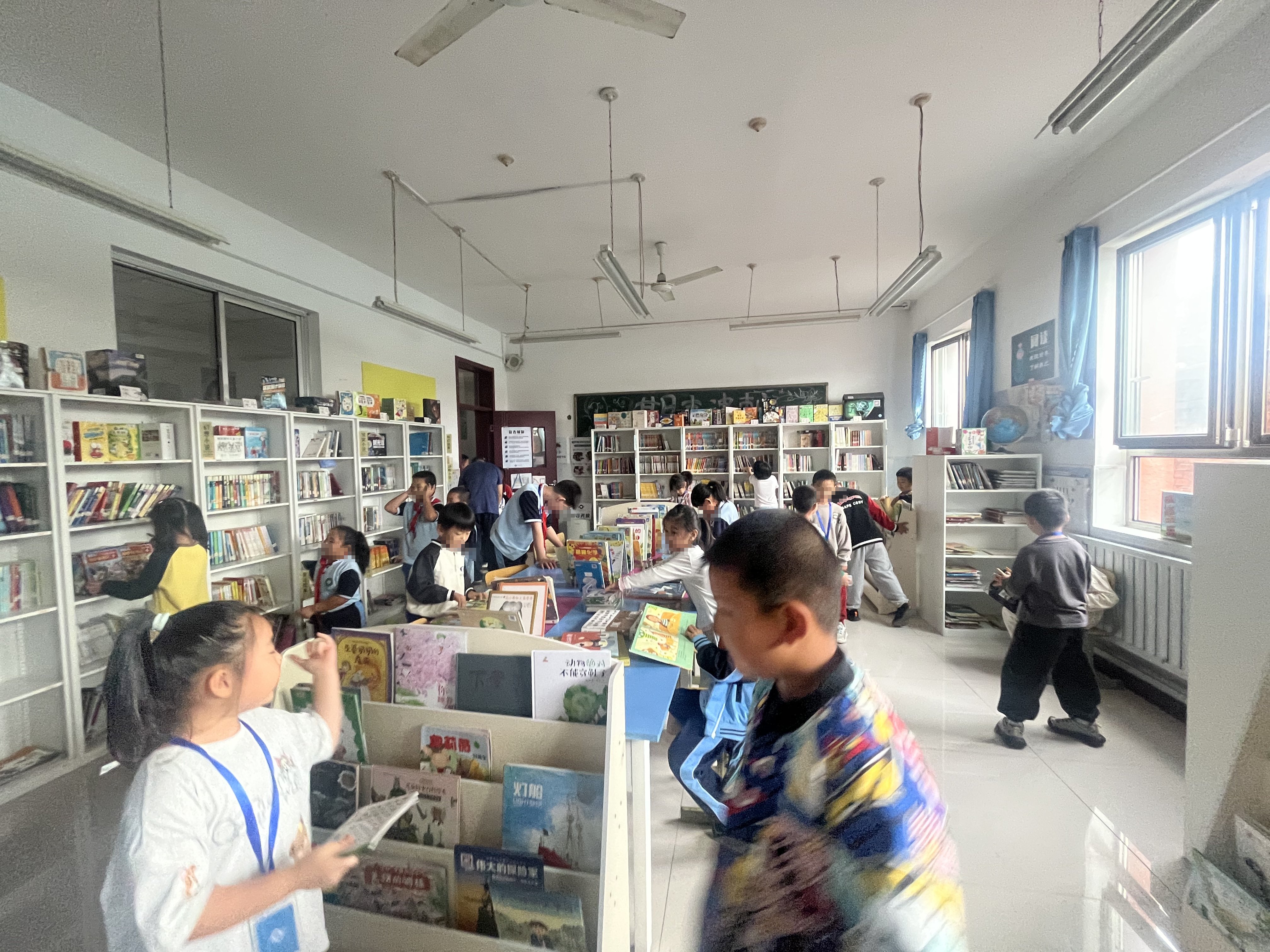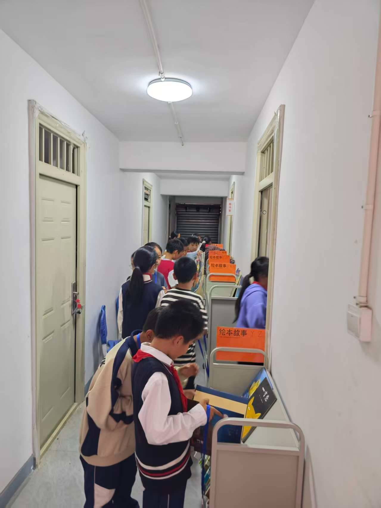 图书馆很小,我们用移动书架把走廊也利用起来,今天看很有必要,高峰时不至于站不下。刚开始孩子们来的少,两个班只有十几个人,我问孩子其他同学怎么不来,有孩子说以为是学校原来的图书馆,所以不感兴趣,我情绪有些低落,原以为就这样闭馆了,没想到,快午休结束,同学们大量涌入,图书馆和走廊相间瞬间塞满,熟悉的场景回来了。