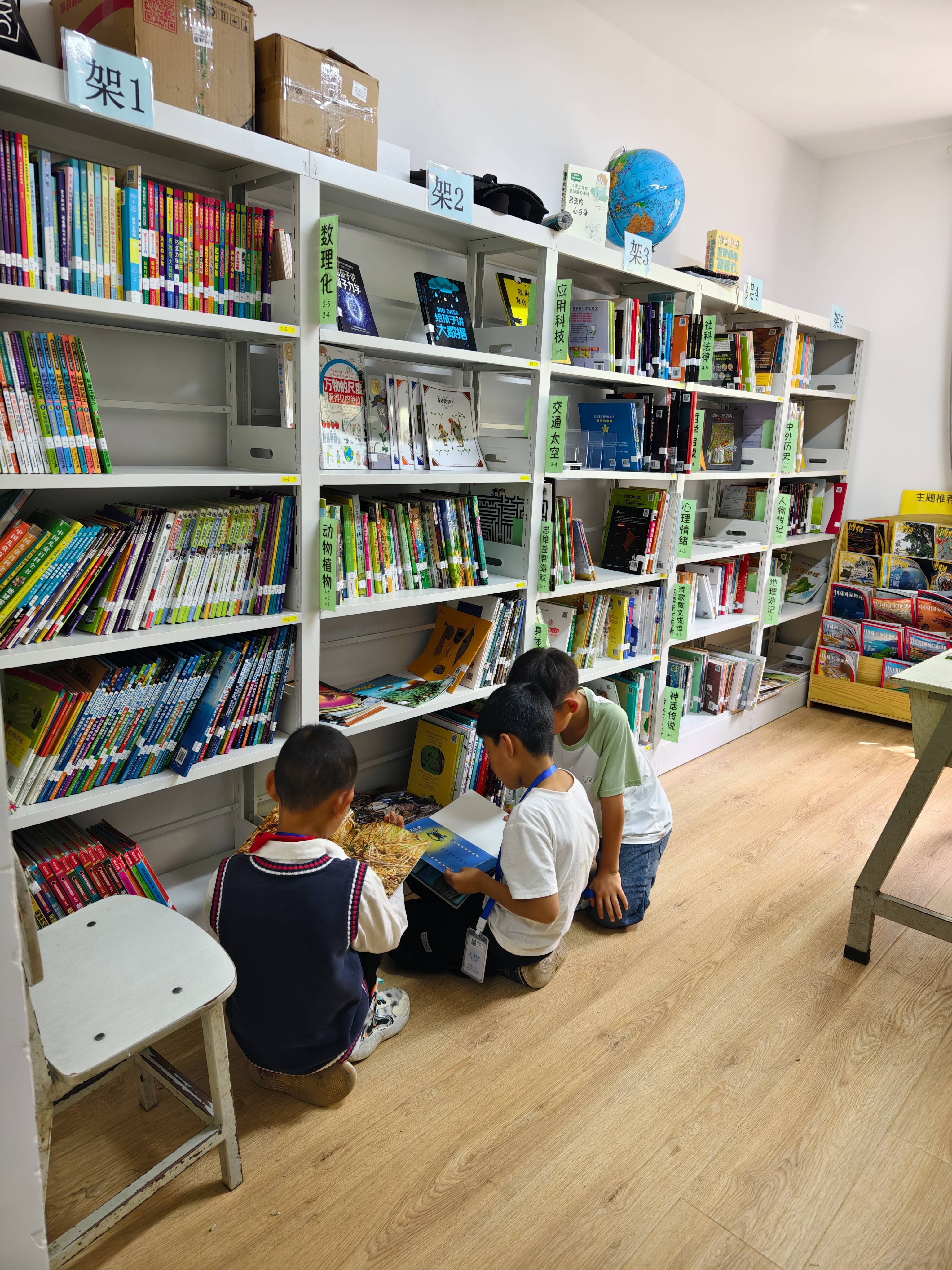 新昆1终于开馆了,一个星期开三天,每天服务一个年级(四、五、六年级),这三个年级一共有四百多人,这是我们的极限了,低年级打算用流动书箱的方式送书进班。
