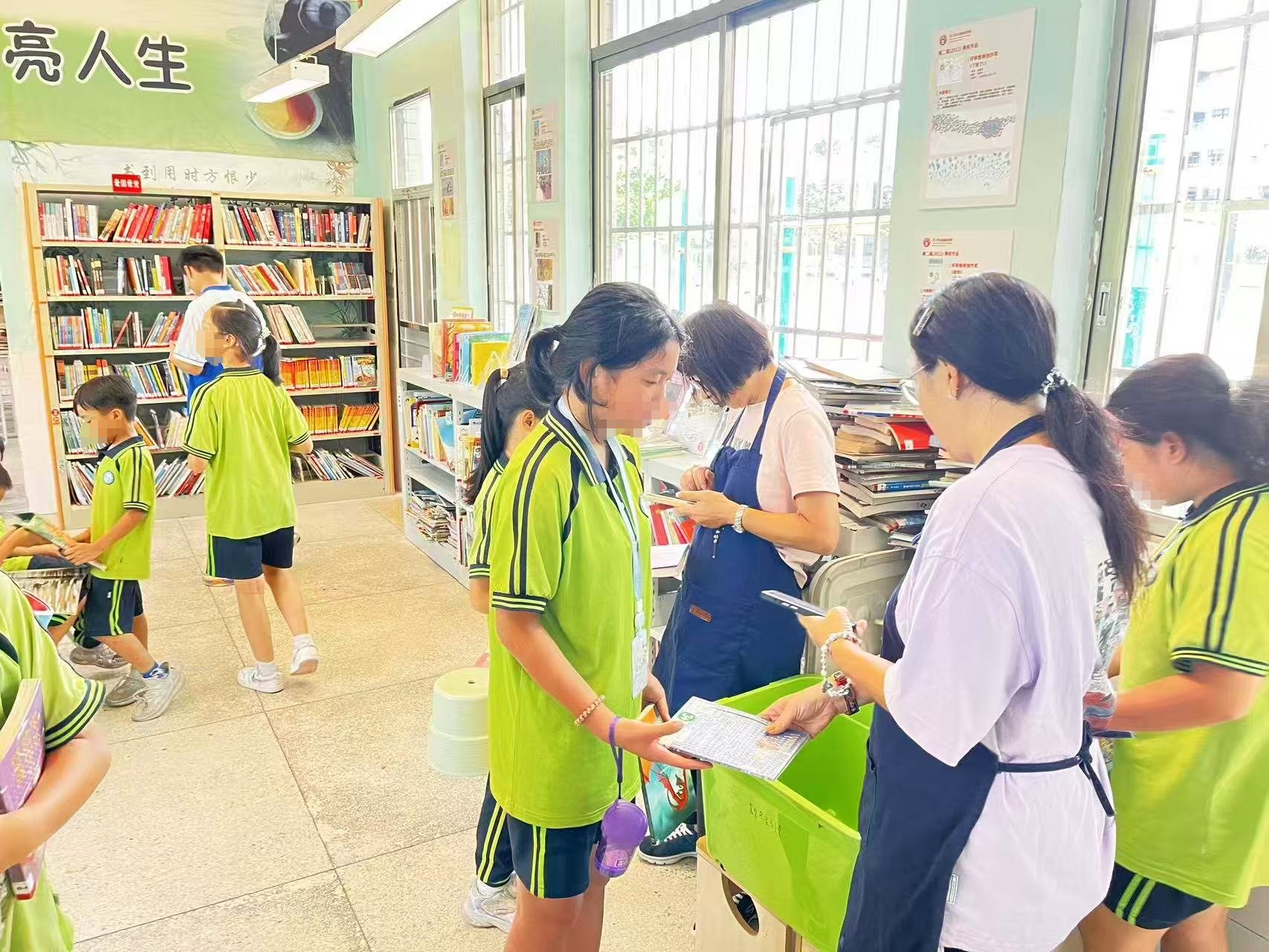 中午借阅时,孩子们热情满满,不过也因为周末借书量大,有阵子忙得像个“旋转的小陀螺”,还好娃们都很守规矩,让这“陀螺”转得也算顺畅。
