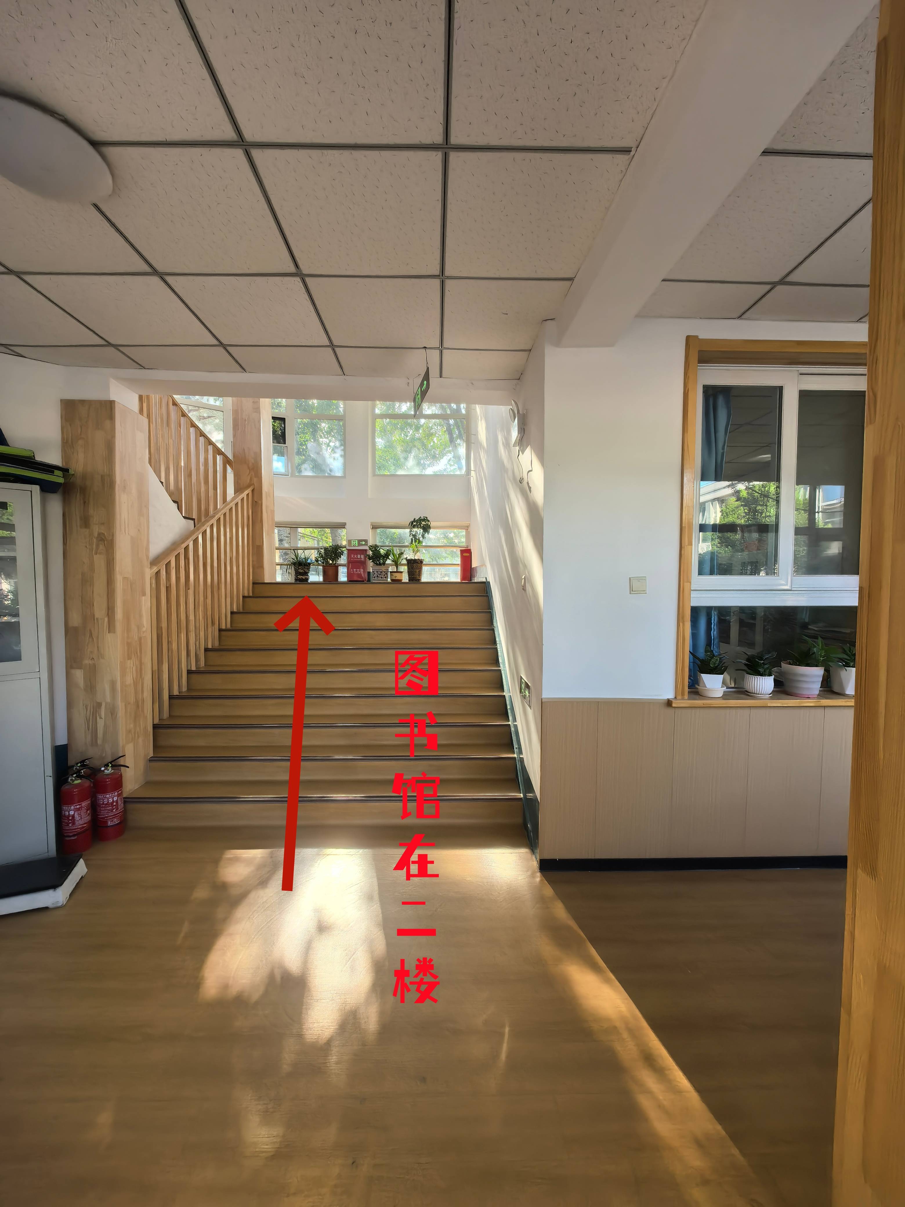 二、图书馆位置:位于学校最里侧建筑的二楼,由学校大门进入后第一个路口右转,直行穿过操场经过旋转楼梯到达二楼,左侧第1个房间就是图书馆;