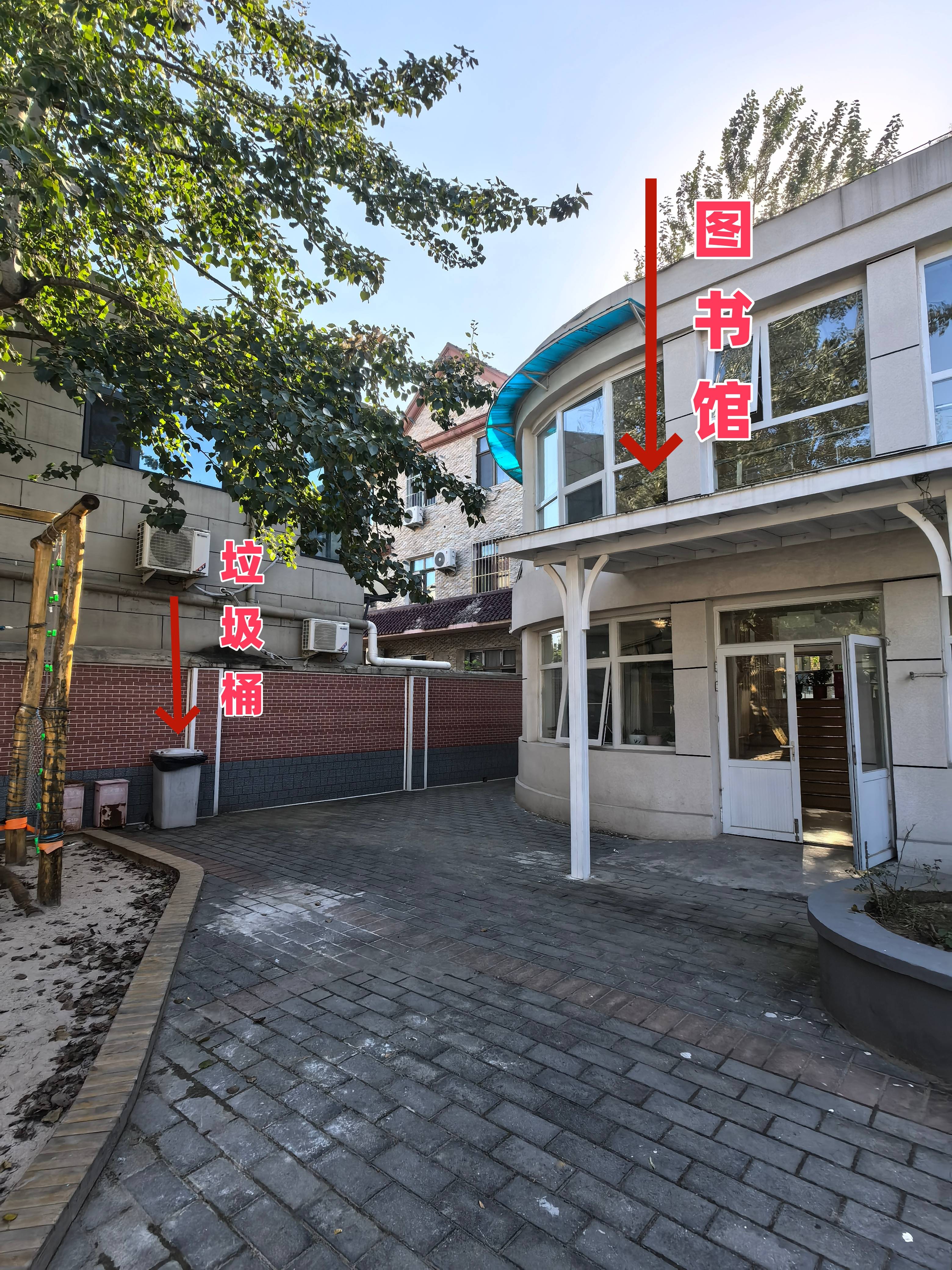 学校垃圾桶在图书馆楼门入口处外,闭馆后请将图书馆垃圾扔到此处。