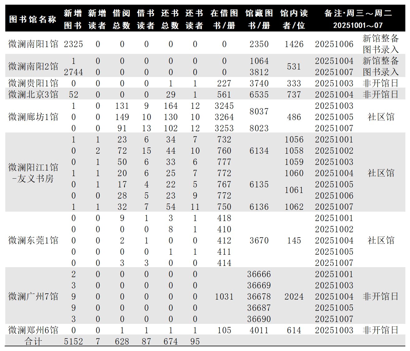 新馆#南阳1、2馆整备,9所图书馆,3所社区日常开放借阅,为87位读者借阅图书628册次,处理归还图674册(95人);各馆购买/受捐/学校馆藏等录入上架图书5152册,各馆录入新读者7位。