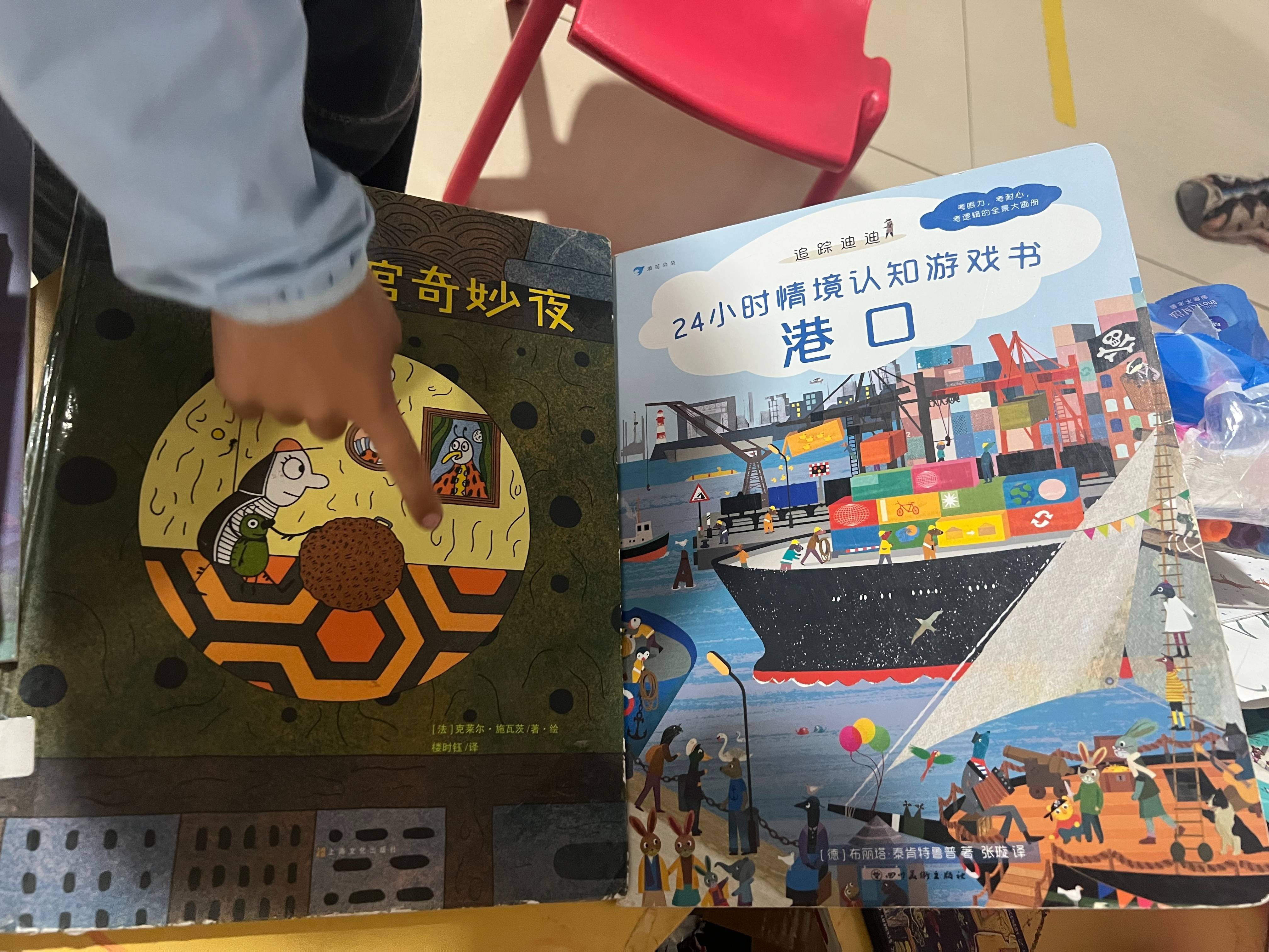 陪mm读了一个海洋主题的绘本(绘本故事+情景+迷宫+找东西),是可以反复看得书。姐姐带了一小会儿,推荐了几本书,倒是都借阅了。lx也借了立体书,拒绝了借阅火车书,只借给他一本,还是嘱咐不要损坏,每次他借这个,最后姐姐因为书损坏一通修理,还很生气,每次归还都嘱咐,阿姨你以后不要借给我弟弟。但小孩儿很多时候确实没有机会学习解决问题的方法,不懂观察变通,一个劲儿撞南墙,就成了暴力,破坏性很大。大都时候,他注意力总是跳走,也因此,其实引导他的机会并不多。