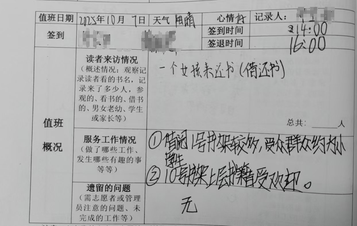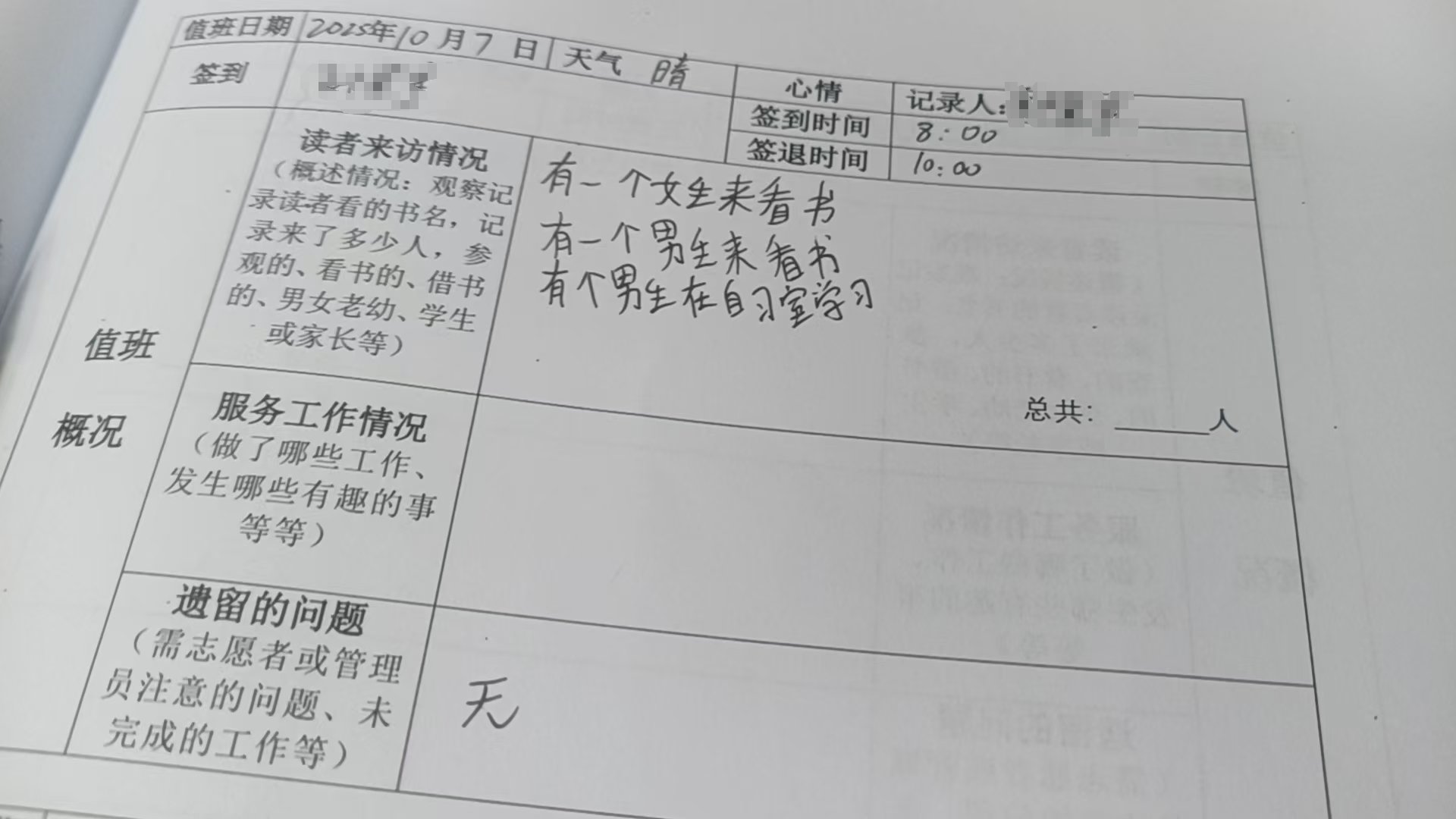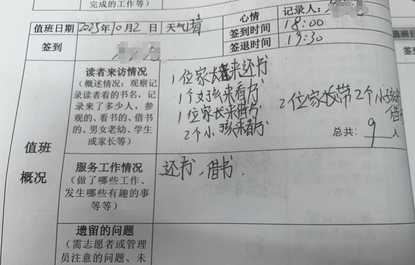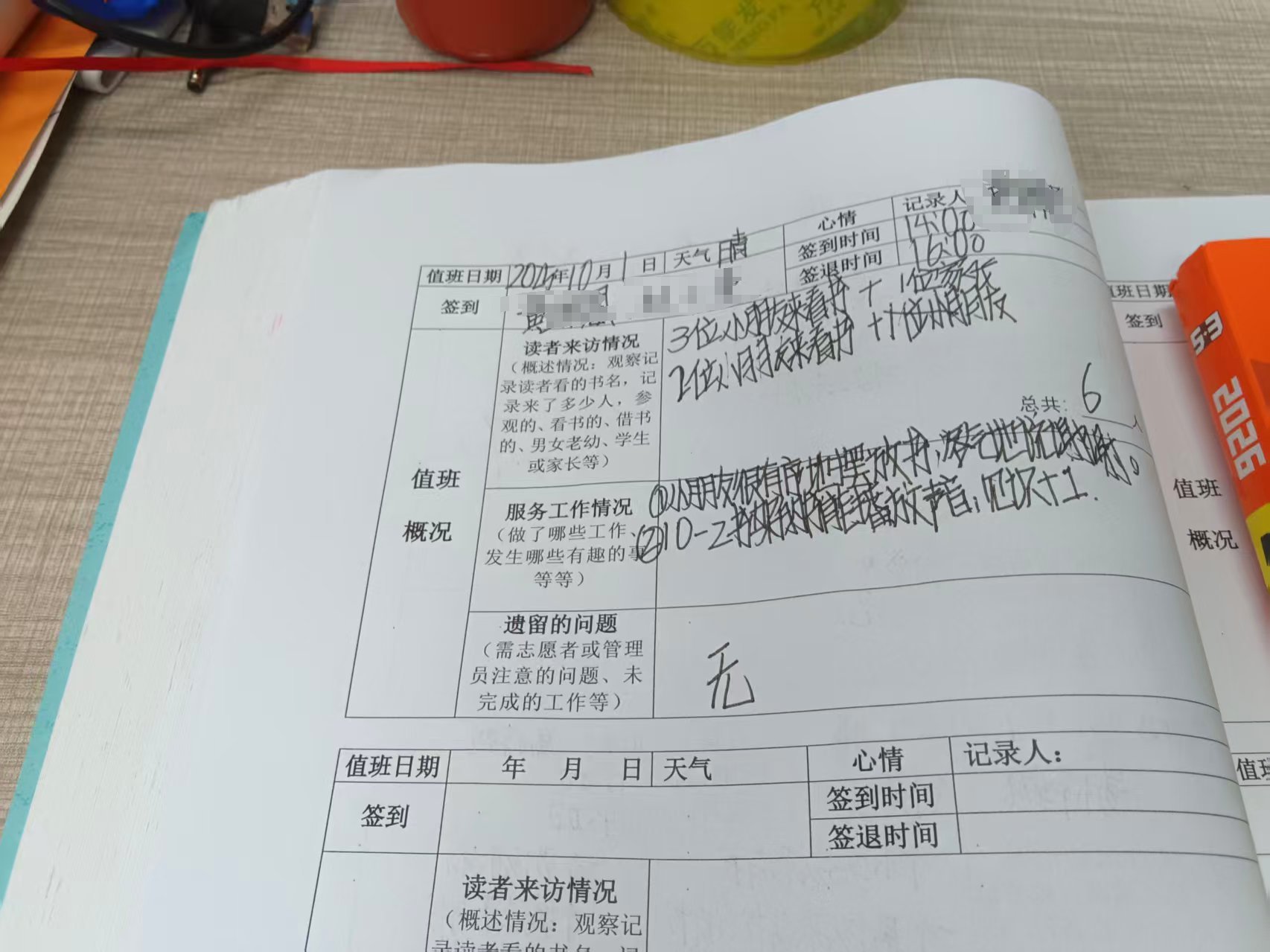 没有往日的热闹,有除外游玩的,也有不少孩子回了老家。来换书的新老读者都有,虽然不忙,也基本没有空余时间。