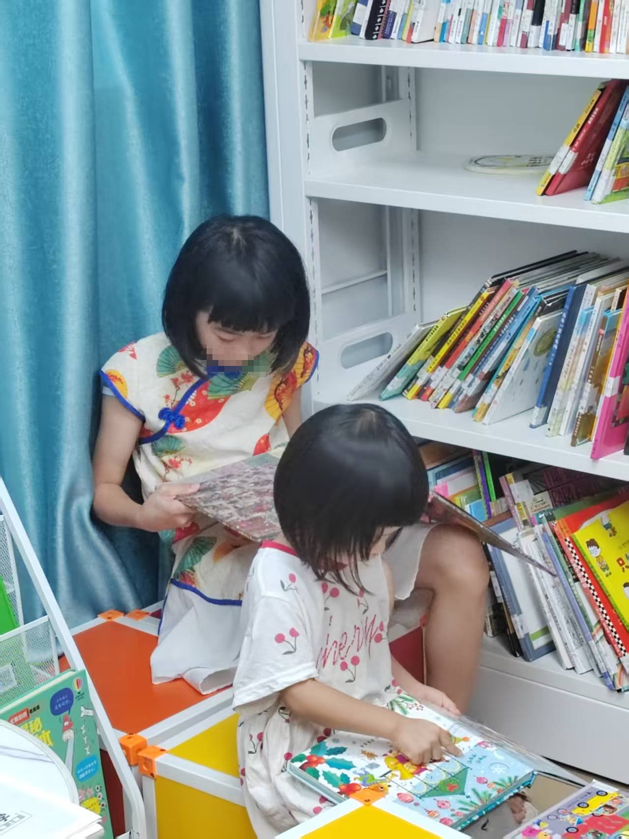 今天特意来借阅的孩子有zjy,ww和妈妈妹妹来换了书,一岁五个月的小朋友,取书,翻书非常熟练,妈妈说,妹妹很爱看。不过每次给姐姐讲述,小家伙着急了,就会抢书看,姐姐倒是阅读少了,不过好在有很好的基础。遇到路过的好朋友正好过来,两个人还一起看书讨论,真好。