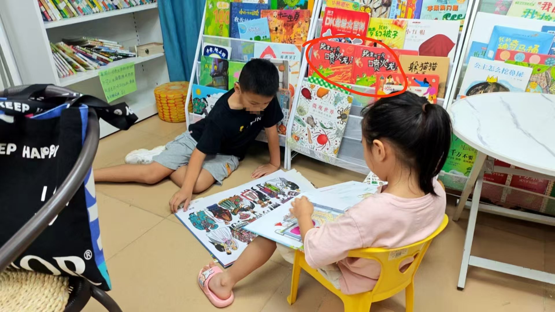 大部分孩子似乎还没有完成作业,yx和妹妹孩子还仔细分享了没有做完的,以至于也没怎么借书。pzx和妈妈们路过来借了书,晚一点和奶奶来一起把看完的归还,两个孩子,看书也是极快的。在市场遇到过妈妈一次,可想而知两个孩子,工作,妈妈应该是忙碌和辛苦的,但能坚持阅读,真好。