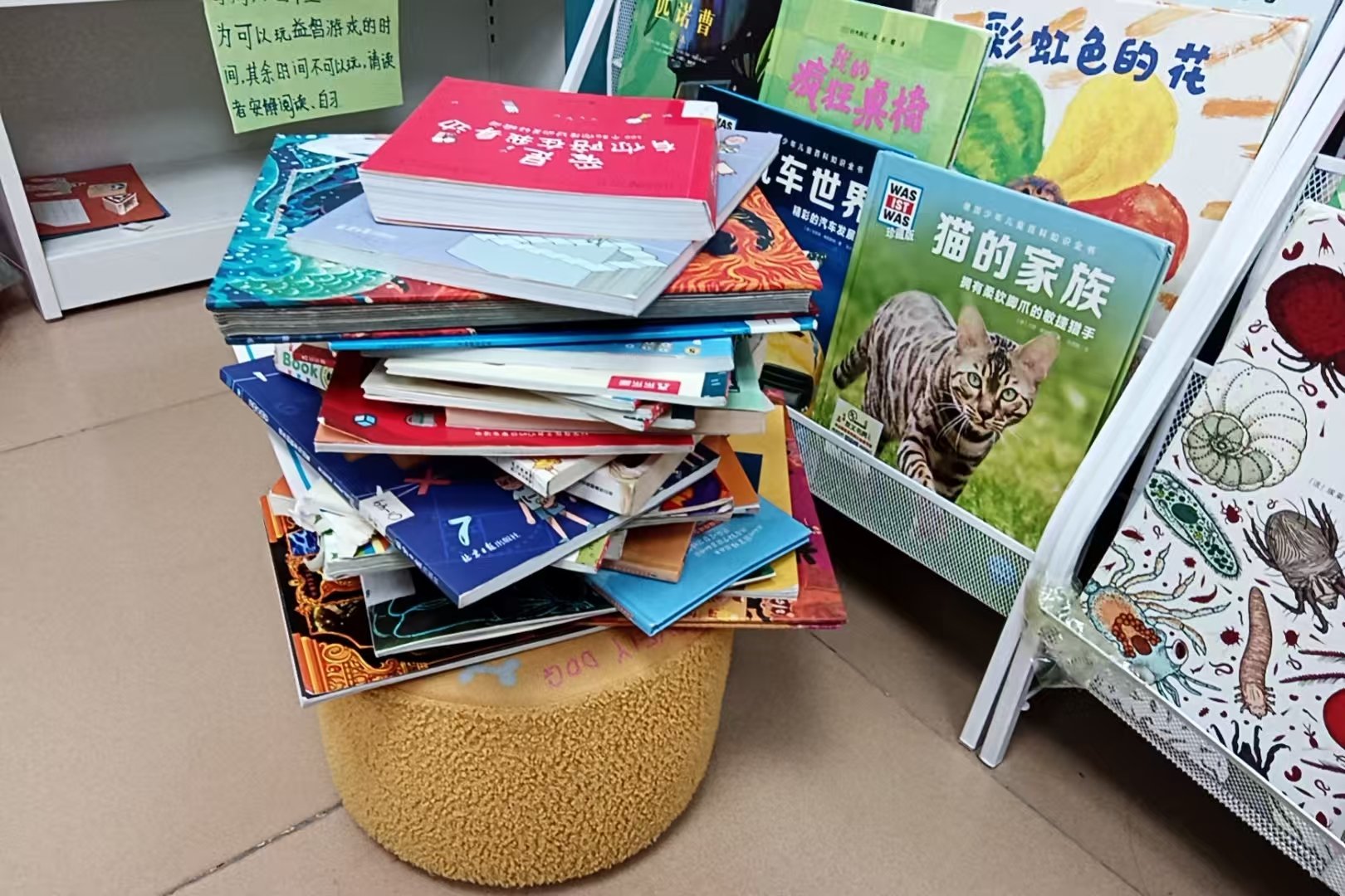 mm姐弟妹都来了,但今天都没怎么看书。kx意料之中借阅的图书丢了配件,姐姐回来时反倒说了我一通,我们家一开始就说过不要借阅给他。但其实并不是不借阅,相对于其他孩子,确实要求他还了上一本再借下一本。慢慢来吧。