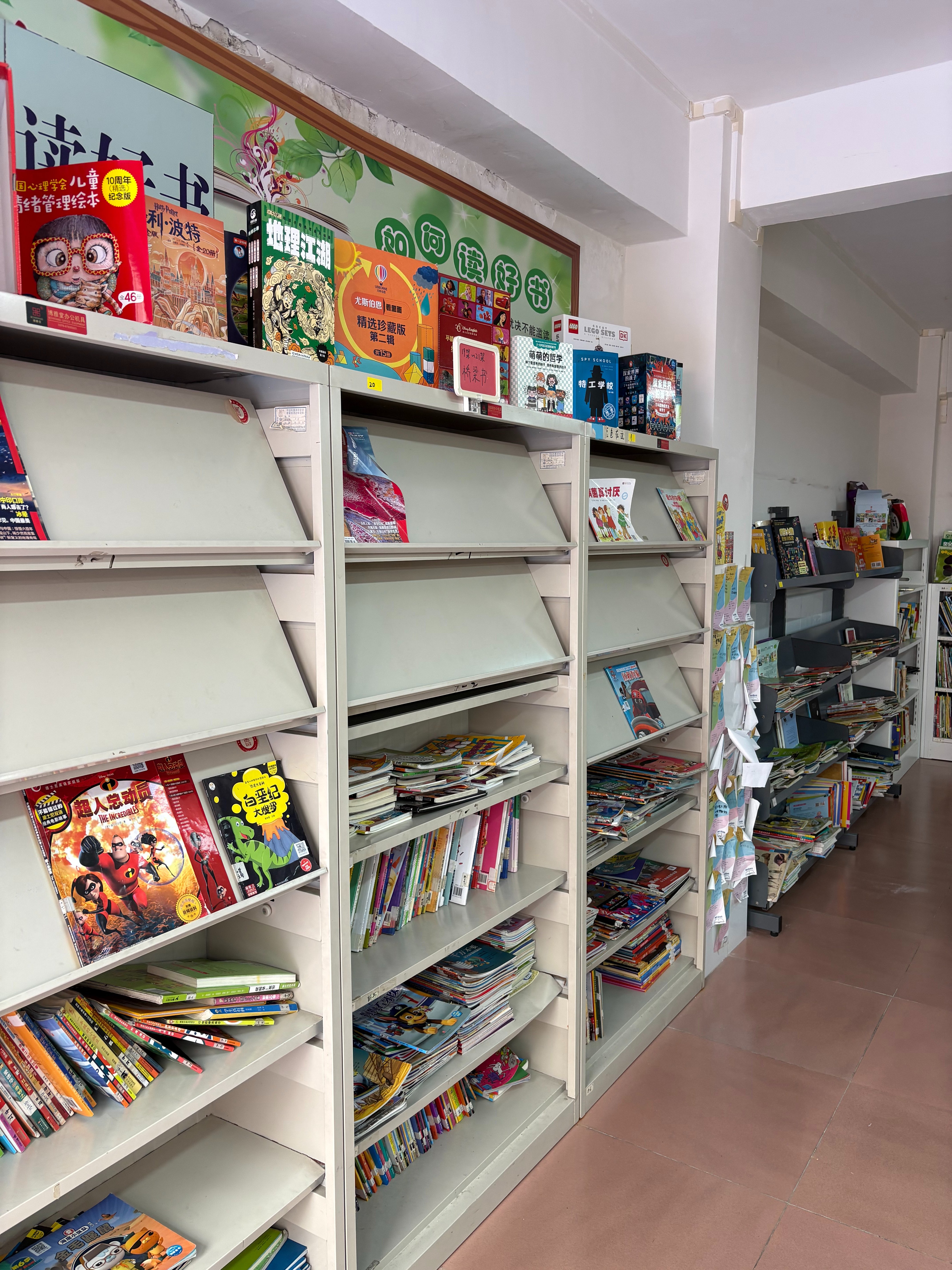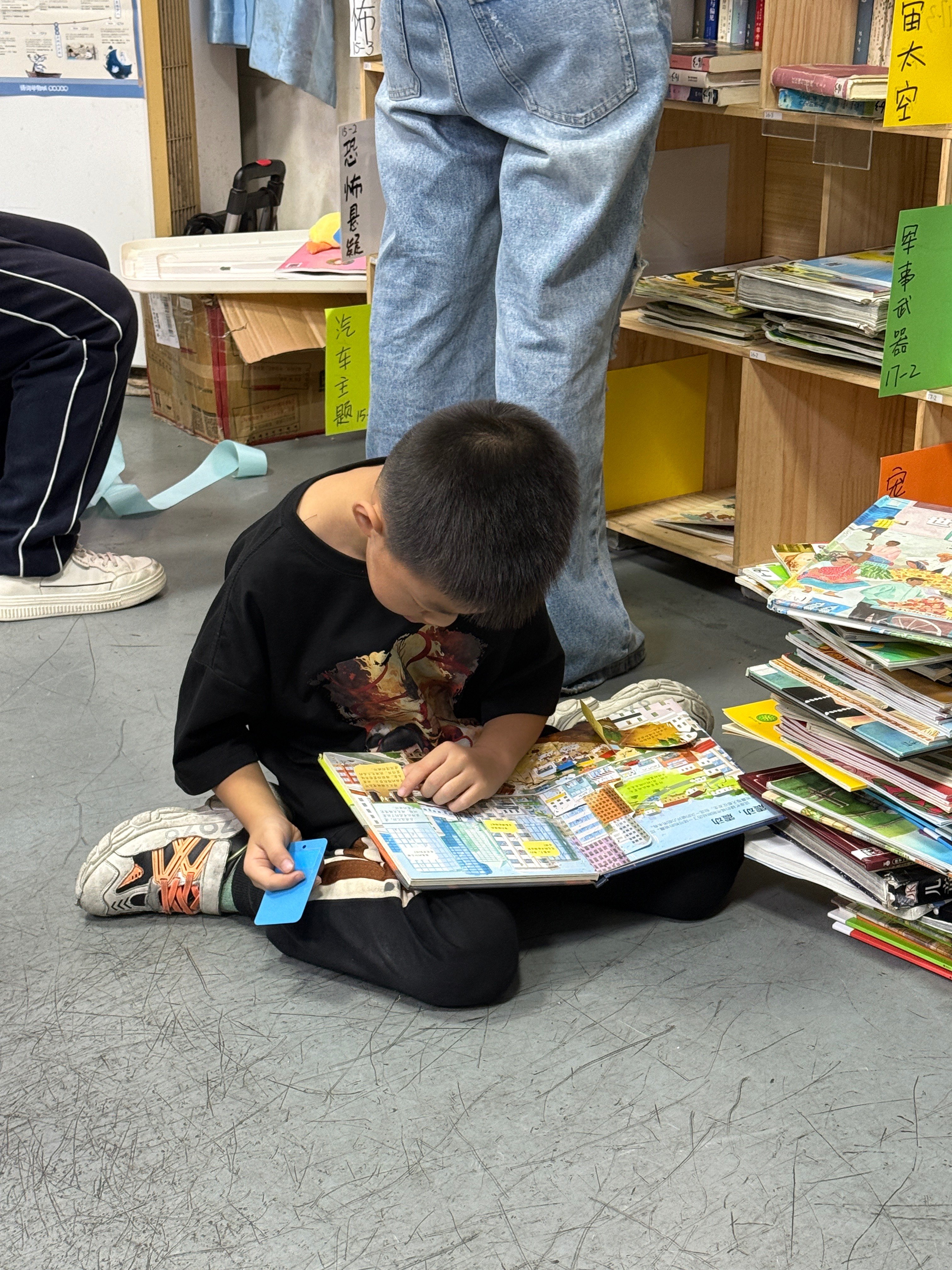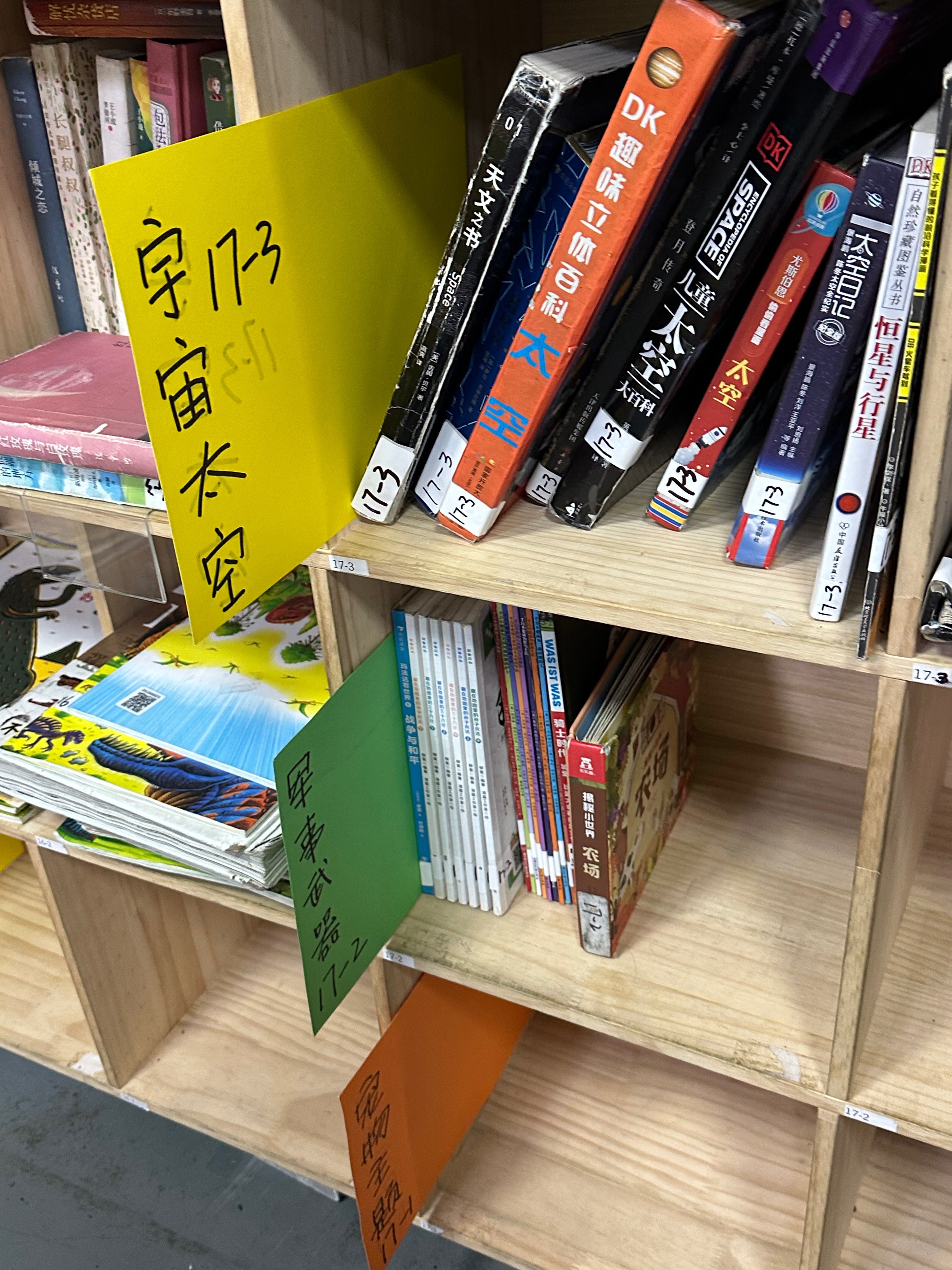 今天来了3位新朋友!新老朋友一起整理书架,林兰姐又专门开拓了一个区域做“主题书架”,经常问“有没有公主的书”“太空”“恐怖”等等的小朋友们能更快找到想看的书啦!天空和老菜整理了很多适合高年级同学看的书放在最上层,分类比较花时间,仿佛体验到了在书店工作上架的日子哈哈。