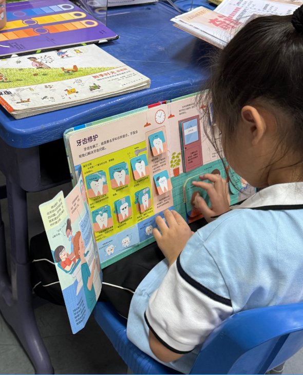 (2)今天仍然去给一年级讲绘本,时间选的不好上午最后一节课,每班讲了一个故事就吃饭了