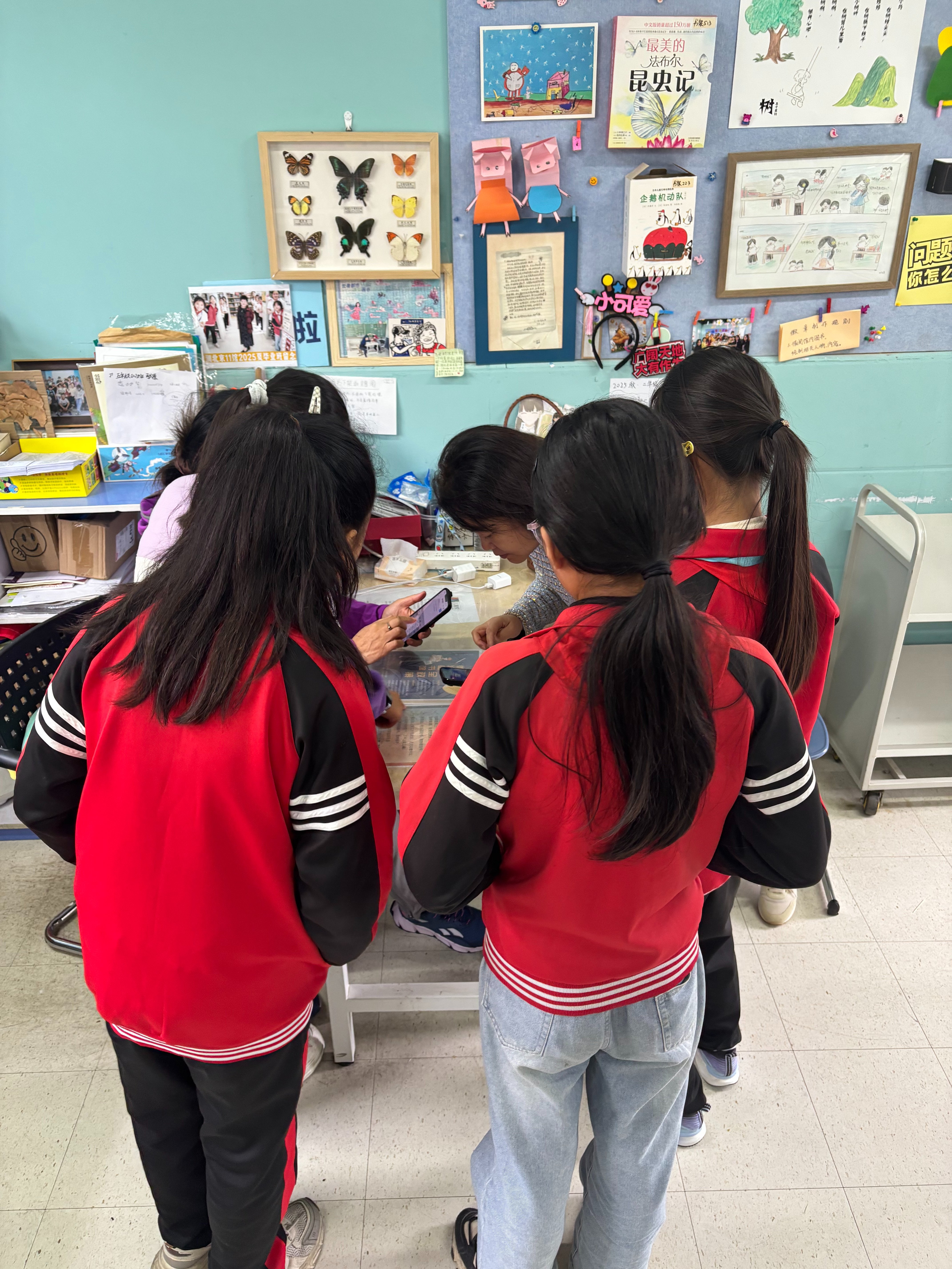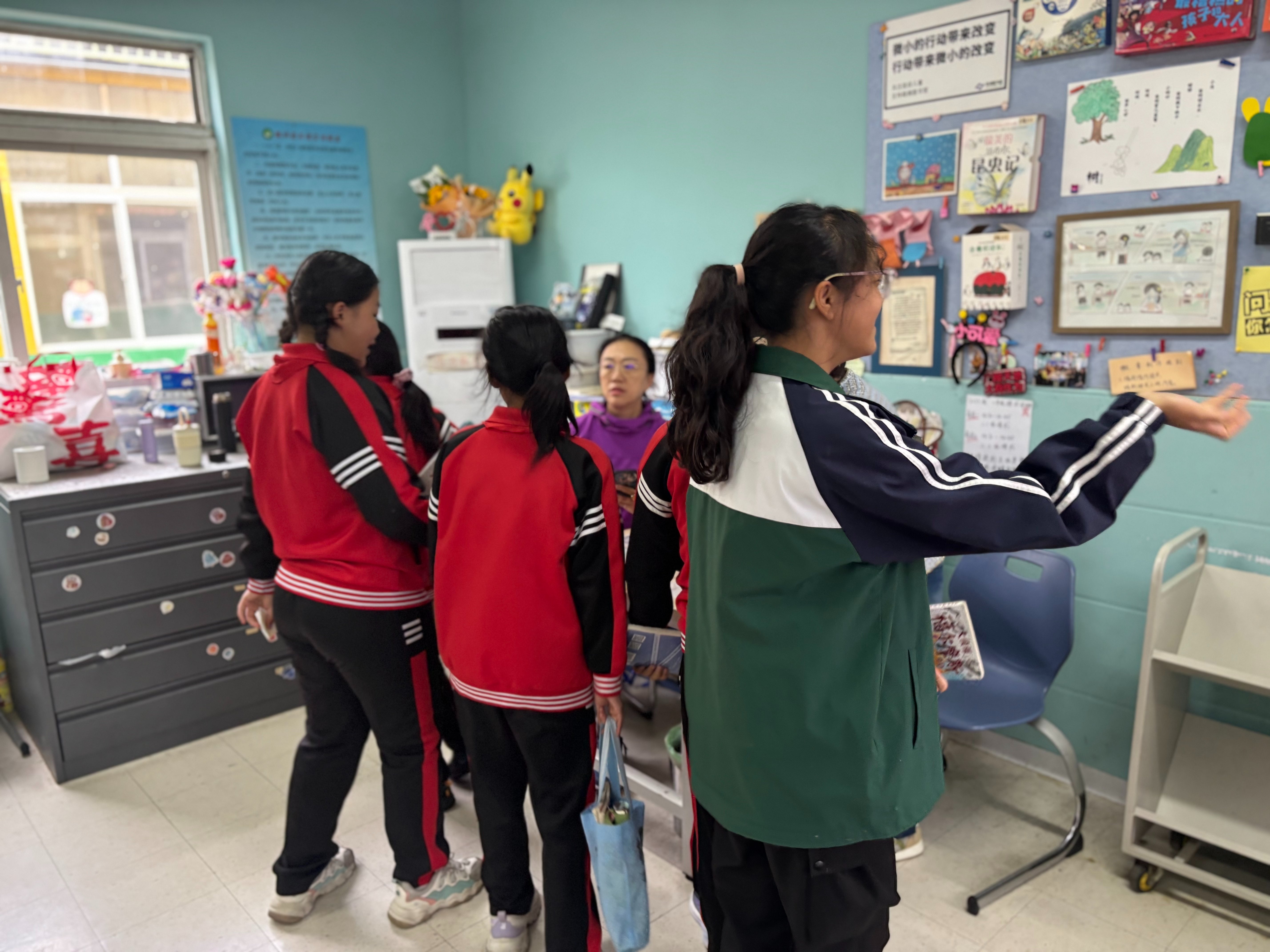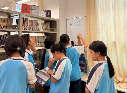 四年级一班有一位新转来的同学,给她做了借书卡,并介绍了图书馆的借阅规则。孩子似乎对学校有图书馆、能借书回家阅读很开心。