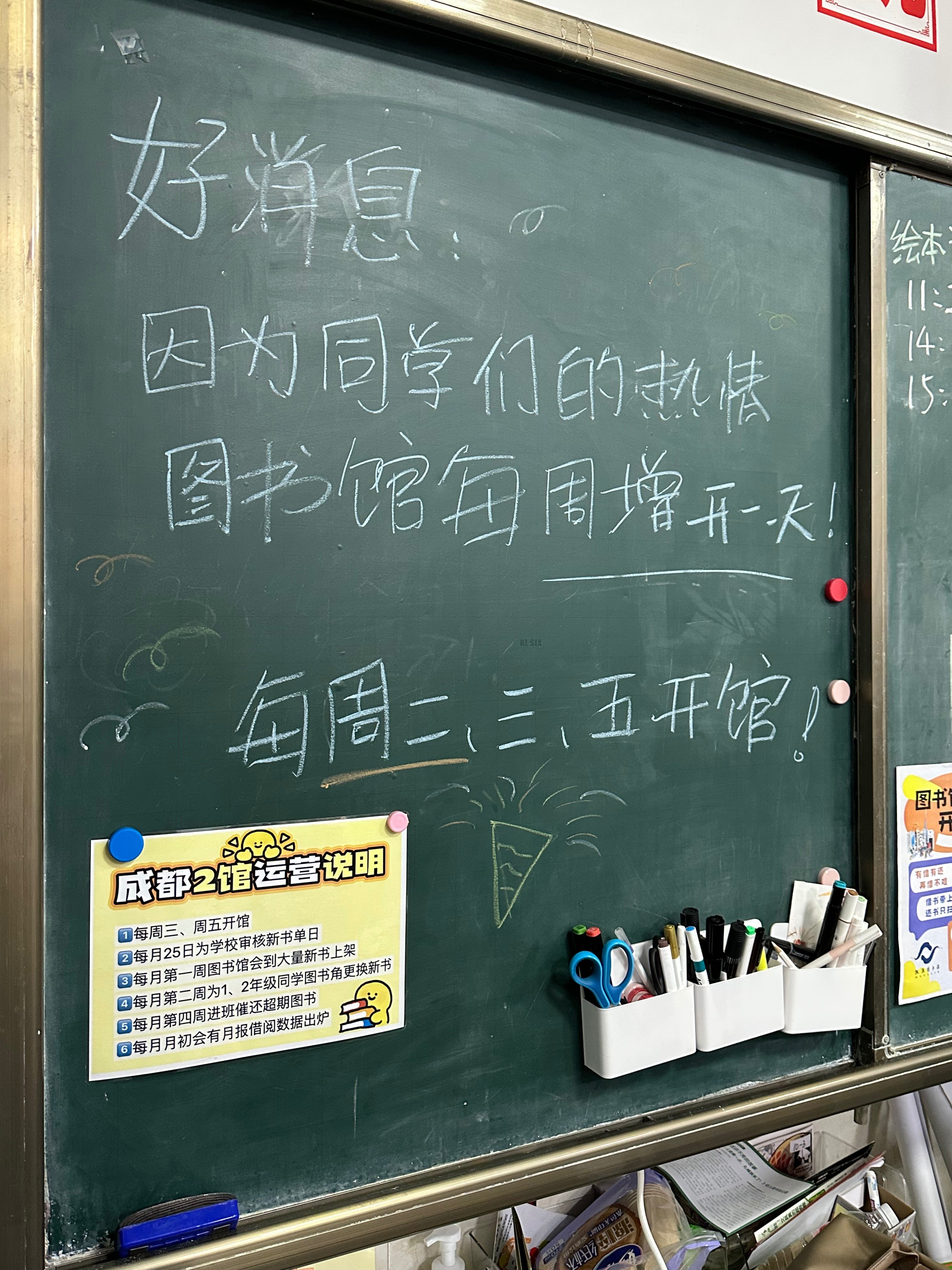 好些孩子来问如何升级图书卡可以多借书,告诉孩子们等馆长来了申请就行啦!