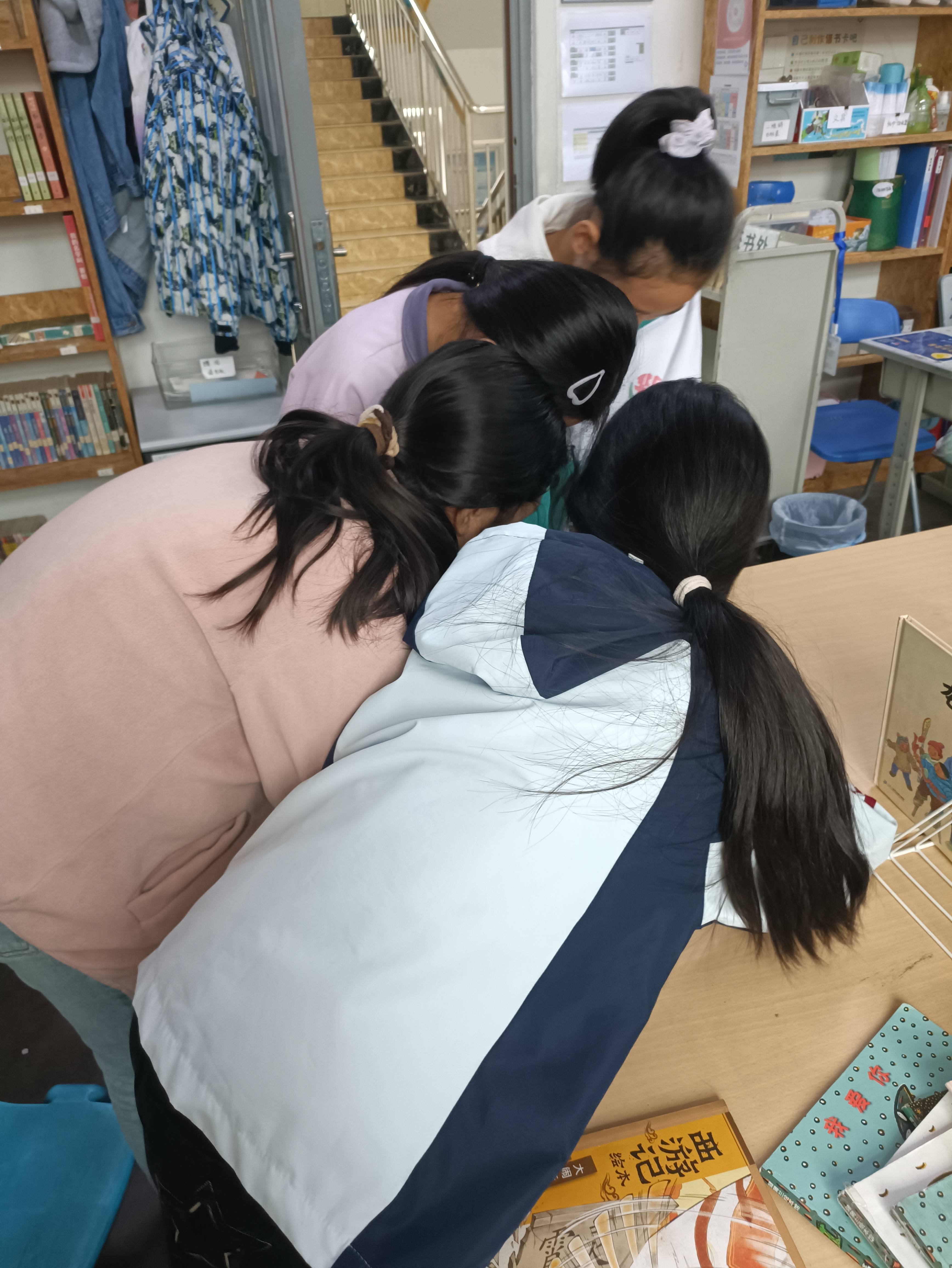 「如果书抢烂了的话,大家都没得看咯」我淡淡的说完后~走开了又转了一圈,欣喜发现他们正围在心愿书单那儿的桌子上一起看刚刚争抢的那本书耶,我会心一笑~